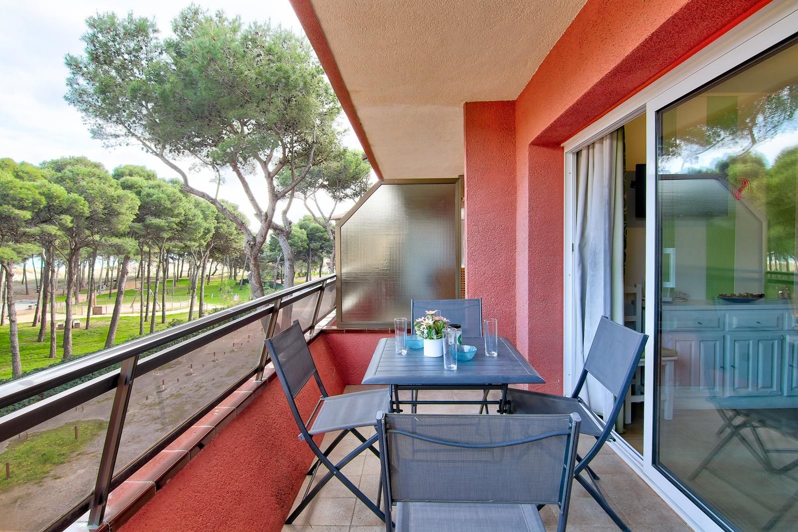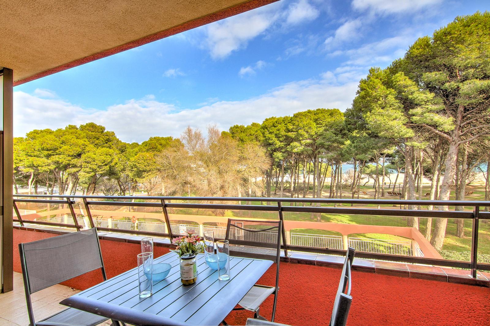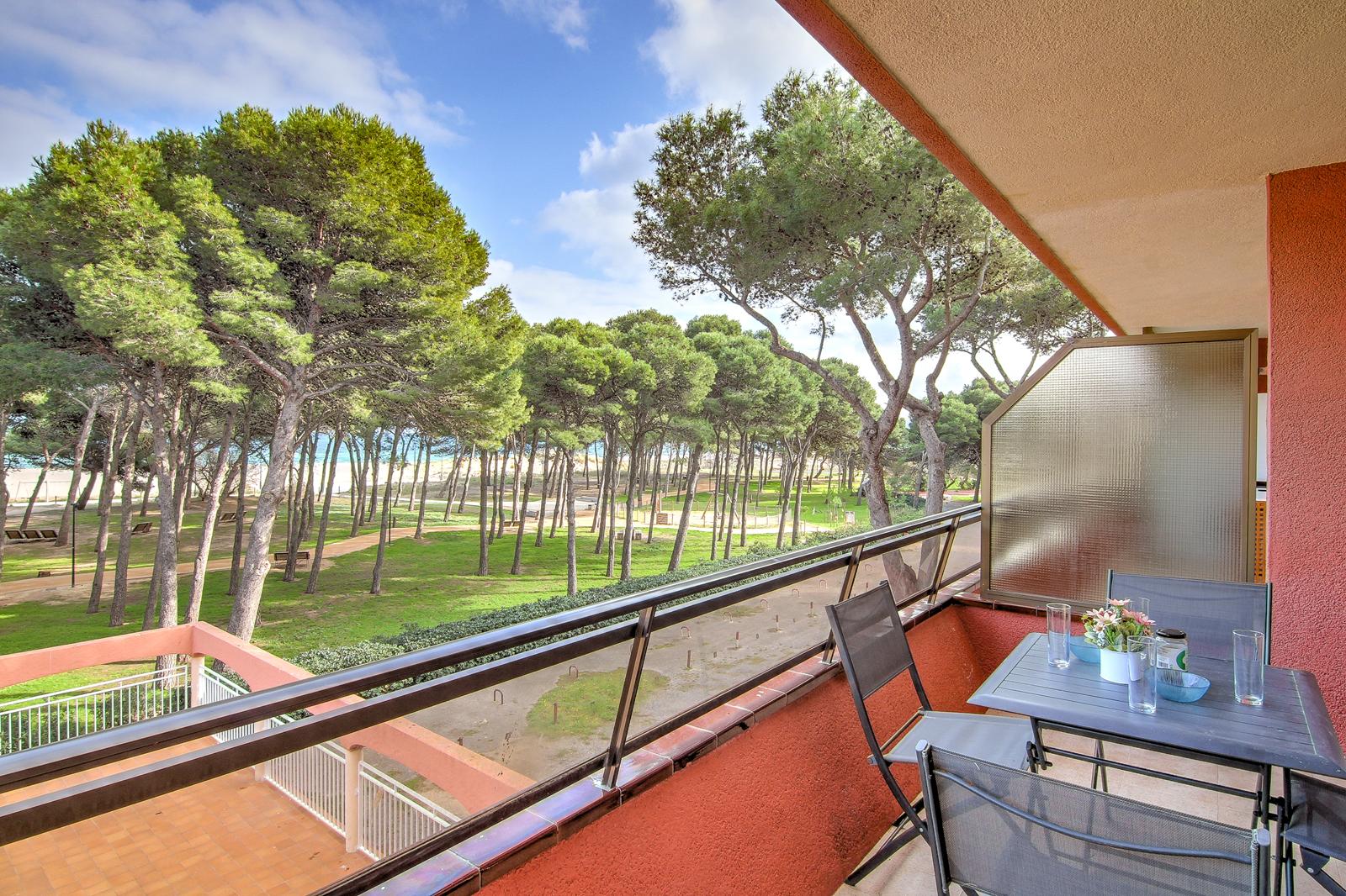 Recently refurbished apartment with sea views, terrace, communal pool, and well-equipped for up to 4 people. It consists of a double bedroom (one double bed) and a double sofa bed in the dining room. The apartment features a TV, washing machine, microwave, oven, hob, coffee maker, crockery, and kitchen utensils. The beach is just a few meters from the apartment, less than a minute's walk away. An ideal holiday apartment for families with children