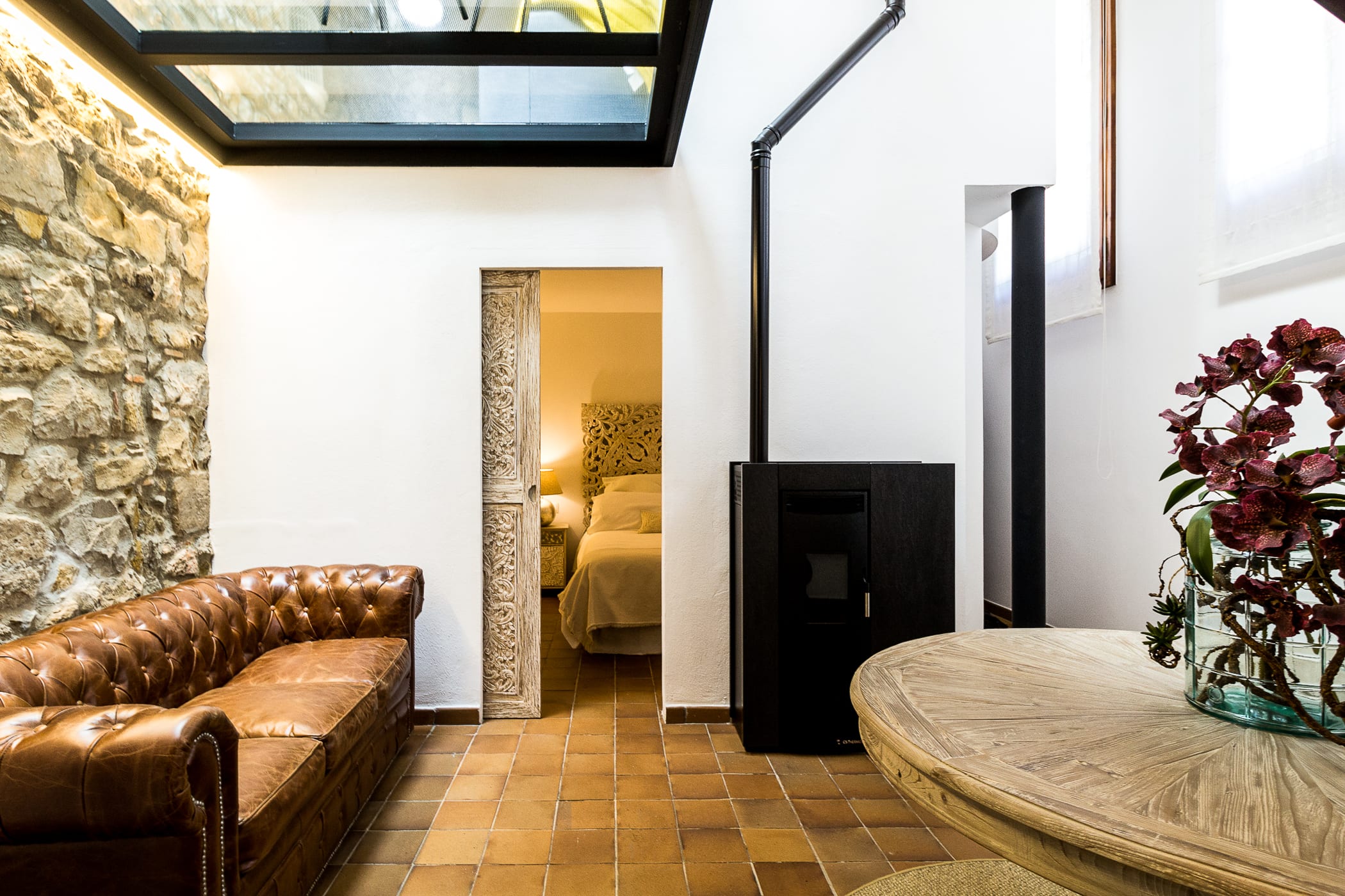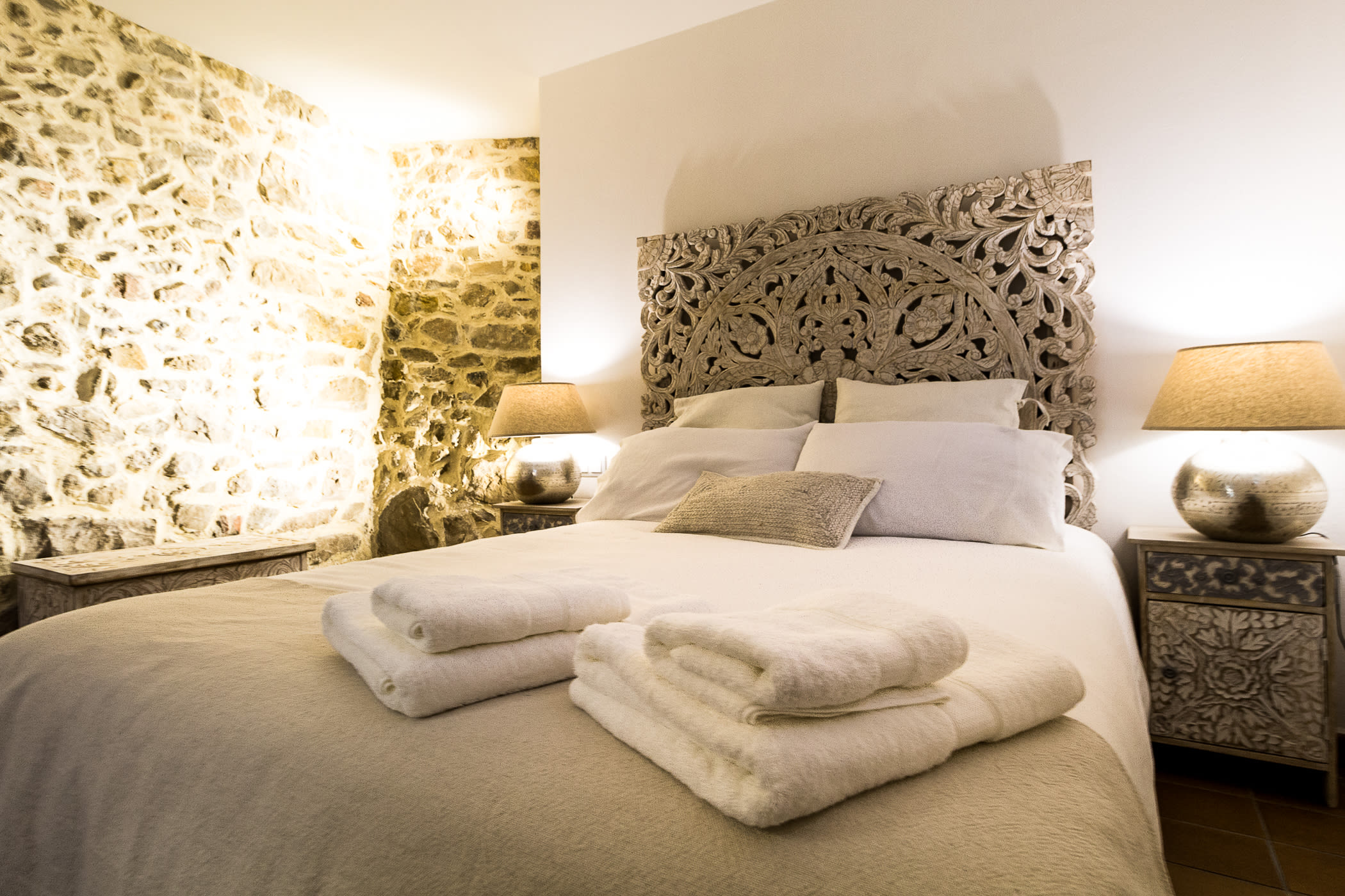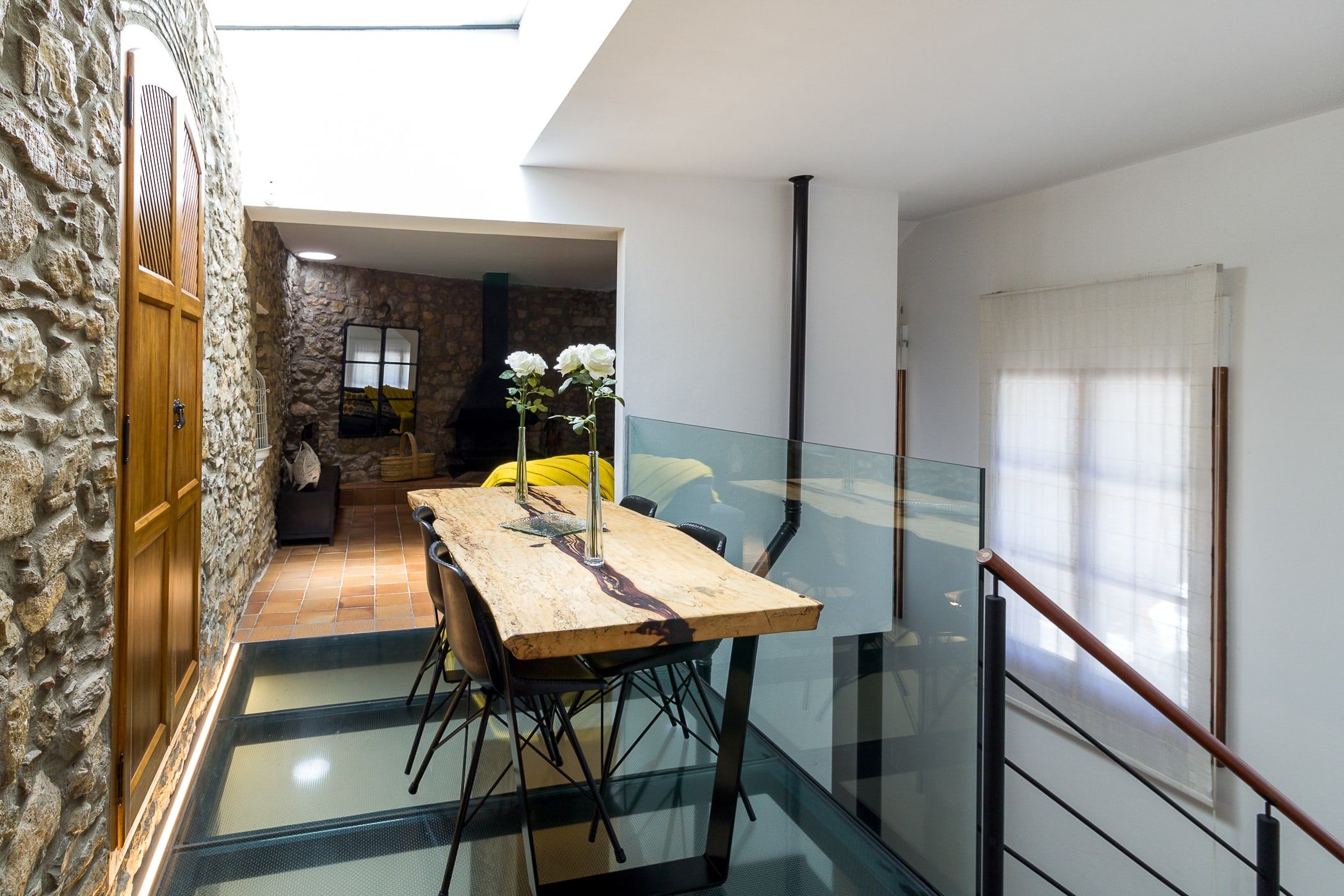 The house is distributed over 3 floors: on the ground floor there is a hall, a toilet and a separate spacious shower room, a sitting room and a charming double bedroom with a stone wall. On the first floor there is a spacious, fully equipped kitchen, as well as a dining area situated on a spectacular glass platform and a large living room with fireplace and television. On the second floor we find 2 bedrooms, one double ensuite with a bathtub, and a triple room with TV, a toilet with a washer and dryer. The spiral staircase leads to the chillout area on the top floor terrace, floored with artificial lawn and offering a picnic area, sun loungers and a shower to cool off. It is equipped with a simple kitchen space with household linen, coffee maker and microwave with grill. It is ideal for summer vacations, cultural and gastronomic tourism, as it has all the comforts.