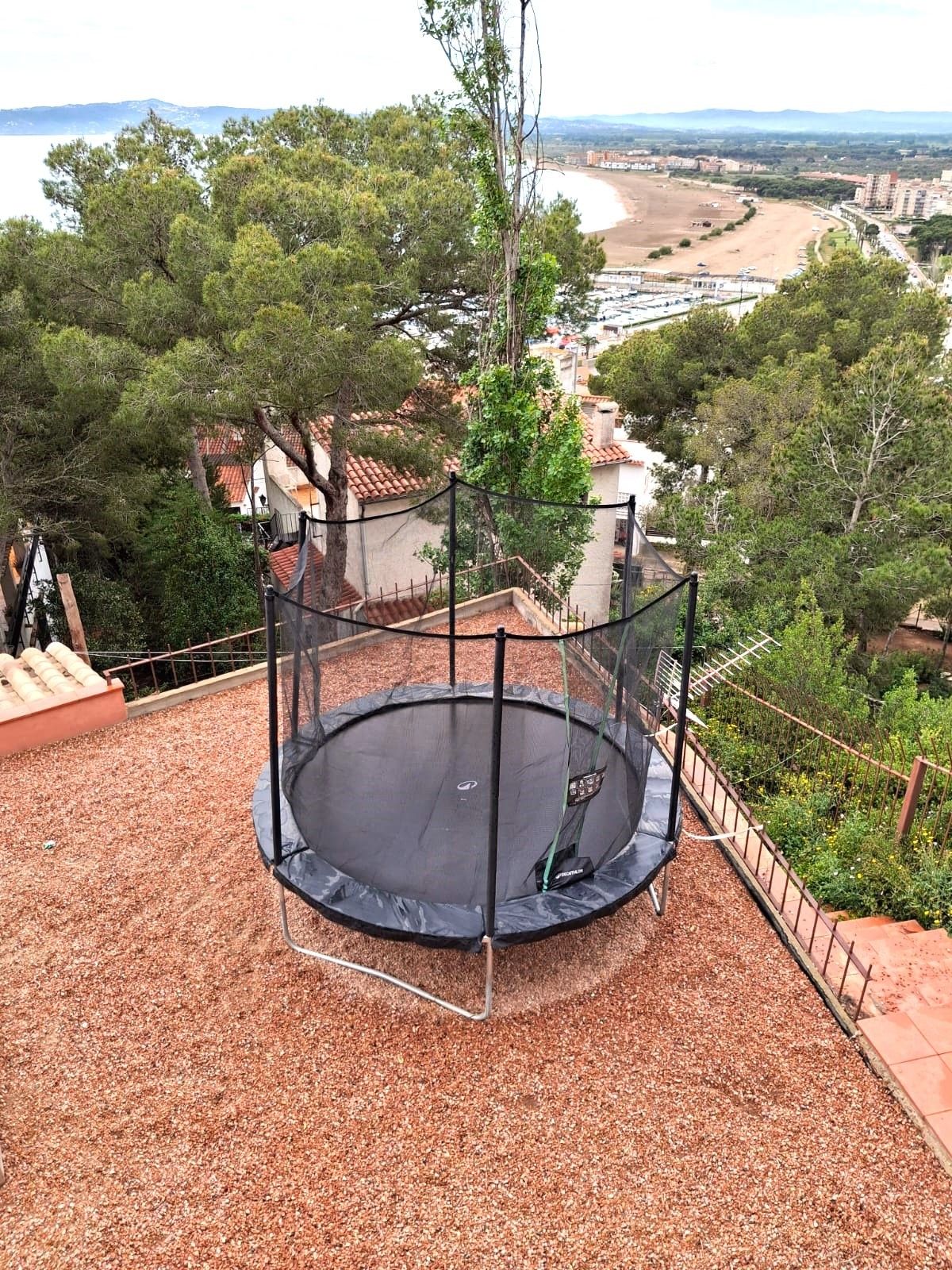 There is also a winter dining room of approximately 50 m², with fireplace and piano, where a double bed could be added if needed. A guest toilet is also located on this floor. On the roof level, there is a private swimming pool area, featuring a terrace with spectacular sea views, a sunbathing area and a leisure space. On a higher level, there is a gas barbecue area and an outdoor summer dining area. The house also includes an independent studio apartment, equipped with a double bed and a bathroom with shower. The total capacity of the house is 8 guests. Outside, there is a children’s play area with a trampoline, sandpit and table tennis. Several access points allow for hiking in the Montgrí Natural Park. Possibility of coastal navigation.