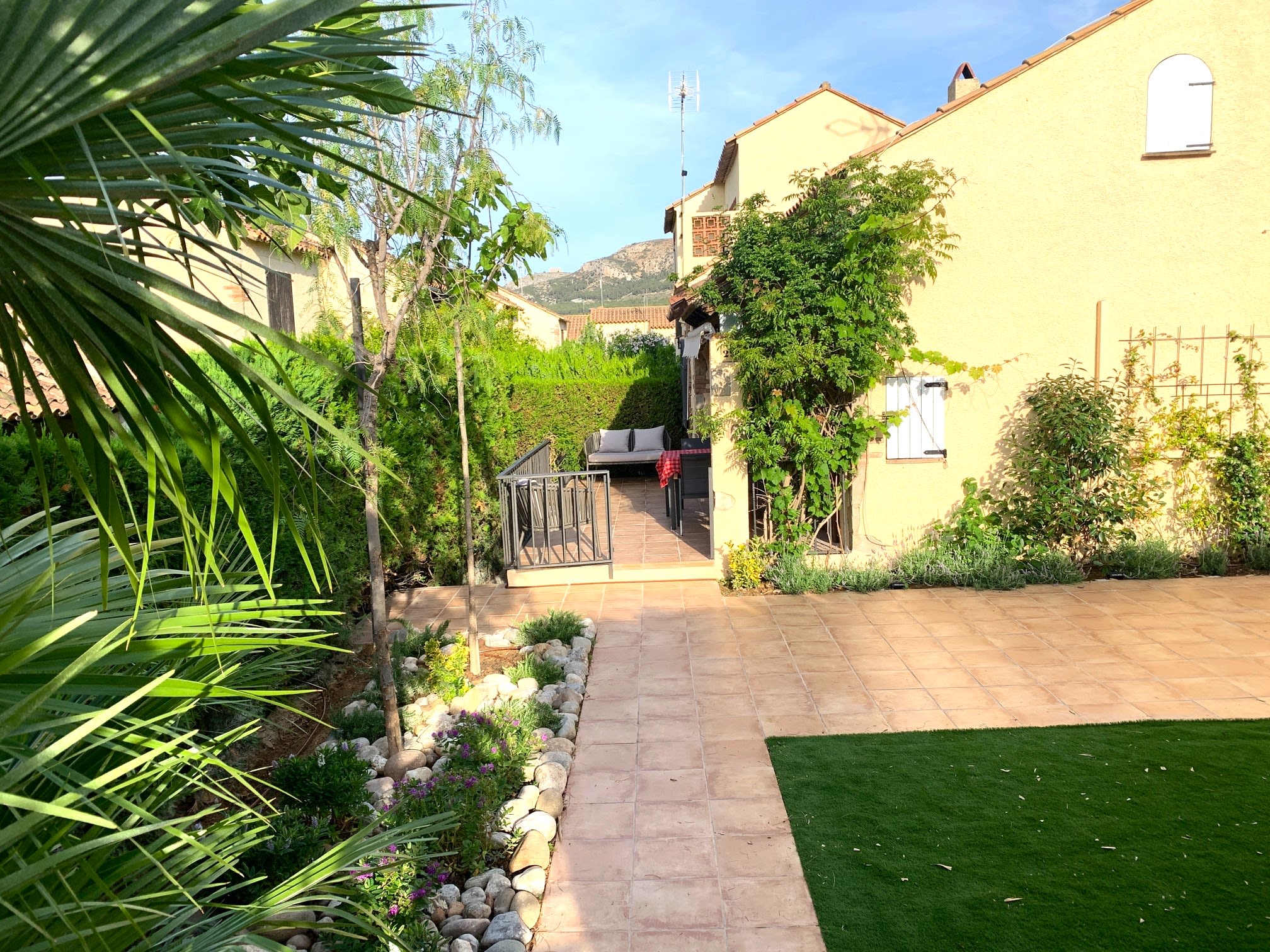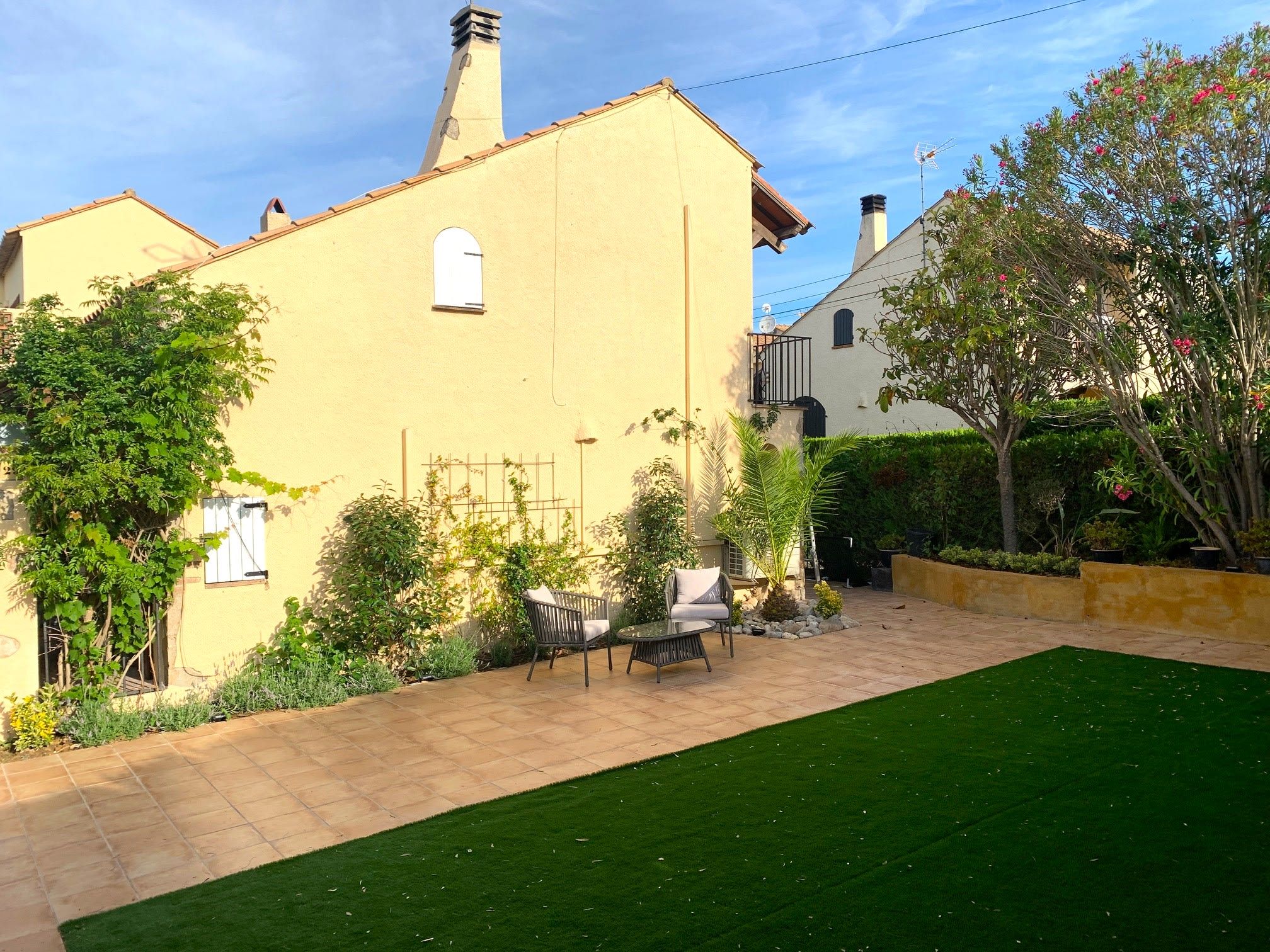 House for 5 guests with air-conditioning and Wifi, private garden and shared swimming pool. Located in a beautiful residential area, 5 minutes from the beach by car. All kinds of services available at short distance. The interior of the house is comfortable, well appointed and you will feel at home.