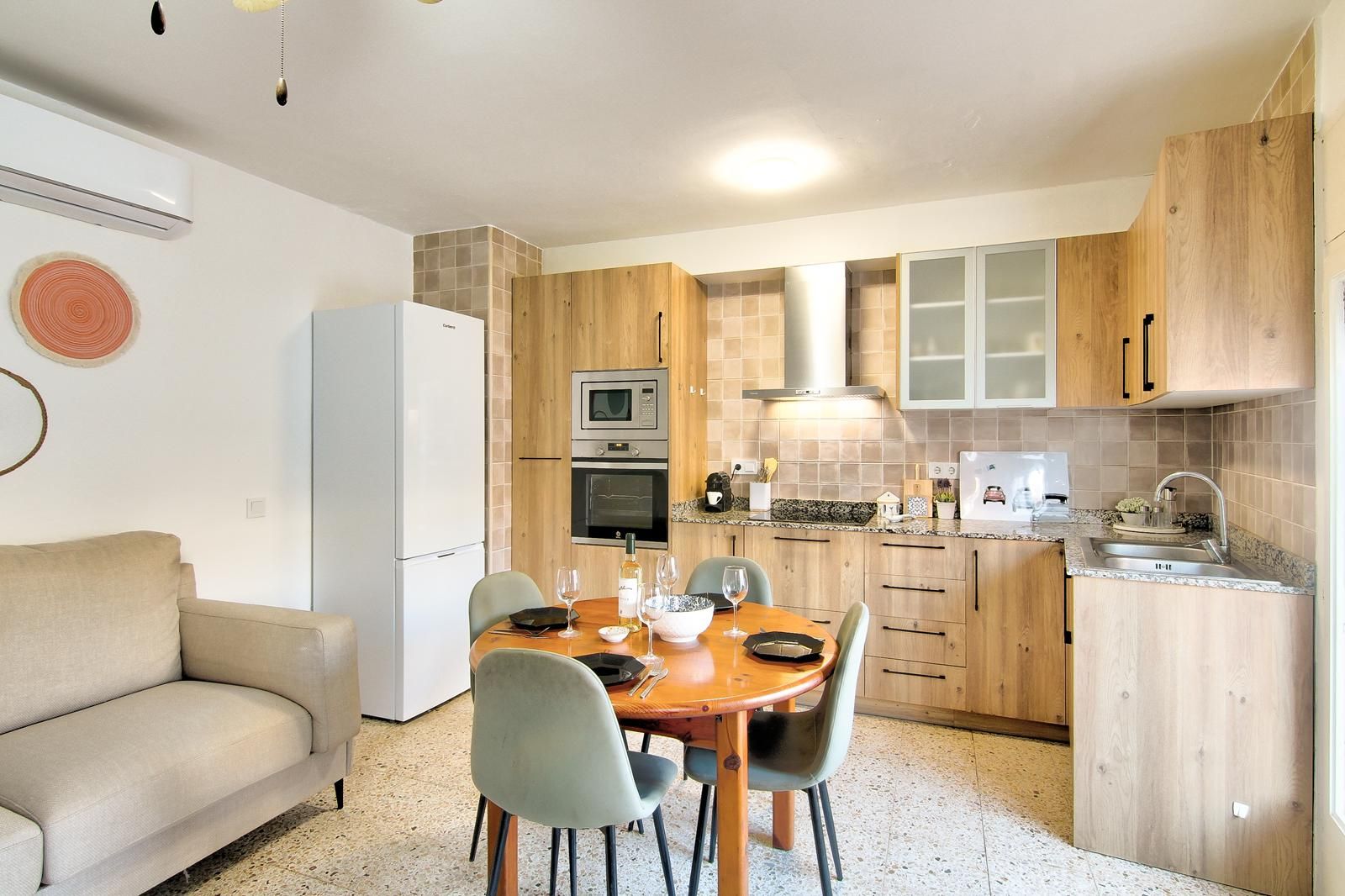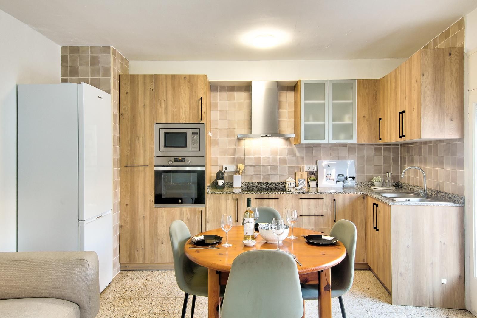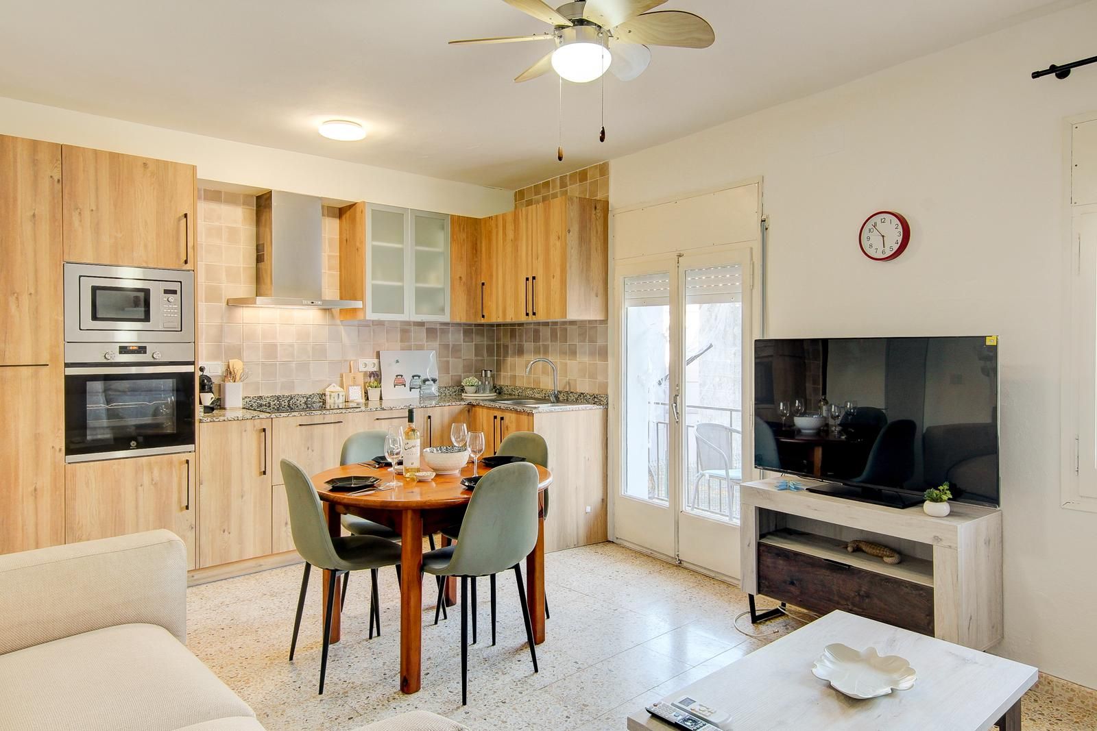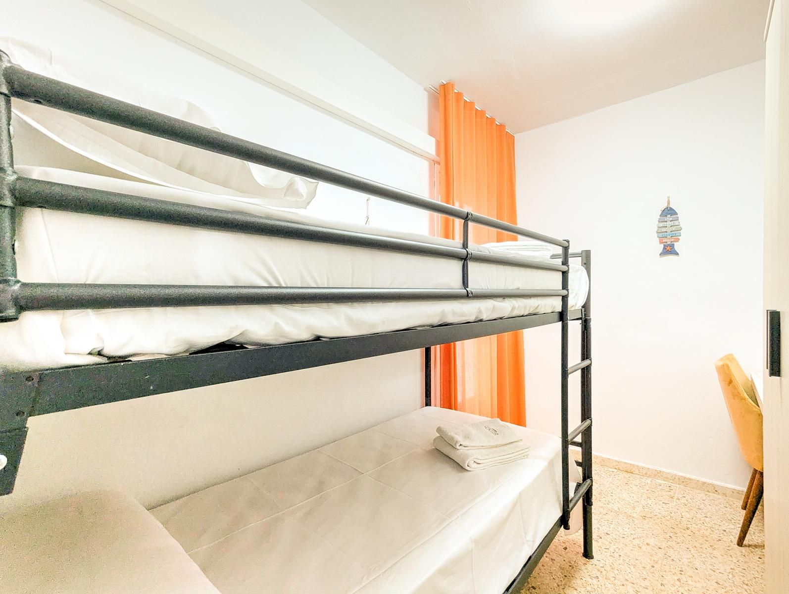 Central apartment and parking for 6 people, 300 m from the beach. Ideal for families with children. The apartment has 3 bedrooms (1 with a double bed and another with two single beds and the other with a bunk bed), 2 bathrooms, one with a bathtub and the other with a shower. The kitchen is equipped with a fridge, microwave, oven and washing machine. bright.Air conditioning in all rooms.Private parking on the property