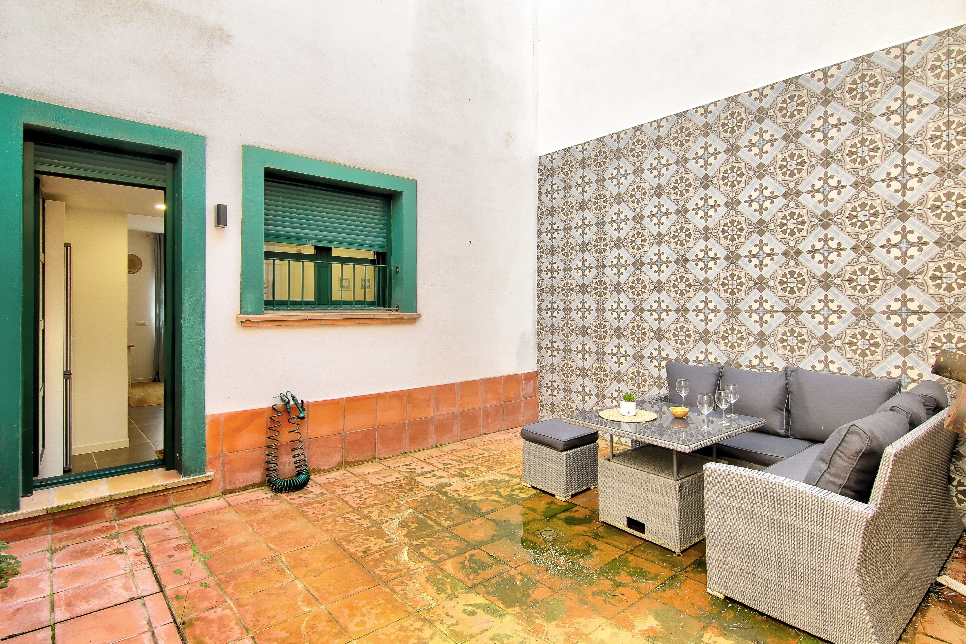 Apartment with a 30 m2 terrace in the center of L'Estartit. Ground floor, consisting of 2 bedrooms, one with a double bed and the other with two single beds (bunk type). Recently renovated, equipped, and furnished. It has a kitchen, dining room, and living room, and bathroom with bathtub. Air conditioning. Close to all services and very close to the sea.