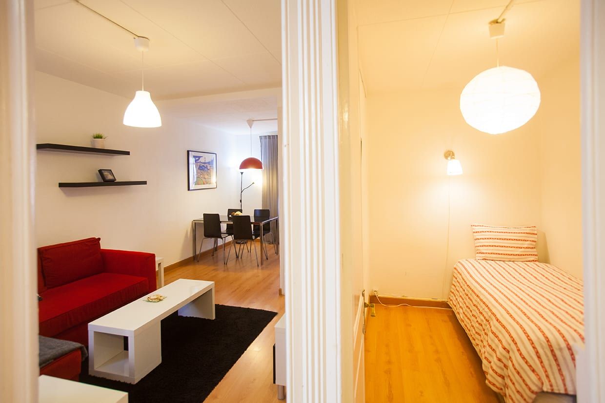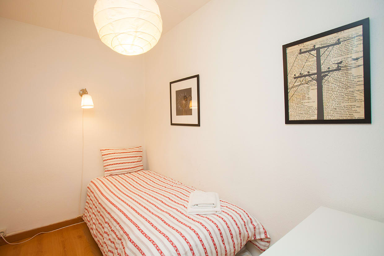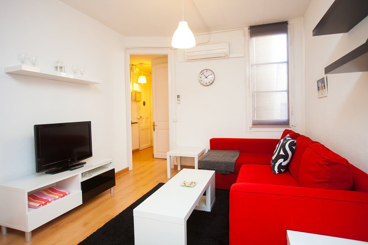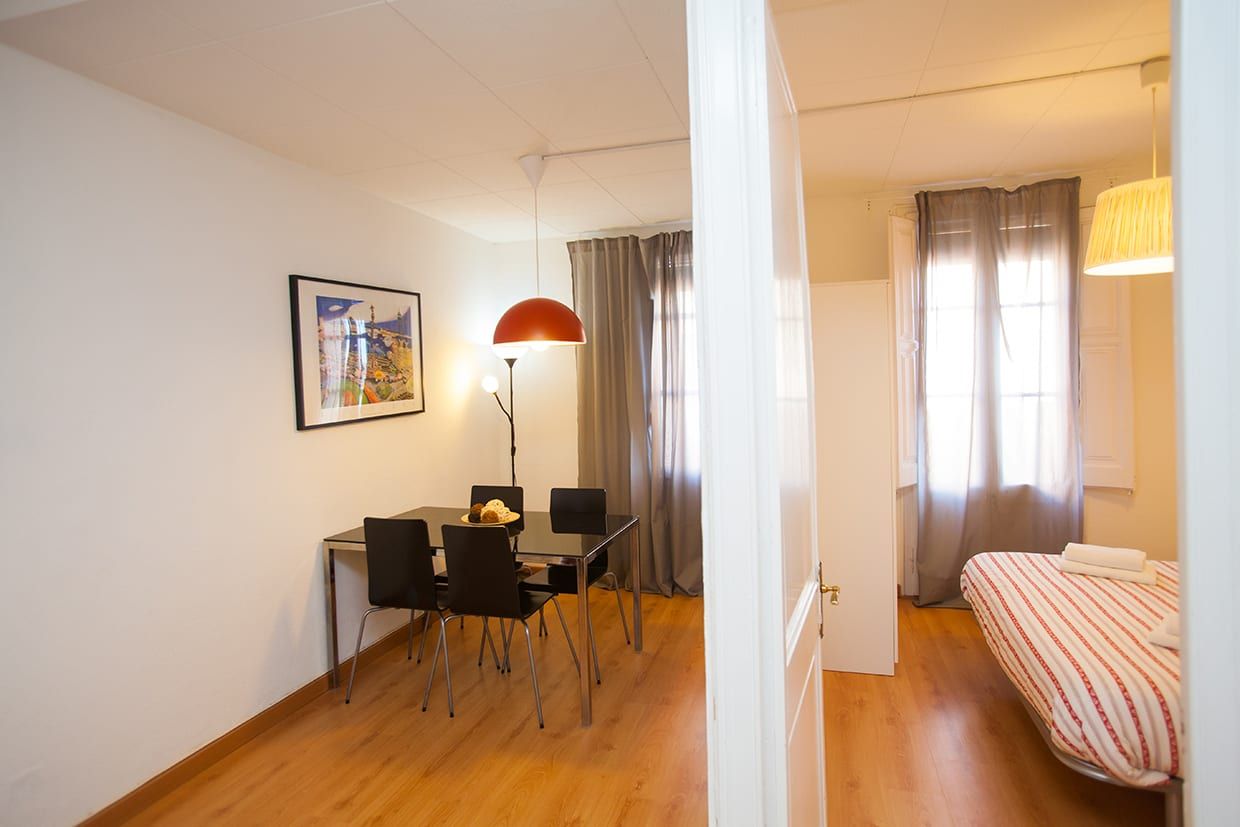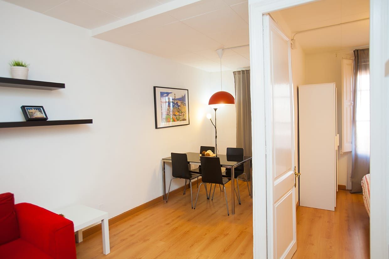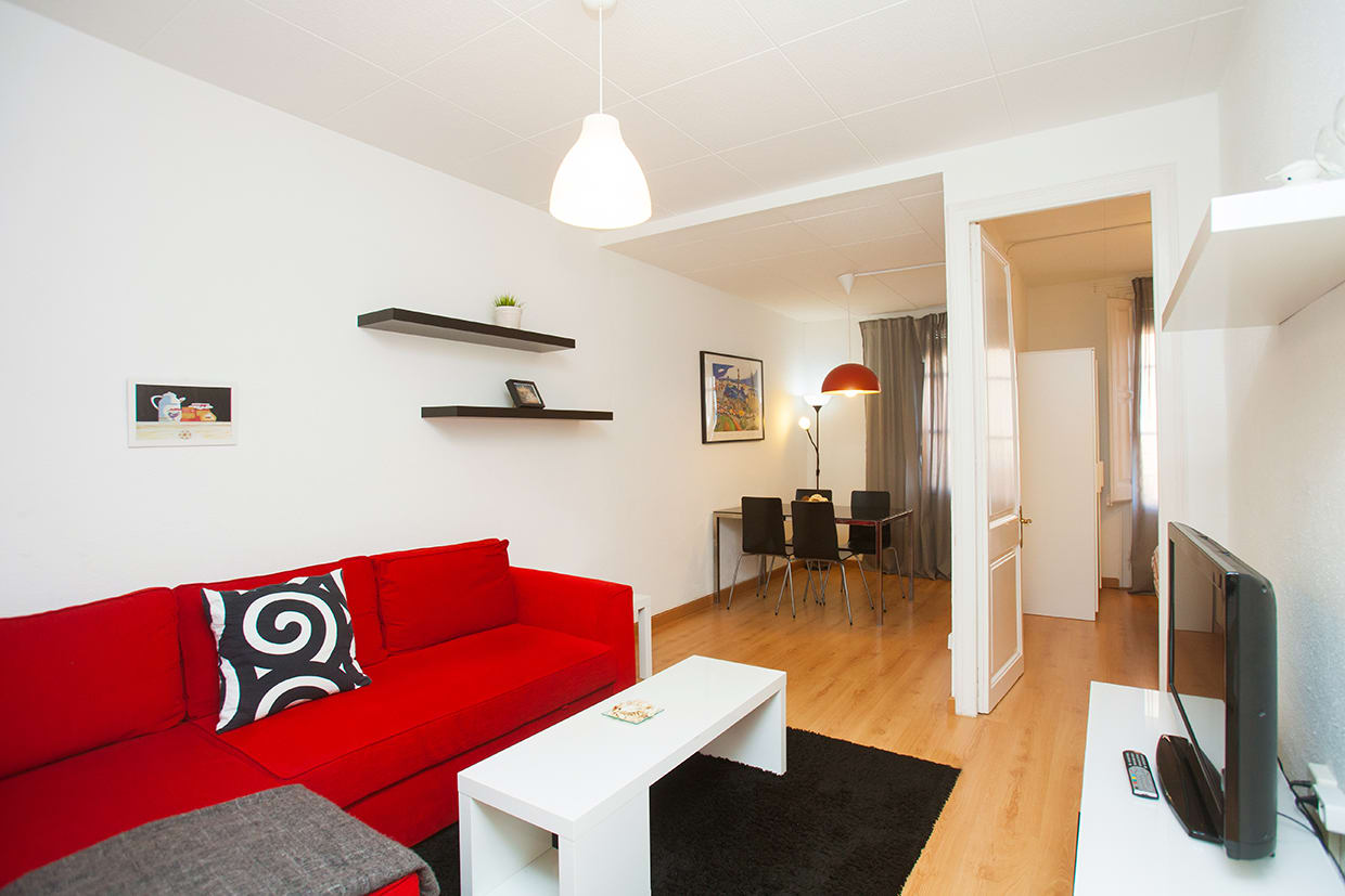 Perfectly located at a few steps from Sagrada Familia, this apartment can accommodate up to 4 people. One double bedroom (double bed) and one single bedroom (with 1 or 2 beds), small bathroom with shower, well equipped kitchen and a living room with sofa, dining table, TV and air-conditioning. It's equipped with fridge, microwave, oven, toaster, kettle, pots, pans, plates and cutlery.