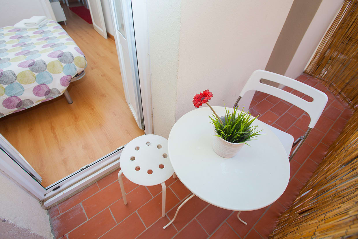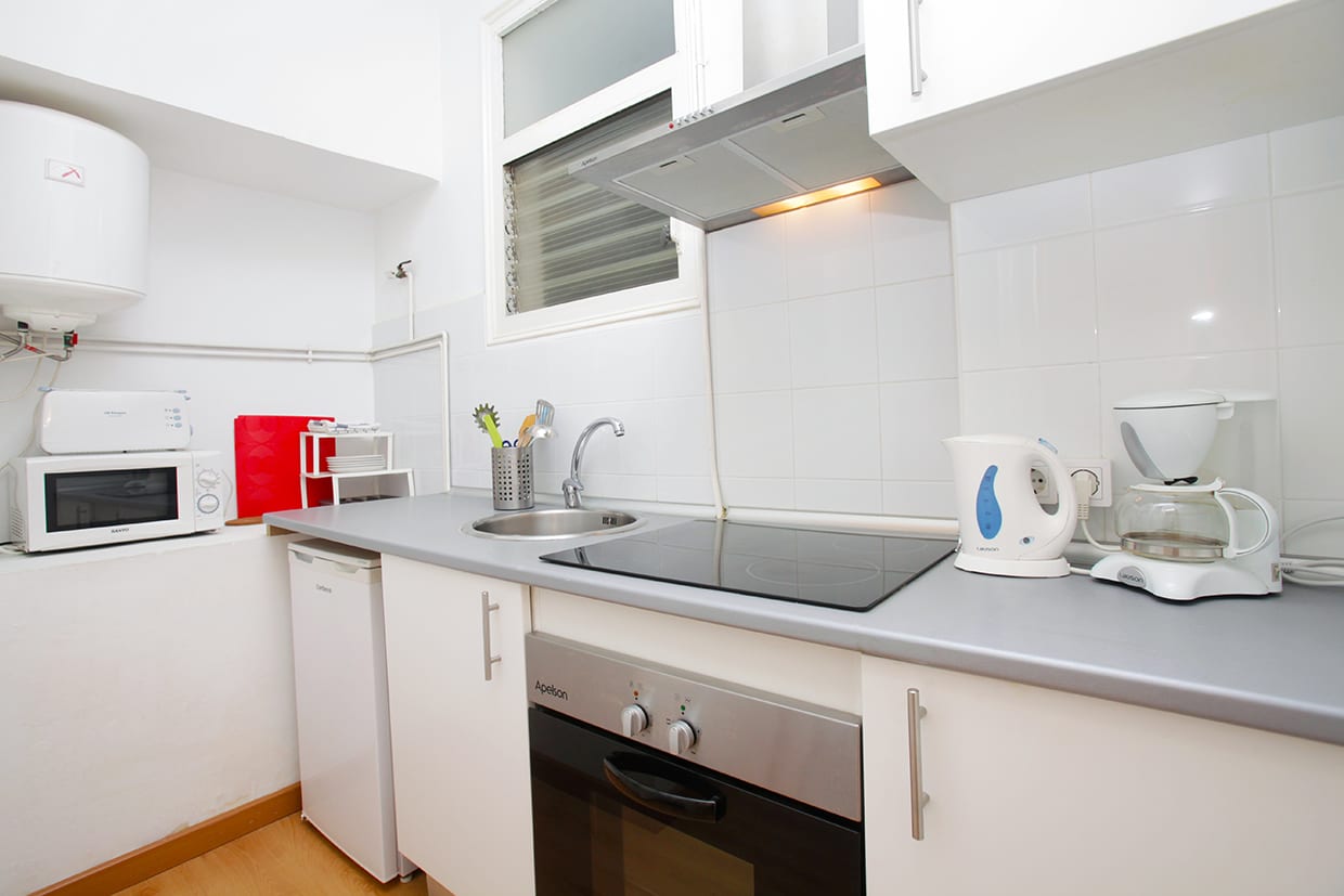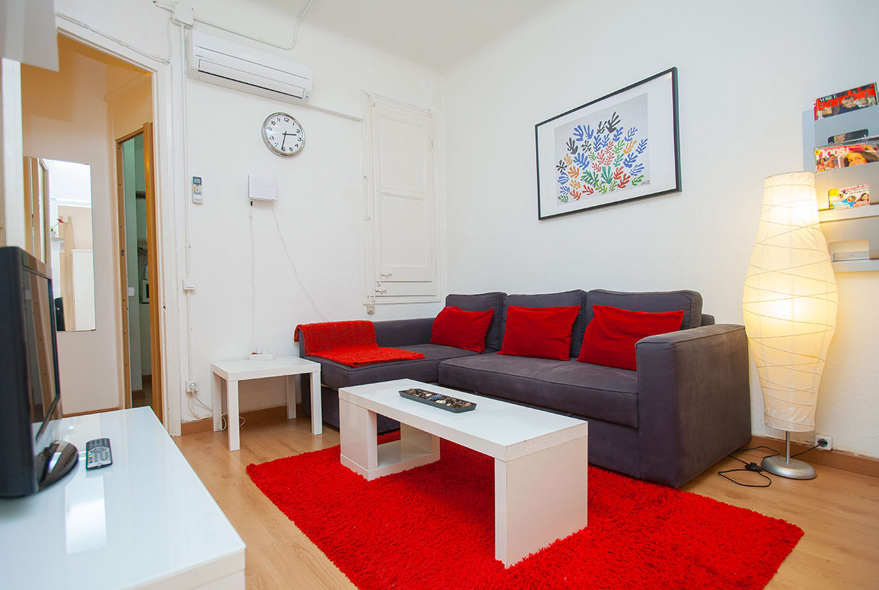 BarcelonaPerfectly located at a few steps from Sagrada Familia, this apartment is rented on monthly basis (minimum stay one month) and it can accommodate up to 3 people. One double and one single bedroom, small bathroom with shower, well equipped kitchen and a living room with sofa, dining table, TV and air-conditioning. It's equipped with washing-machine, fridge, microwave, oven, toaster, kettle, pots, pans, plates and cutlery.