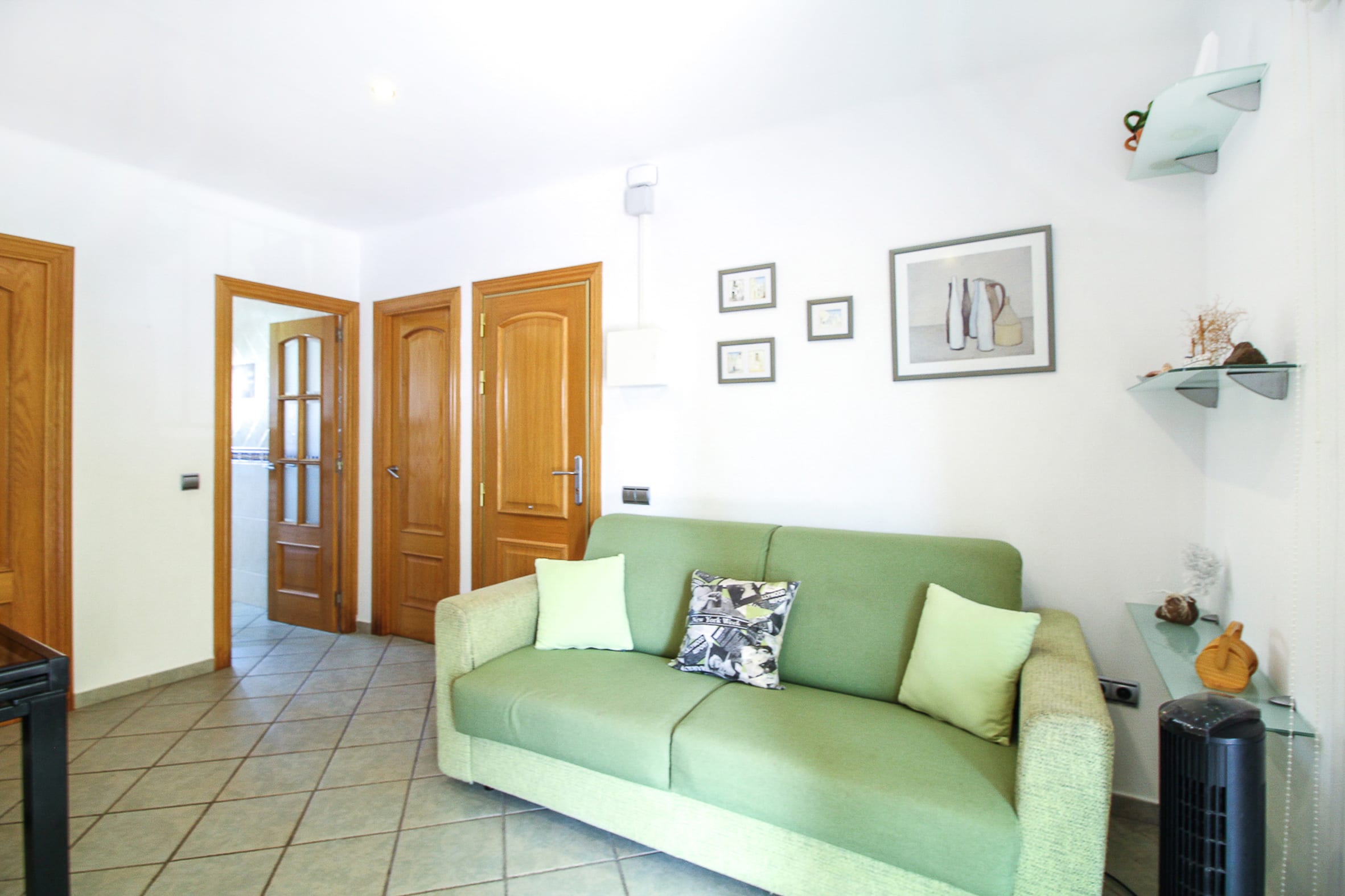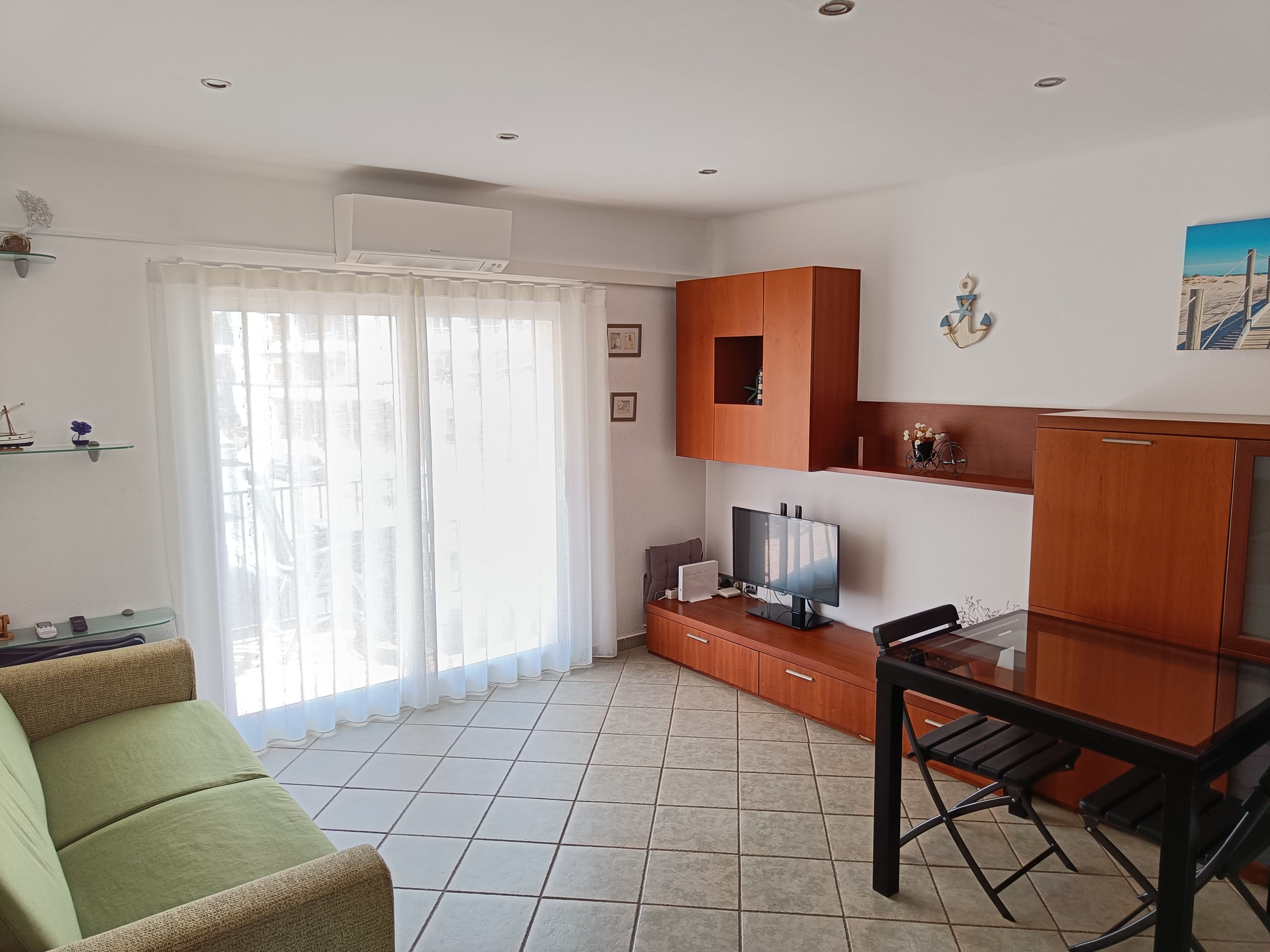 Nice apartment, 3 minutes walking distance from the beach, for 4 people. Terrace with table, chairs, and awning. Fully equipped kitchen (dishwasher, oven, microwave, fridge, coffee maker, hand blender, toaster, and kettle). Bathroom with shower. Double bedroom with wardrobe and double bed. Dining room with sofa bed, air conditioning, full HD TV, fiber internet, and Wi-Fi. Beach loungers. Washing machine, iron, and TV. Parking depending on the neighbors' occupancy, no pets allowed.