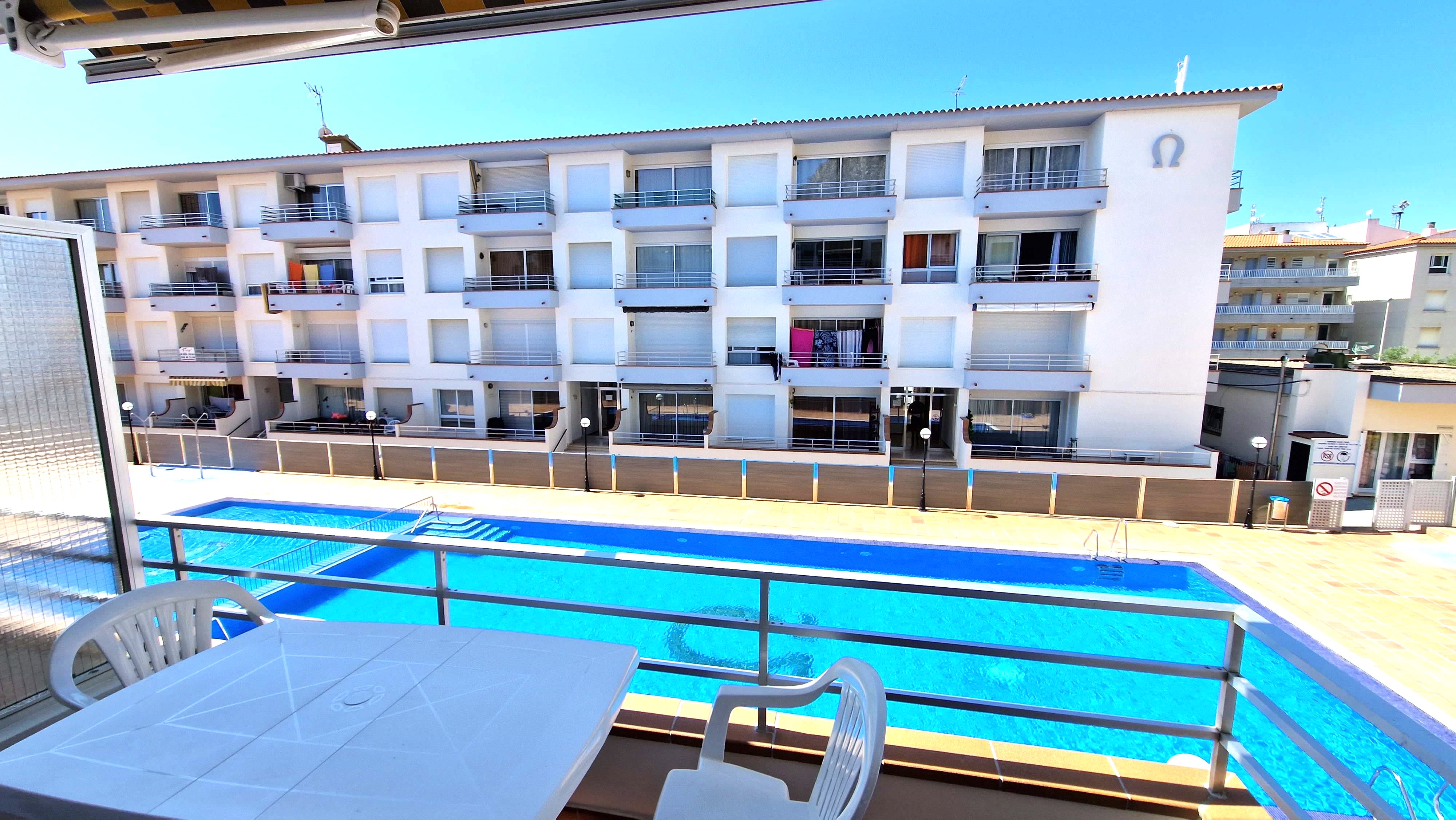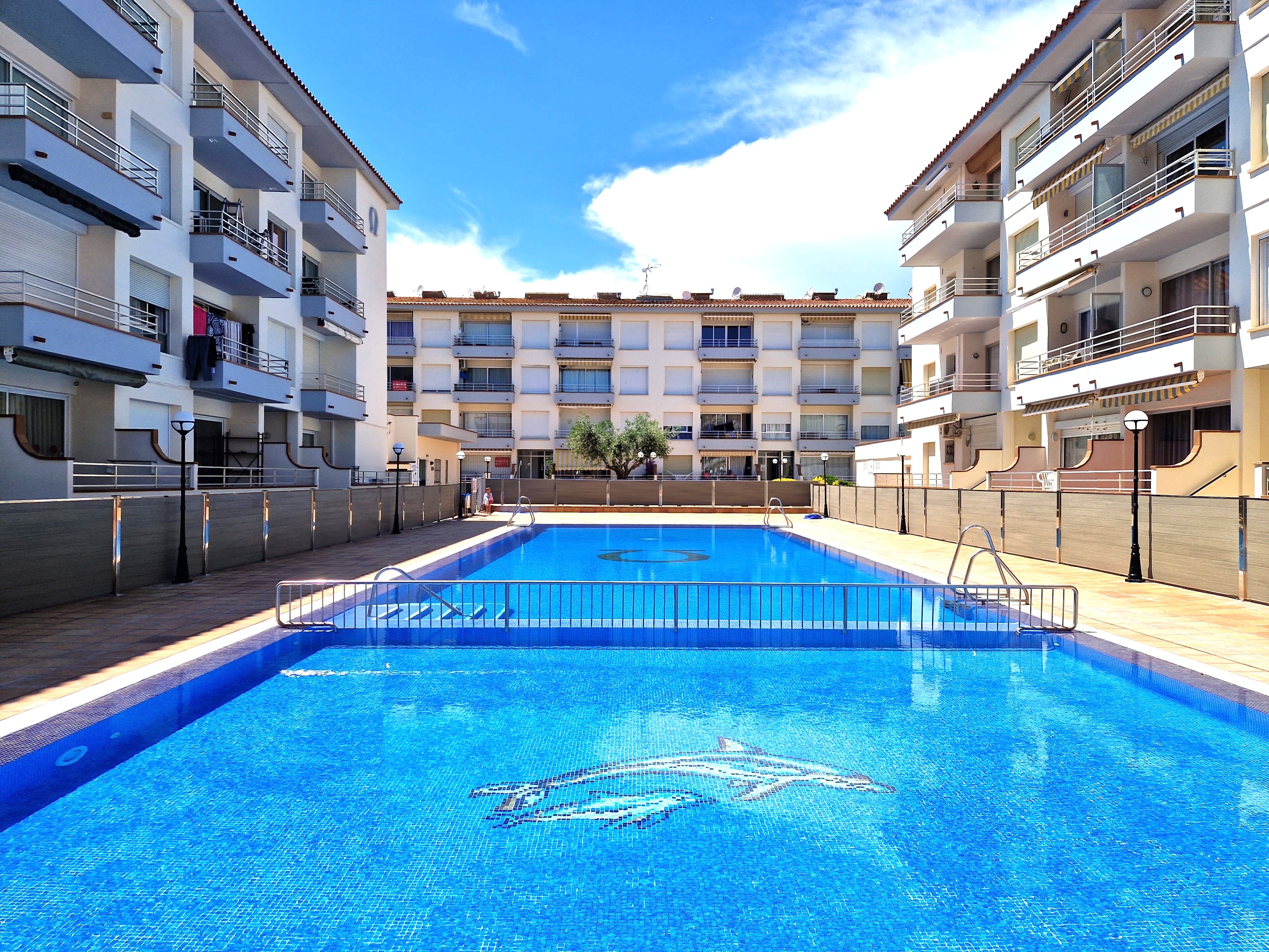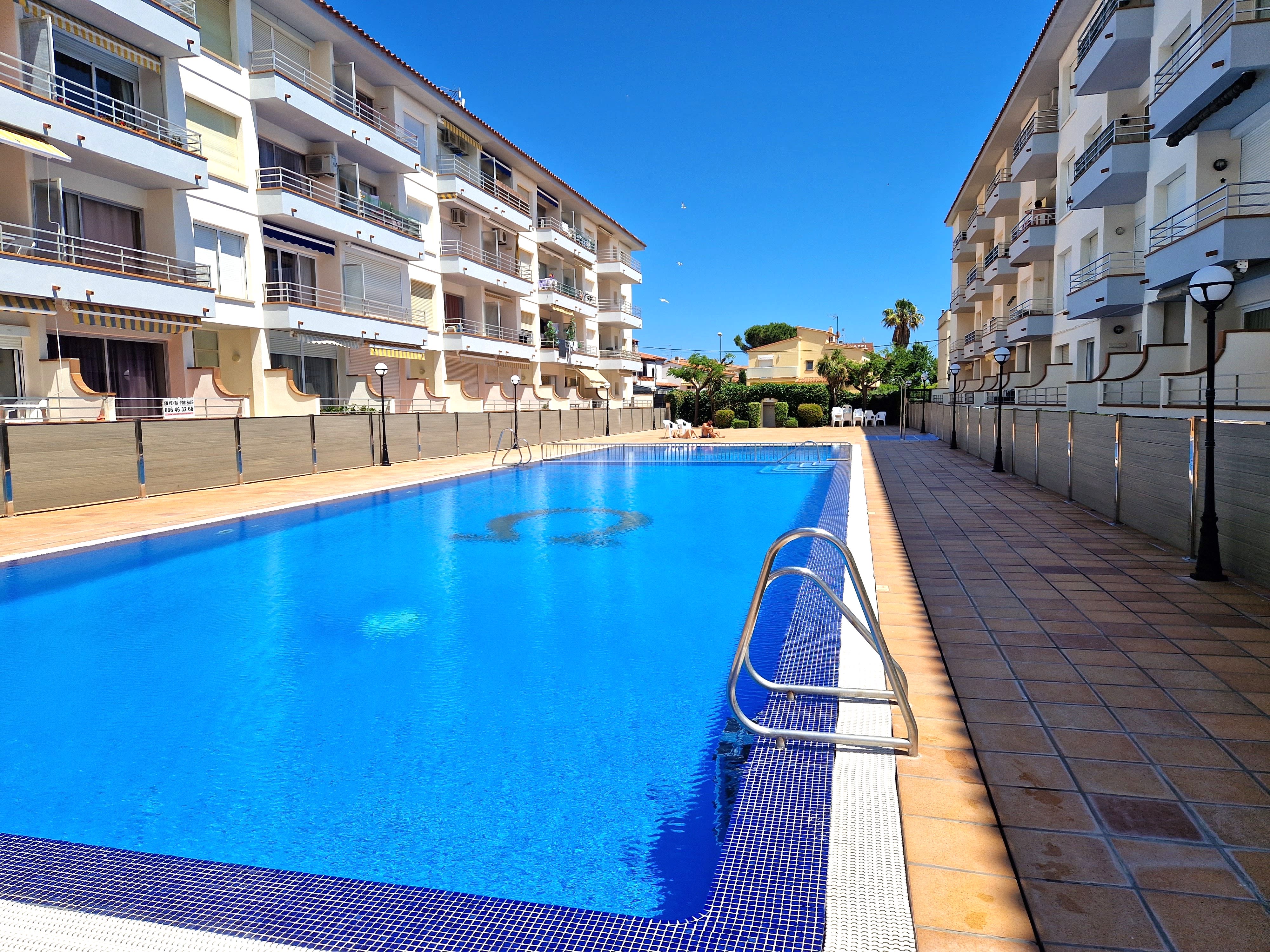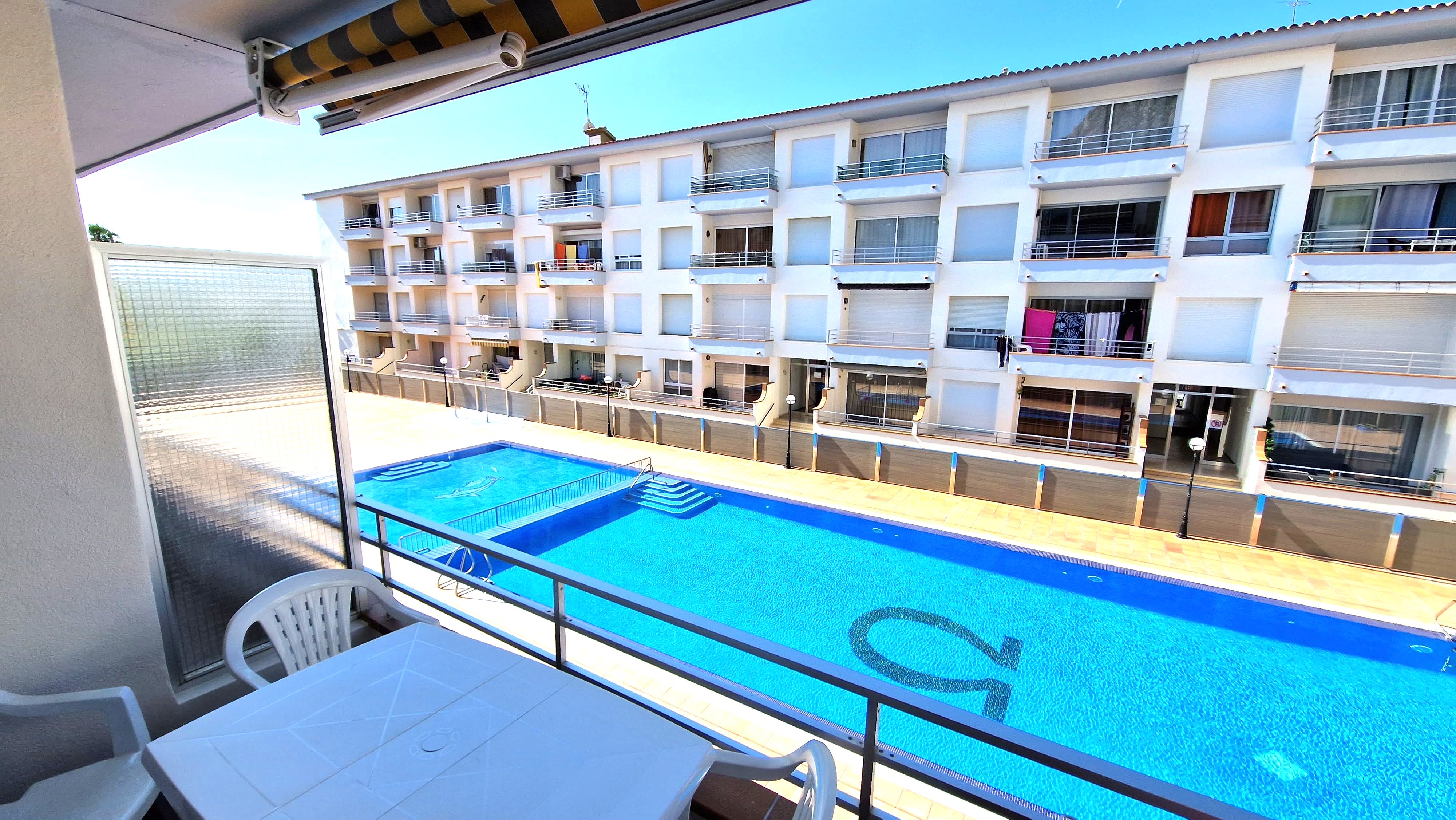 Tourist apartment with communal pool featuring two bedrooms (one double bed and two single beds), bathroom with shower. Sofa bed in the living room. Terrace. Capacity for 5 people. The apartment is located 500 meters from the beach (6 minutes walking distance). Close to restaurants and amenities.