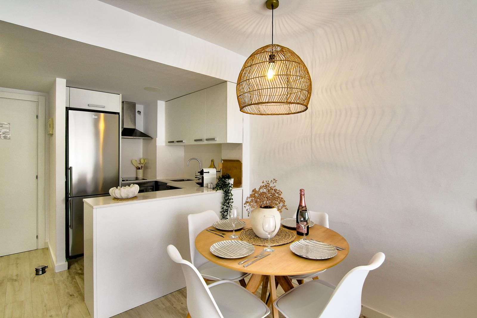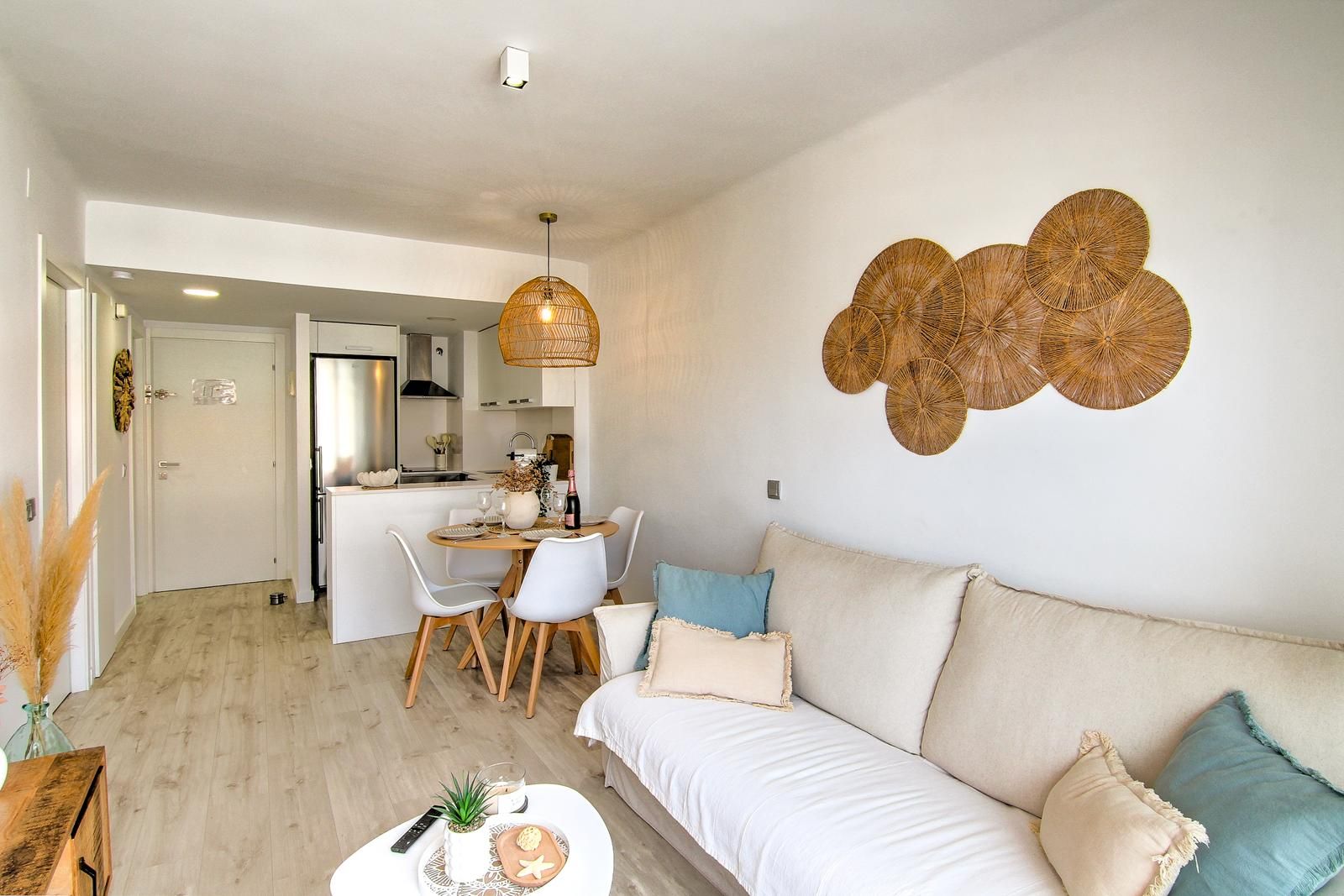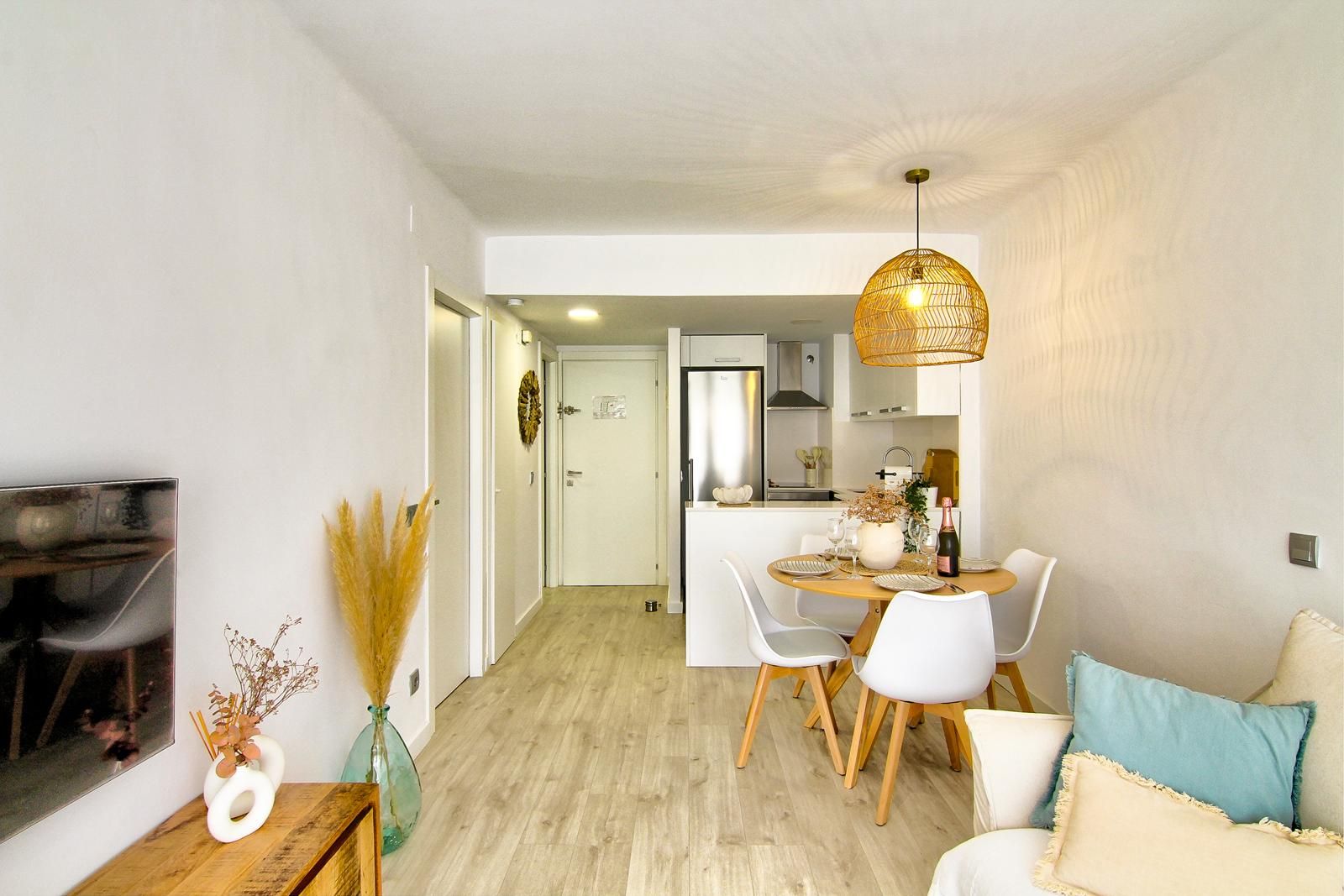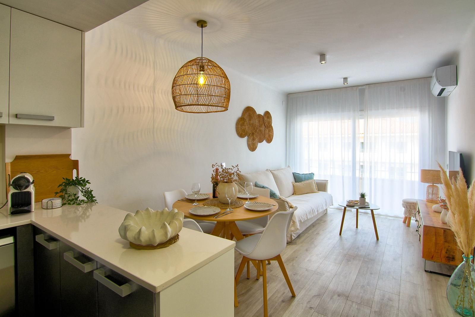 Apartment just renovated with a terrace, communal pool, and well-equipped for a maximum of 4 people. It consists of one double bedroom (double bed) and a sofa bed in the dining room (double bed). The apartment is equipped with a TV, microwave, oven, ceramic hob, coffee maker, dishes, and kitchen utensils. The beach is 250 meters away, or a 4-minute walk. An ideal holiday apartment for families with children. Pets are not allowed.