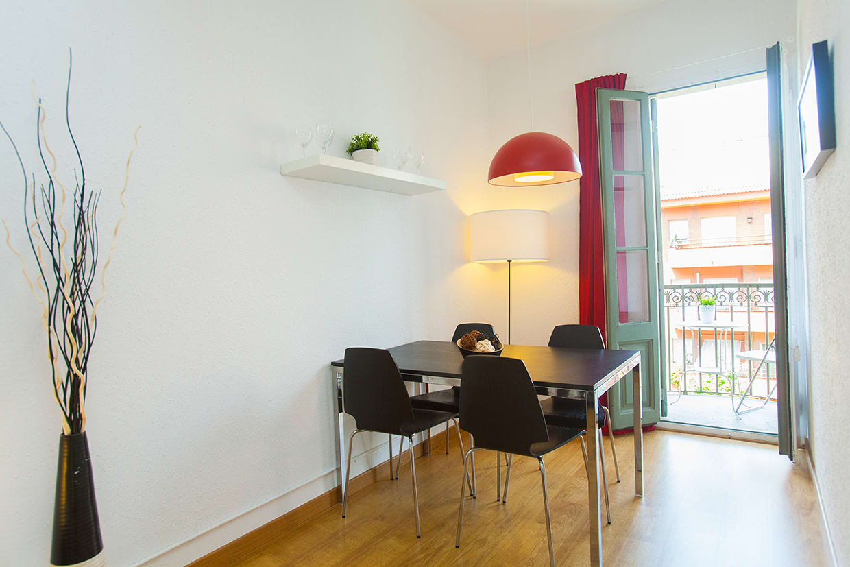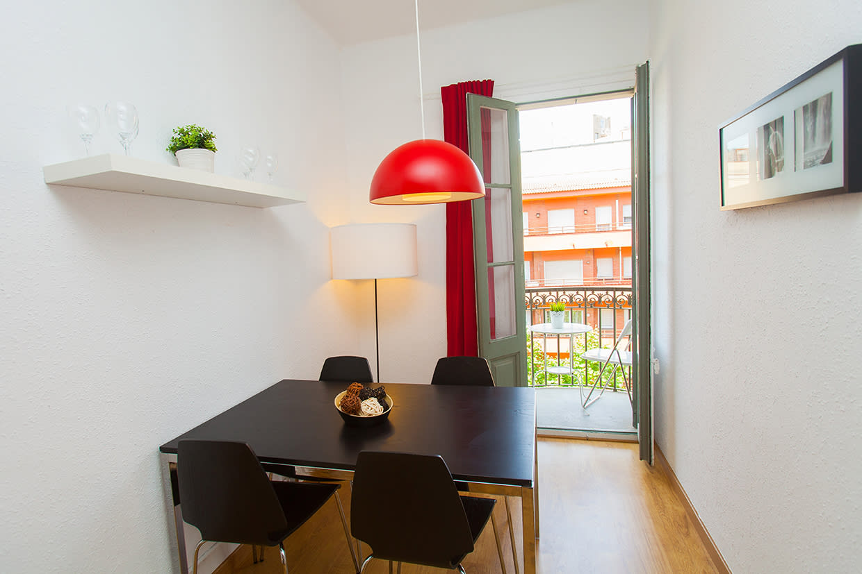 Only about 50m from Sagrada Familia, this apartment for 4 has a very unique location, it's well-equipped, economical and practical. The apartment consists of 1 double bedroom, 1 single bedroom that can be used for 2 (fold-in bed), living room with a double sofa-bed, flat-screen TV. Shower bathroom. Air-conditioning/heating, free Wifi. Small kitchen with glass hob, oven, microwave, kettle, coffee-maker, fridge, pots and pans, plates, cutlery, etc. Exit to a balcony with Sagrada Familia view.