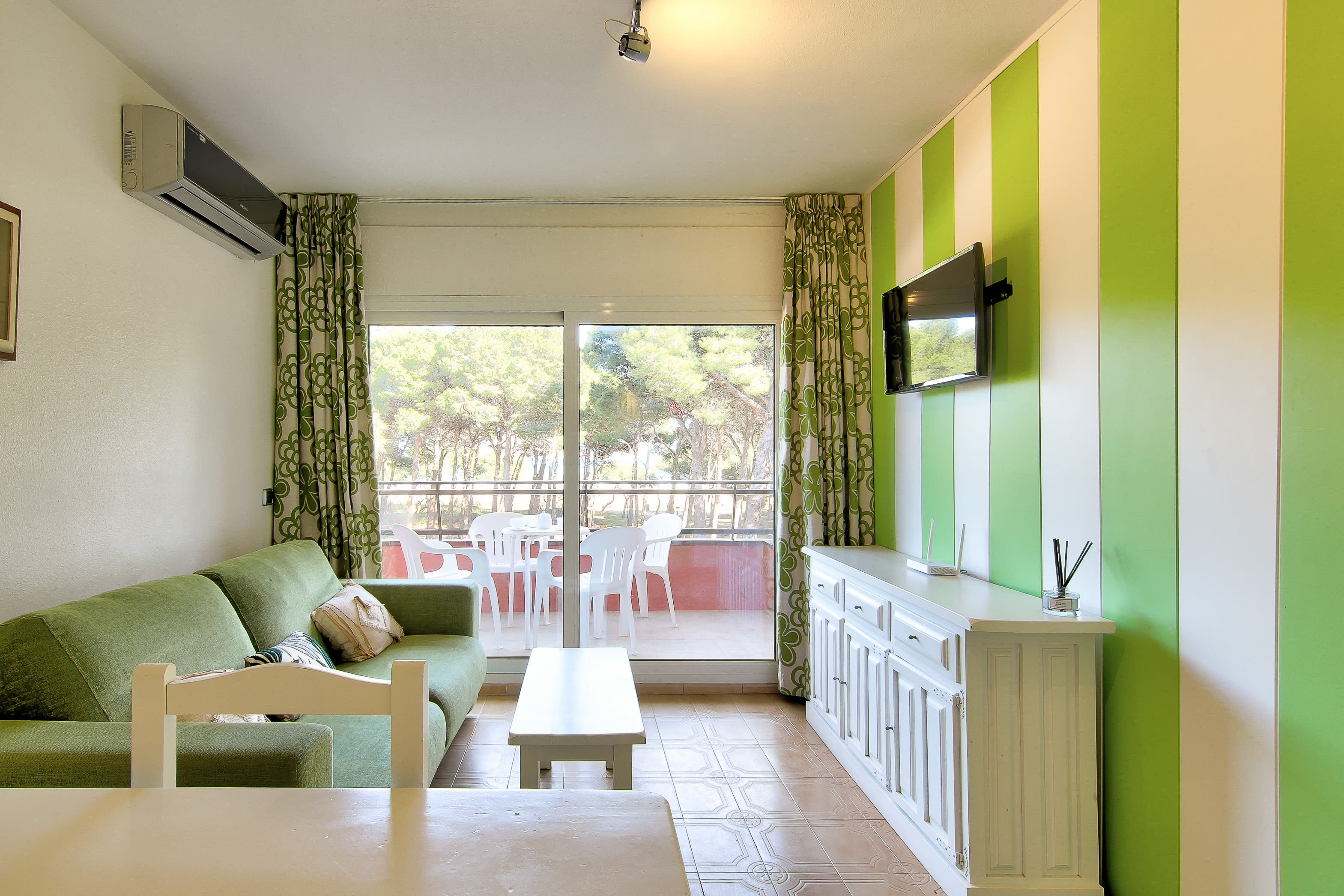 Apartamento recién reformado con vistas al mar, terraza, piscina comunitaria y bien equipado para un máximo de 4 personas. Consta de una habitación doble (una cama doble) y un sofá cama en el comedor. El apartamento cuenta con TV, lavadora, microondas, horno, vitrocerámica, cafetera, vajilla y utensilios de cocina. La playa está a pocos metros del apartamento, a menos de un minuto a pie. Apartamento de vacaciones ideal para familias con niños.