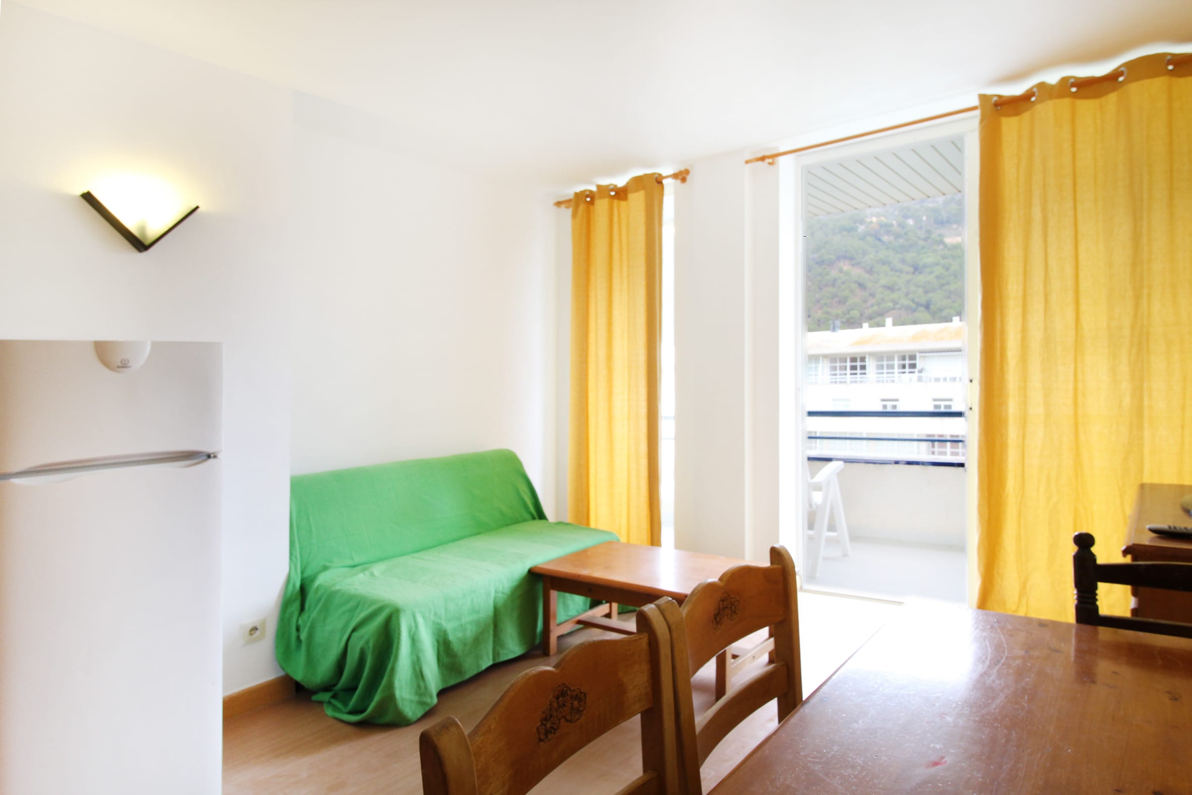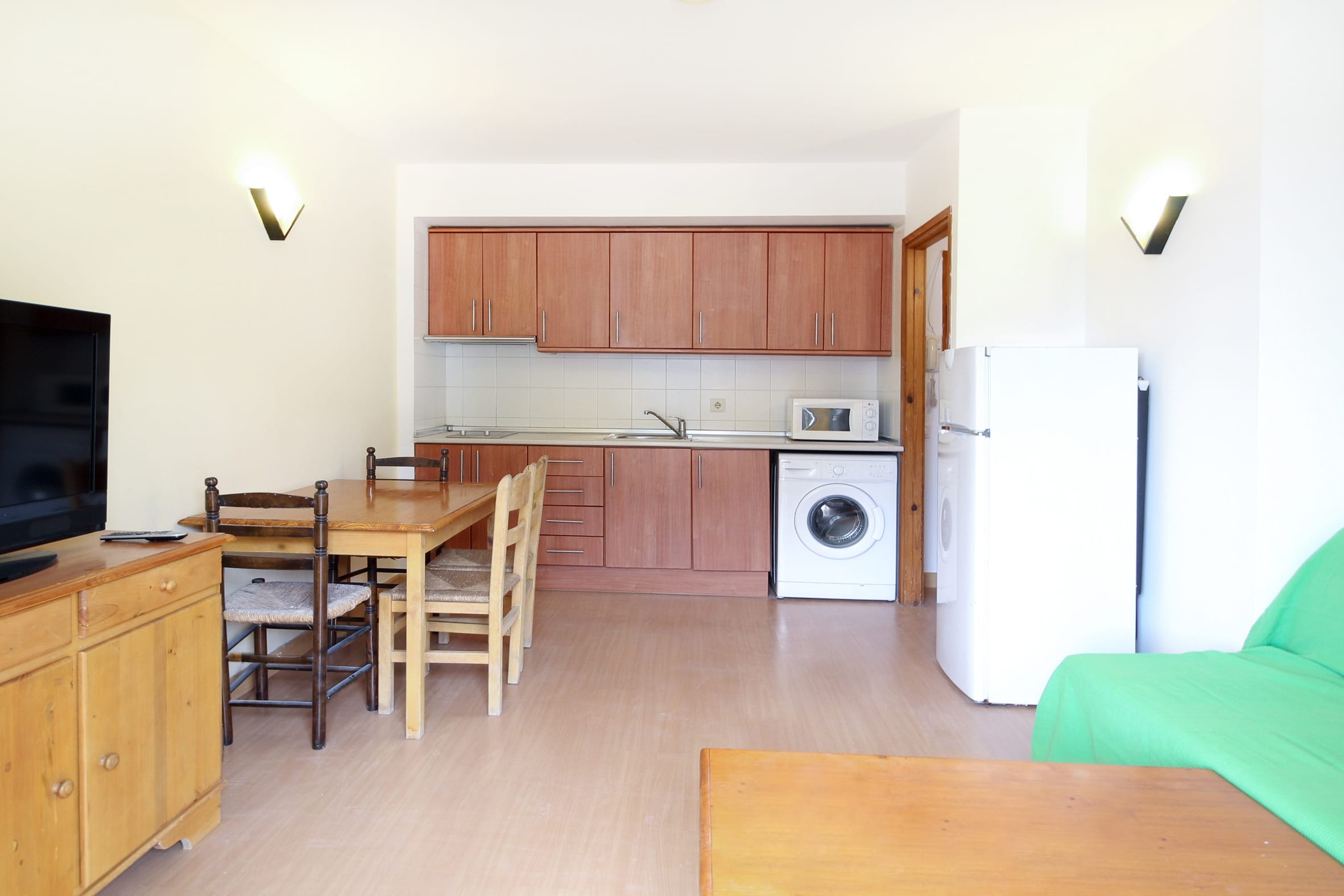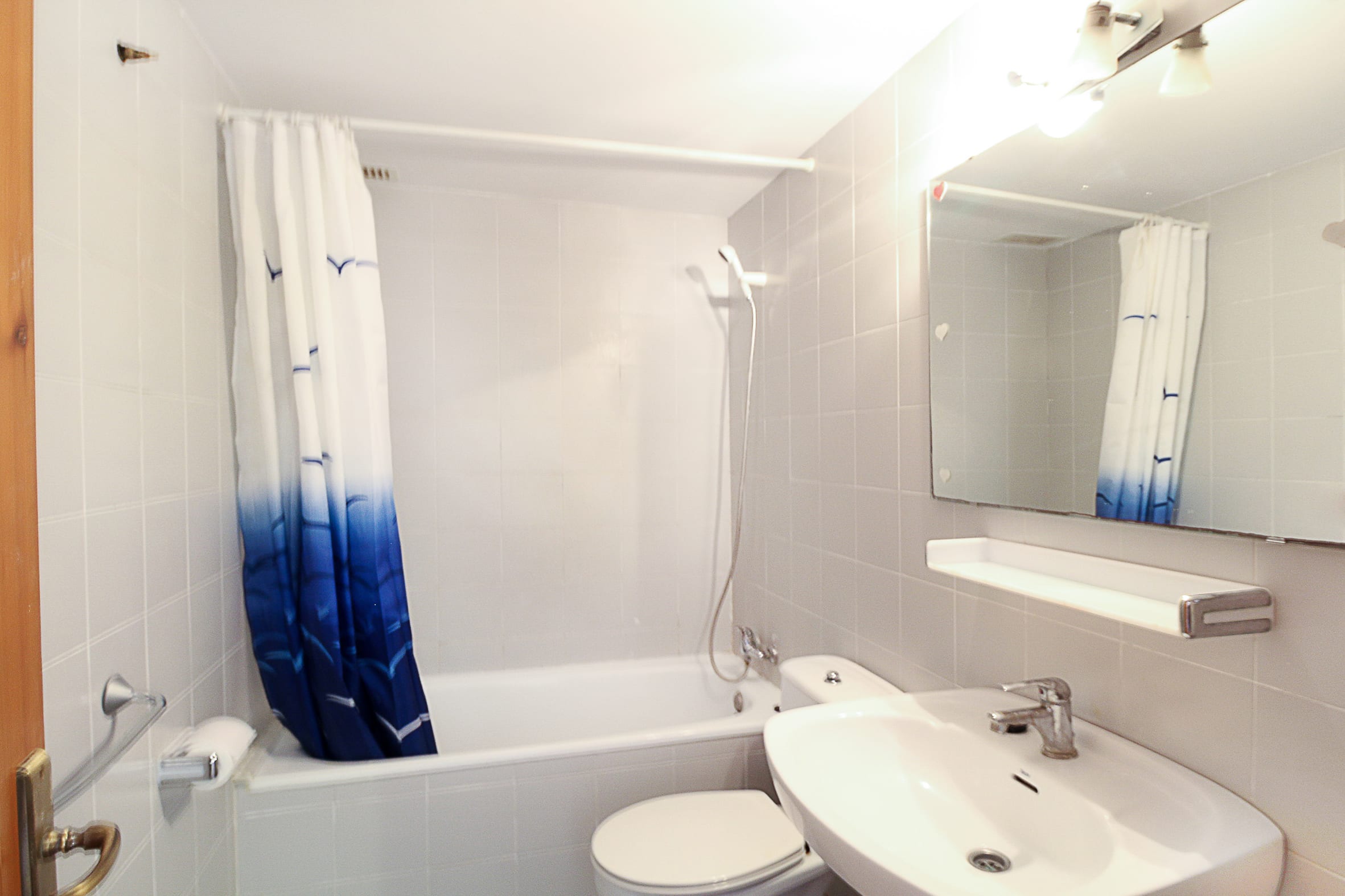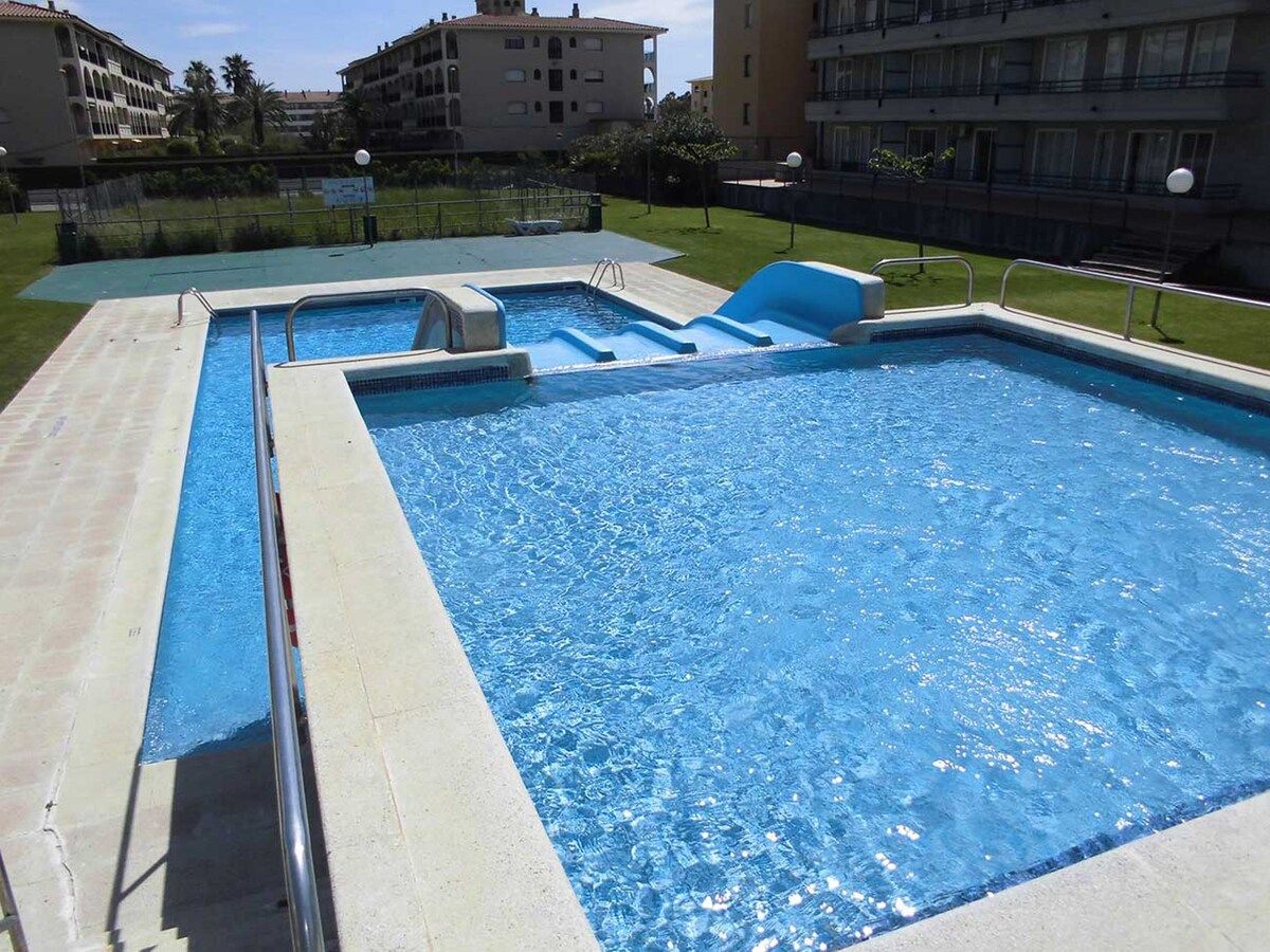 Apartamento para 4 personas en la tercera planta de un edificio de cuatro alturas. Gran jardín y piscina comunitaria con toboganes, ambiente familiar. Un dormitorio con cama de matrimonio y un sofá cama doble en el salón. Cocina abierta, baño y balcón con vistas a la piscina. Frigorífico, microondas, cubertería, vajilla, utensilios de cocina, lavadora. Wi-Fi gratis.