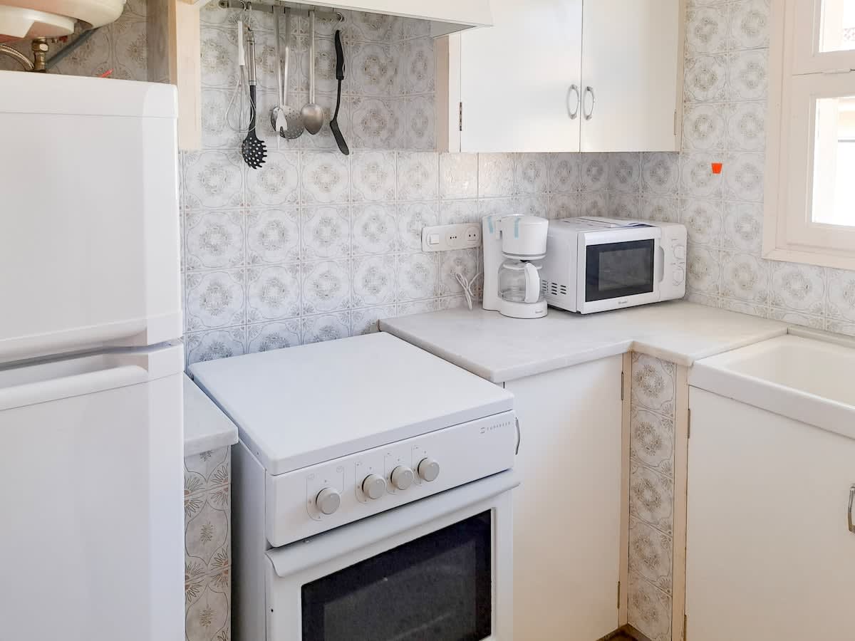 Estudio con dos camas individuales con salida a terraza. Cocina independiente con butano, baño con plato de ducha. Lavadora comunitaria del edificio en la planta baja. Es un apartamento sencillo pero con todo lo necesario para pasar unas buenas vacaciones: el apartamento está en el centro y la playa está a 2 minutos a pie. En el mismo edificio hay 3 apartamentos más.