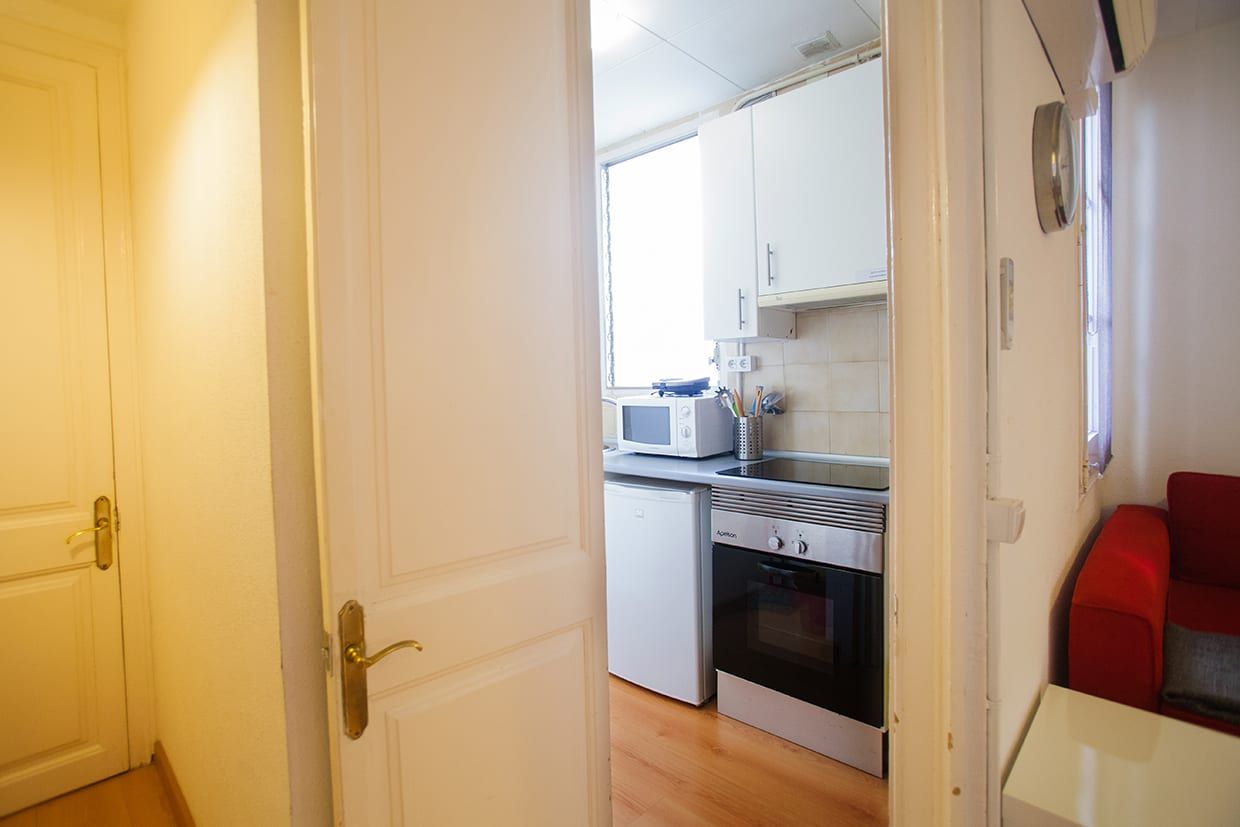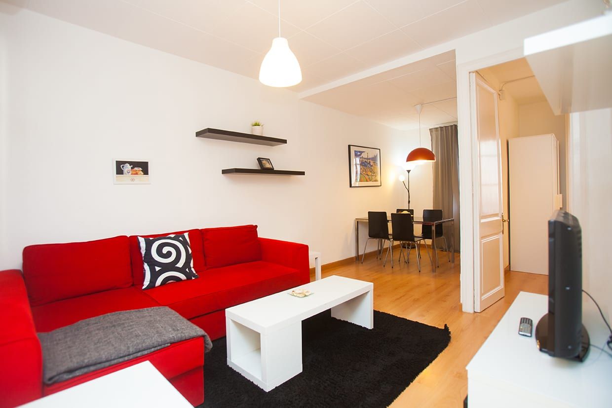 Perfectamente situado a pocos pasos de la Sagrada Familia, este apartamento puede alojar hasta 3 personas. Una habitación doble (cama doble) y una individual (con una o dos camas), un baño pequeño con ducha, cocina bien equipada y sala de estar con sofá, mesa de comedor, TV y aire acondicionado. Está equipado con nevera, microondas, horno, tostadora, hervidor, ollas, sartenes, platos y cubiertos.