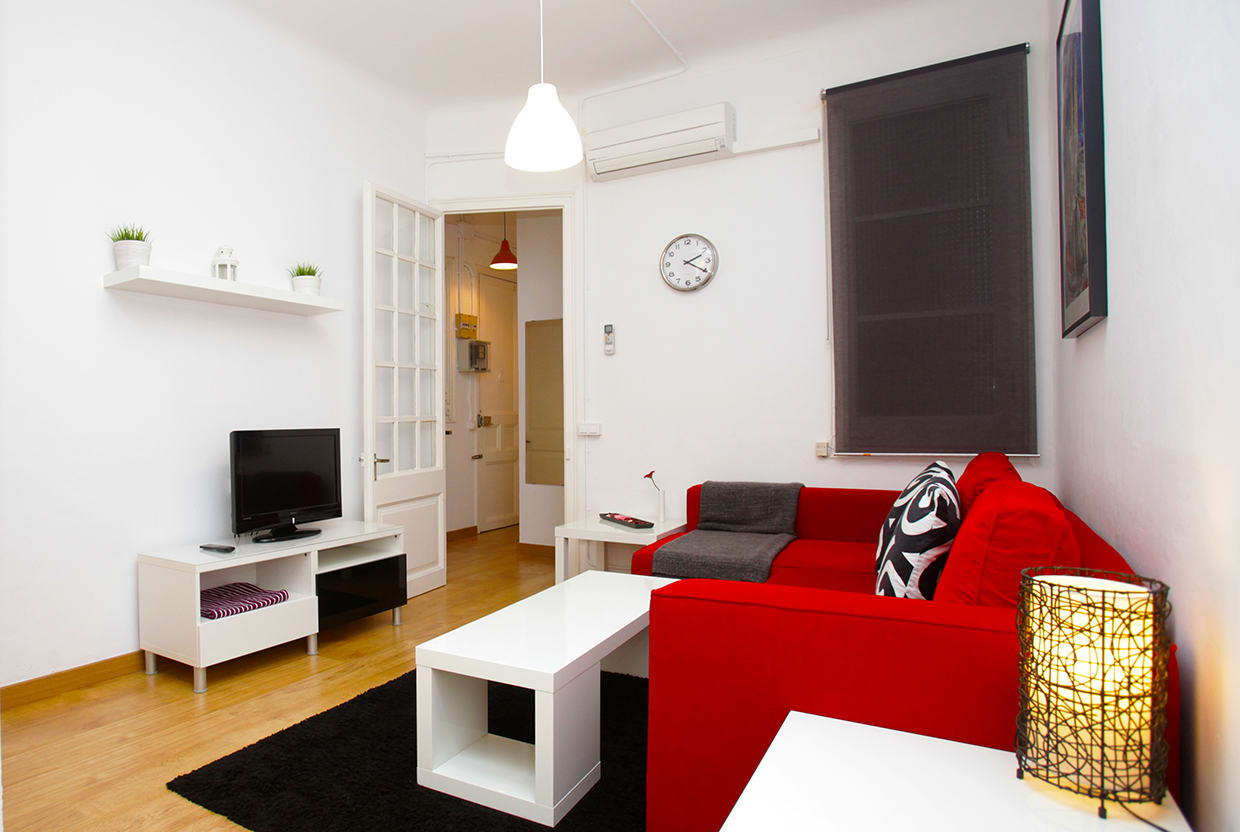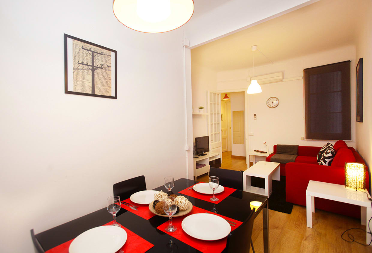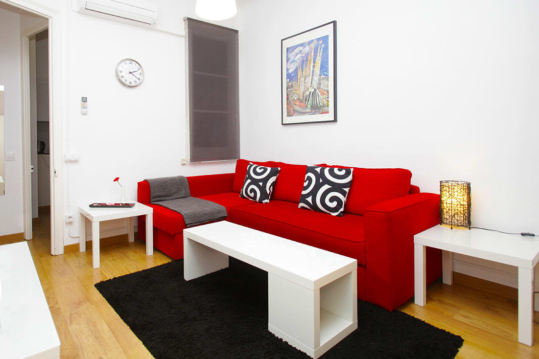 Su ubicación ideal justo al lado de la Sagrada Familia y su precio económico es lo que distingue este apartamento. Con cocina equipada, Wifi gratuito, aire acondicionado / calefacción, TV, fácil acceso a la parada de metro a sólo un minuto. El apartamento consta de un dormitorio con una cama doble y un dormitorio pequeño que se puede preparar con una o dos camas, sala de estar con sofá-cama, y baño pequeño con ducha.
