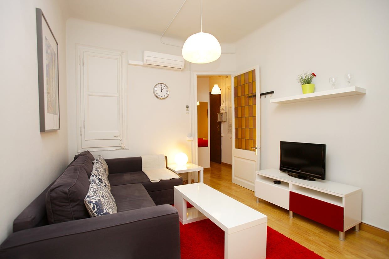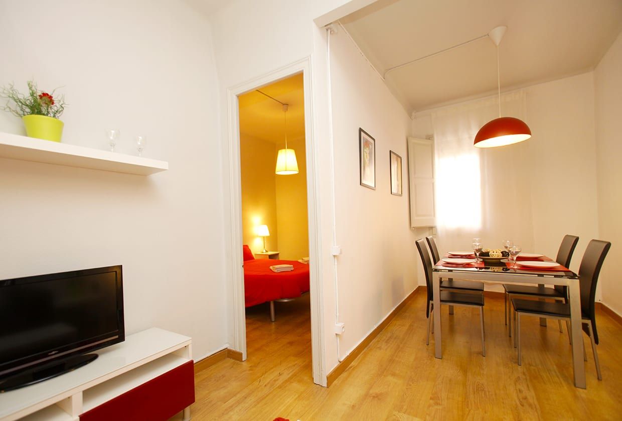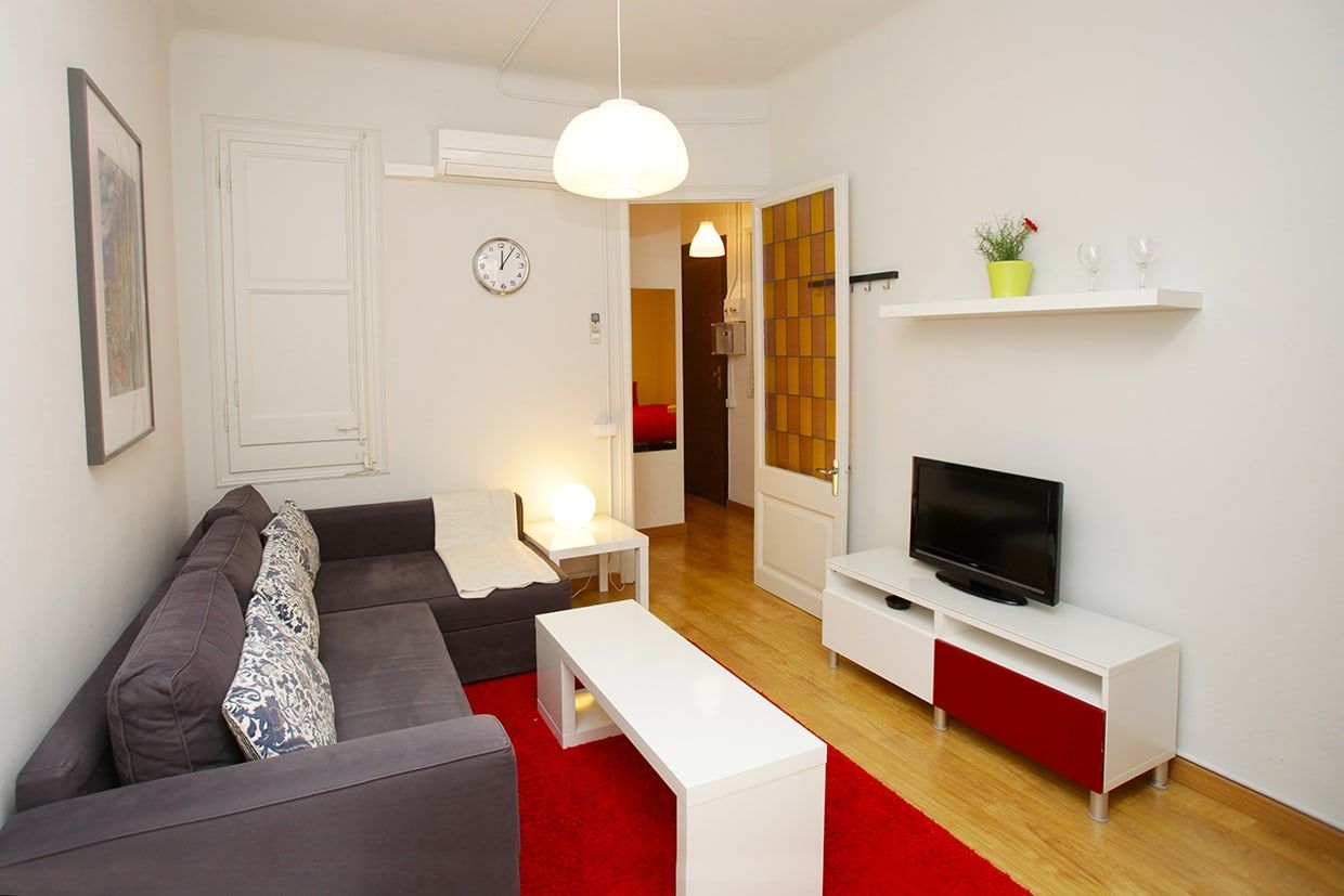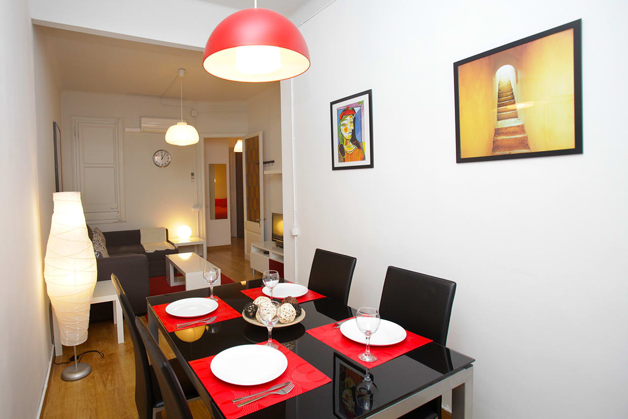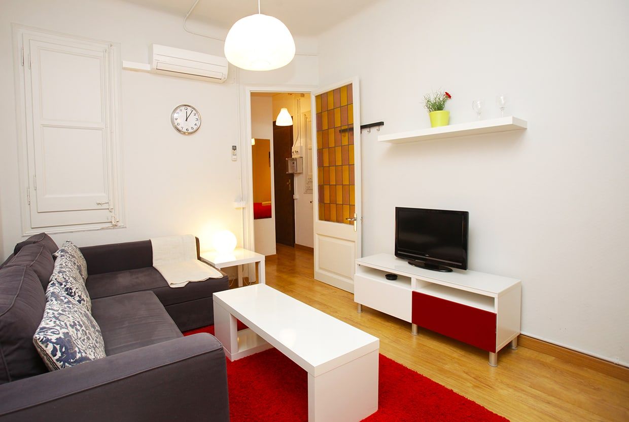 BarcelonaPerfectamente situado a pocos pasos de la Sagrada Familia, este apartamento se alquila por meses (estancia mínima de un mes) y puede alojar hasta 3 personas. Una habitación doble y una individual, un baño pequeño con ducha, cocina bien equipada y sala de estar con sofá, mesa de comedor, TV y aire acondicionado. Está equipado con lavadora, nevera, microondas, horno, tostadora, hervidor, ollas, sartenes, platos y cubiertos.