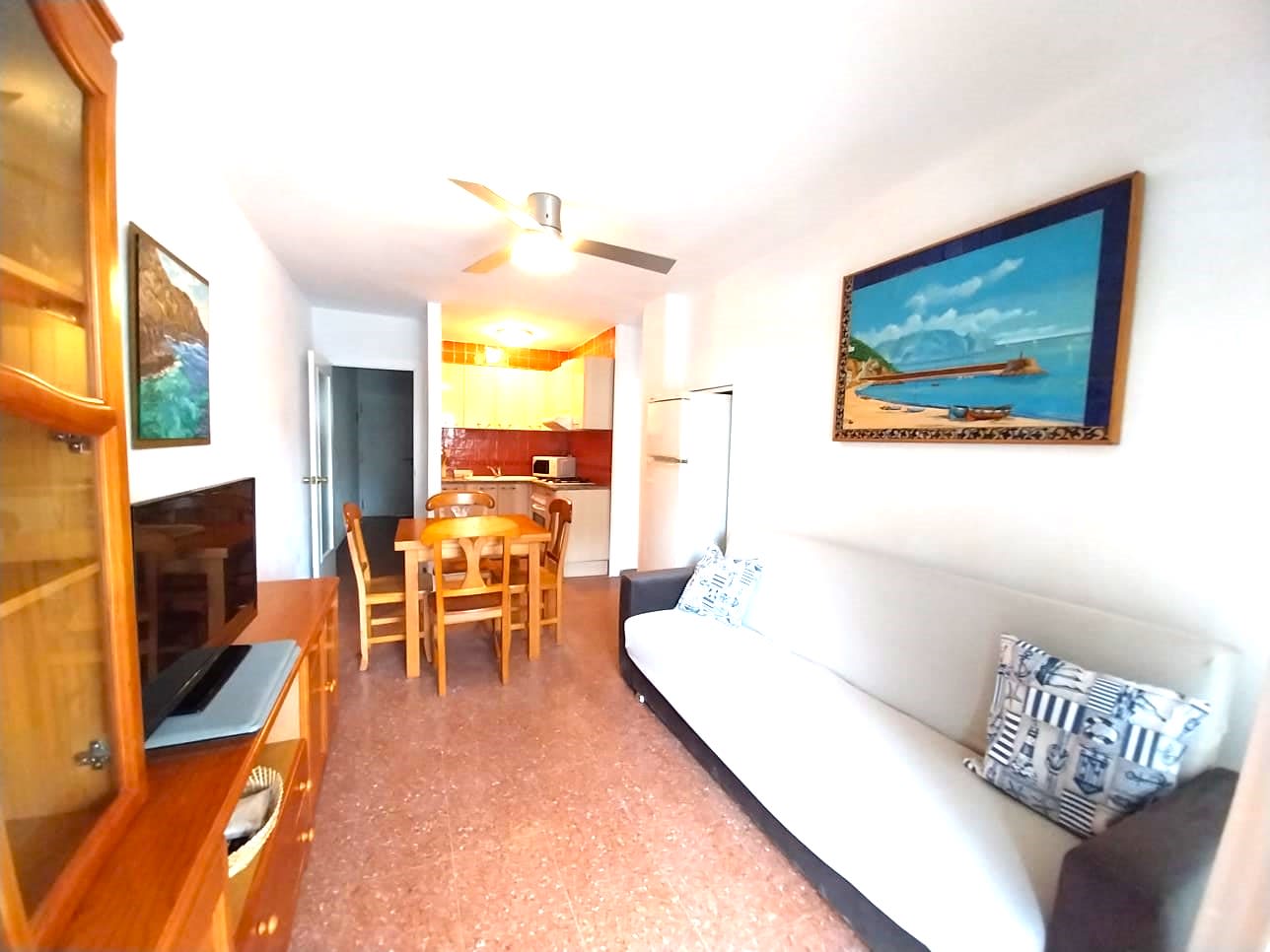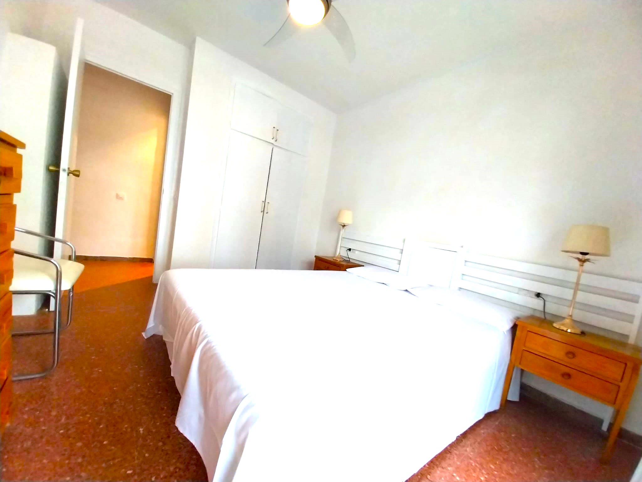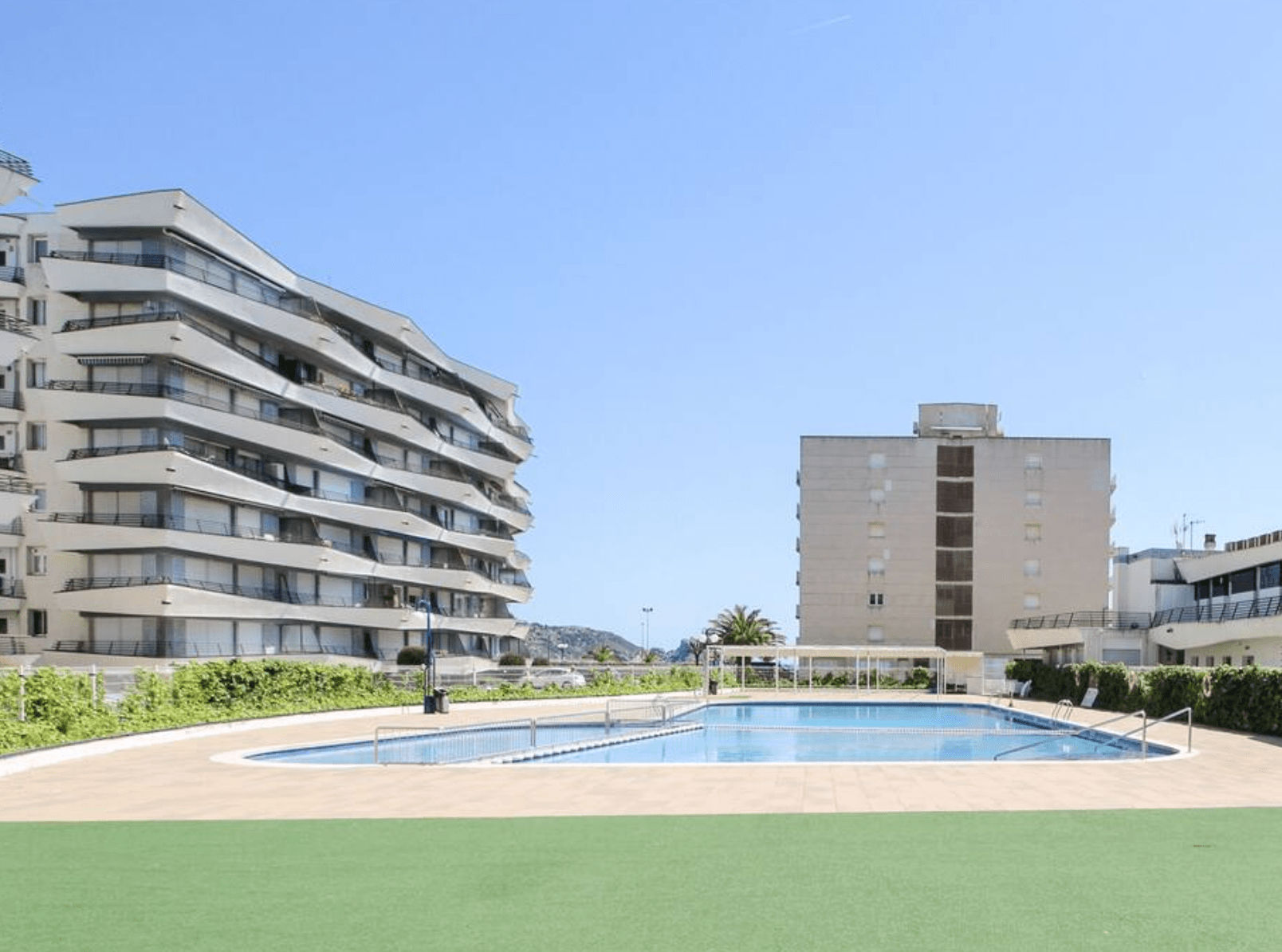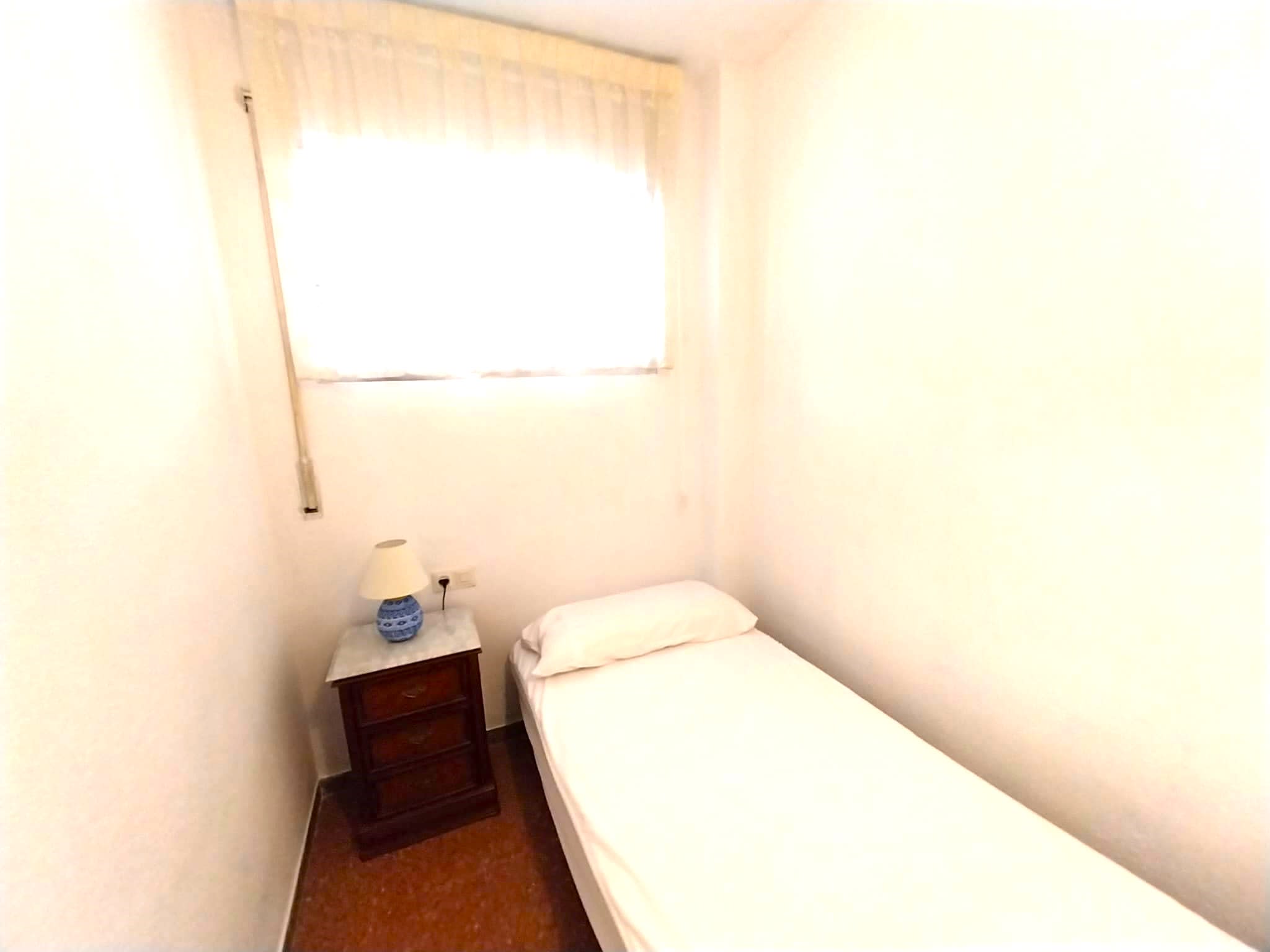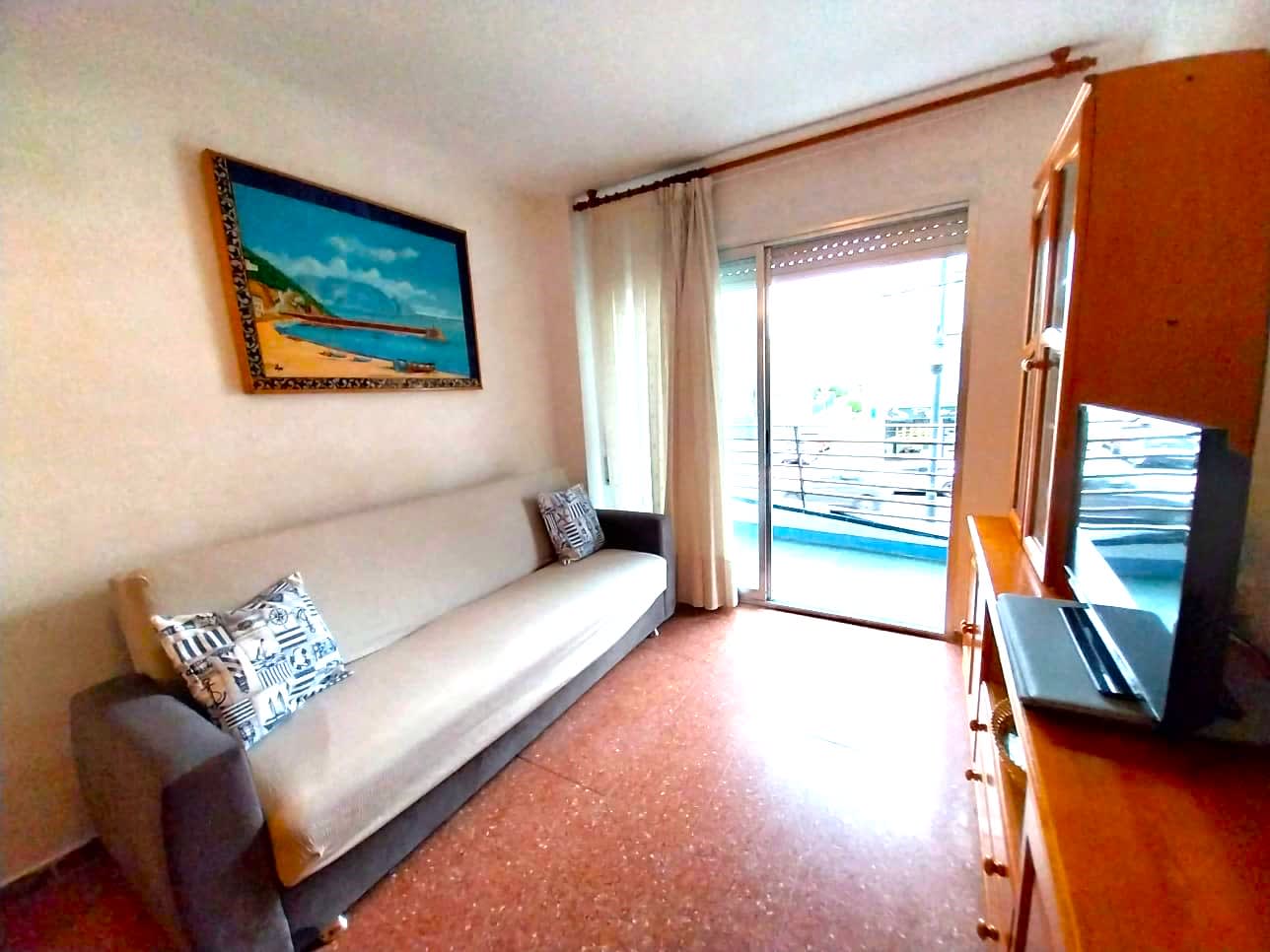 Apartamento céntrico con piscina y aparcamiento para 6 personas, a 100 m de la playa. Ideal para familias con niños. El apartamento tiene 2 habitaciones (una con cama de matrimonio y la otra con litera) y un sofá cama en la sala de estar. Baño con ducha. La cocina está equipada con nevera, microondas, horno, tostadora, cafetera, cubiertos, platos, utensilios de cocina. Plancha y lavadora. La terraza con mesa y sillas es el lugar ideal para empezar el día y disfrutar del buen tiempo.