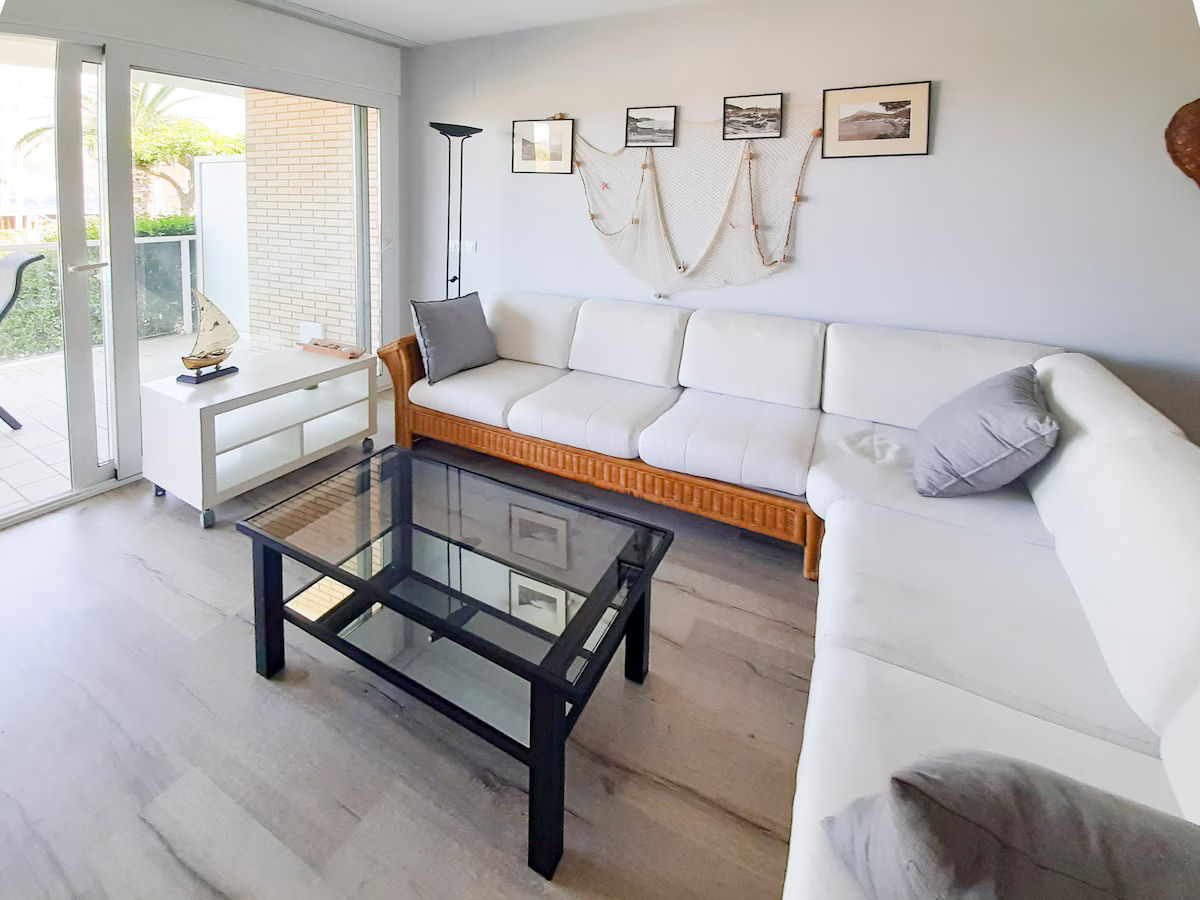 Apartamento en primera linea de mar con espectaculares vistas a las islas Medas. Situado a pocos metros de la playa consta de 3 habitaciones dobles, dos con una cama de matrimonio y la tercera con tres camas individuales. Tiene un salón comedor amplio con cocina americana abierta y salida a una gran terraza con vistas directas al mar. El apartamento tiene 2 baños con un plato de ducha cada uno. Piscina comunitaria con acceso directo desde el apartamento a pocos metros de la playa.