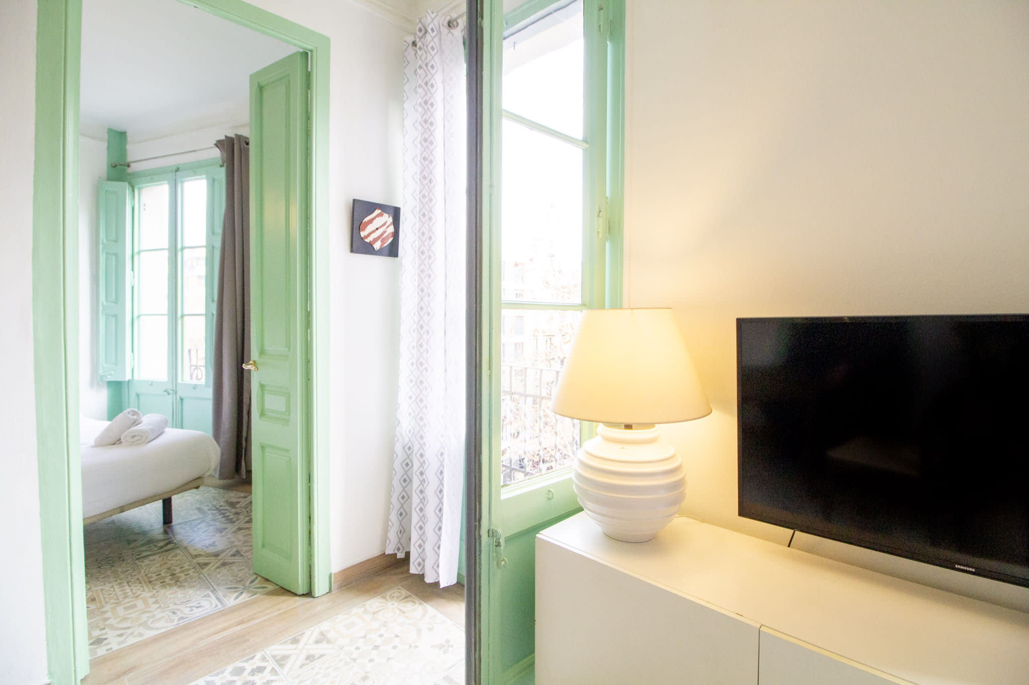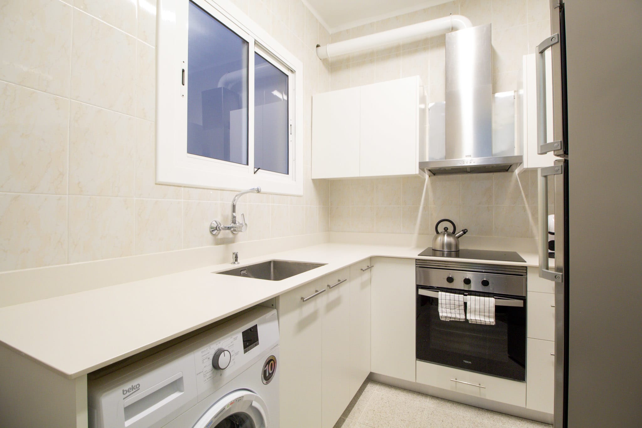 À l'intérieur, vous trouverez une cuisine entièrement équipée avec un four, un micro-ondes, un lave-vaisselle, un grille-pain et un réfrigérateur, parfaits pour préparer vos repas. L'appartement dispose également d'un sèche-linge, d'une machine à laver, d'une bouilloire électrique, d'un sèche-cheveux, d'un fer à repasser et de chauffage, garantissant un séjour confortable en toutes saisons. L'appartement est équipé de la climatisation ainsi que du Wi-Fi gratuit dans tout l'espace. Que vous soyez à Barcelone pour affaires ou pour le plaisir, cet appartement bien équipé est la base idéale pour votre séjour.
