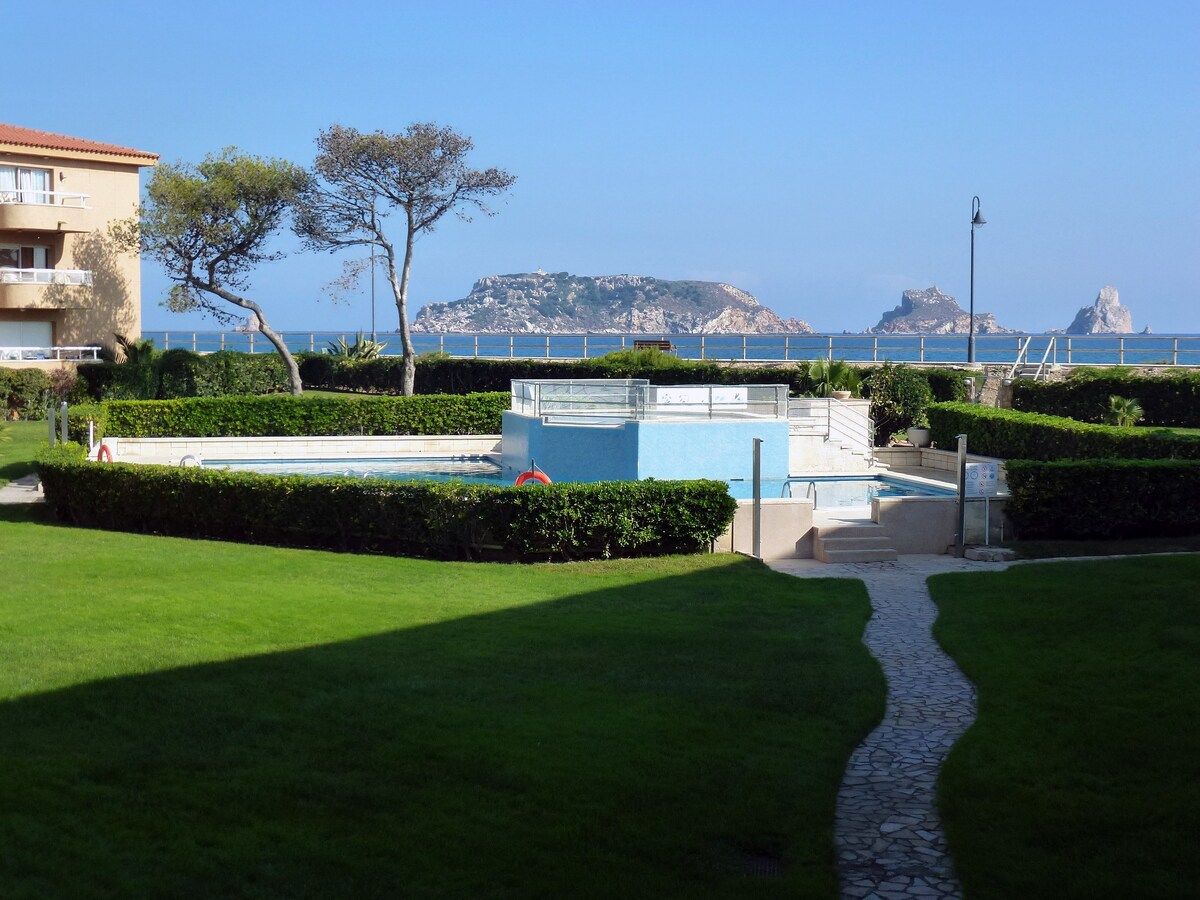 Bon apartament, modernament moblat amb totes les comoditats, com ara rentadora, rentaplats, internet ràpida, aire condicionat. A la platja. Un passeig preciós pel passeig marítim fins al poble de L’Estartit, a uns 15 minuts.
