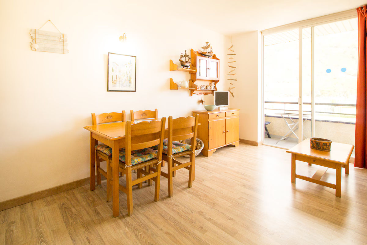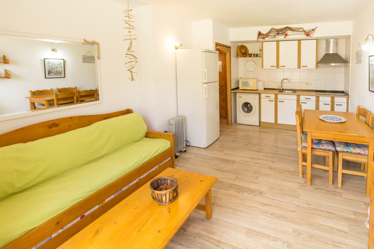 Apartament a la tercera planta de l'edifici Blaupark II a l'Estartit amb piscina i jardí a 450m de la platja (9 min a peu). L'apartament té capacitat màxima per a 4 persones. Té una habitació doble (amb un llit matrimoni), cuina-menjador amb sofà llit (dos llits individuals), bany amb banyera i terrassa. Està equipat amb TV, nevera, rentadora, microones, cafetera. L'edifici té ascensor. Ambient familiar.