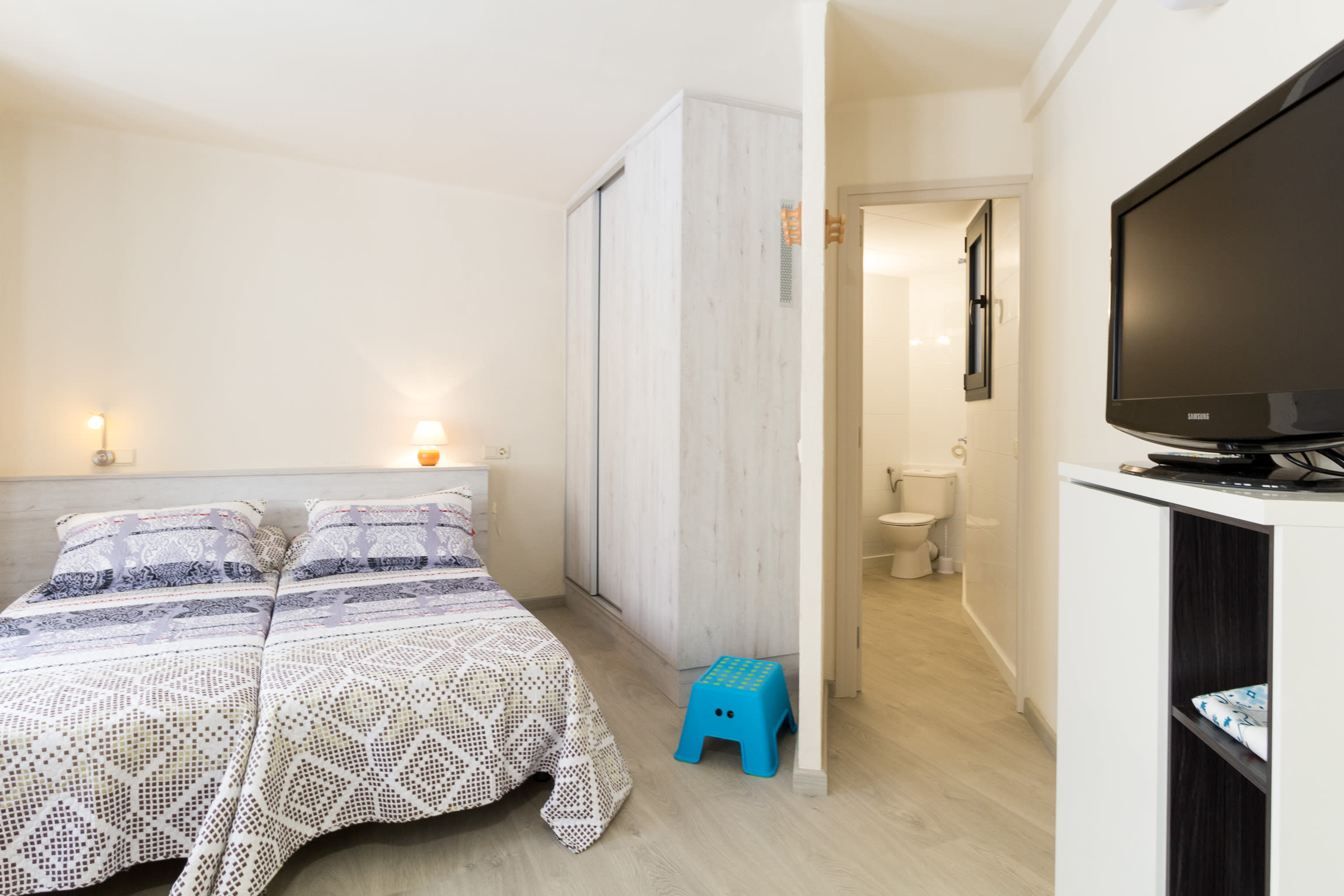 Modern i elegant apartament amb aire condicionat al centre d’Estartit, a la zona del port, al costat de molts restaurants i a només 2 minuts de la platja. És un estudi de 2 llits individuals, bany amb dutxa i cuina americana. L'apartament es troba al primer pis d'un edifici de només 2 apartaments amb una gran terrassa compartida.