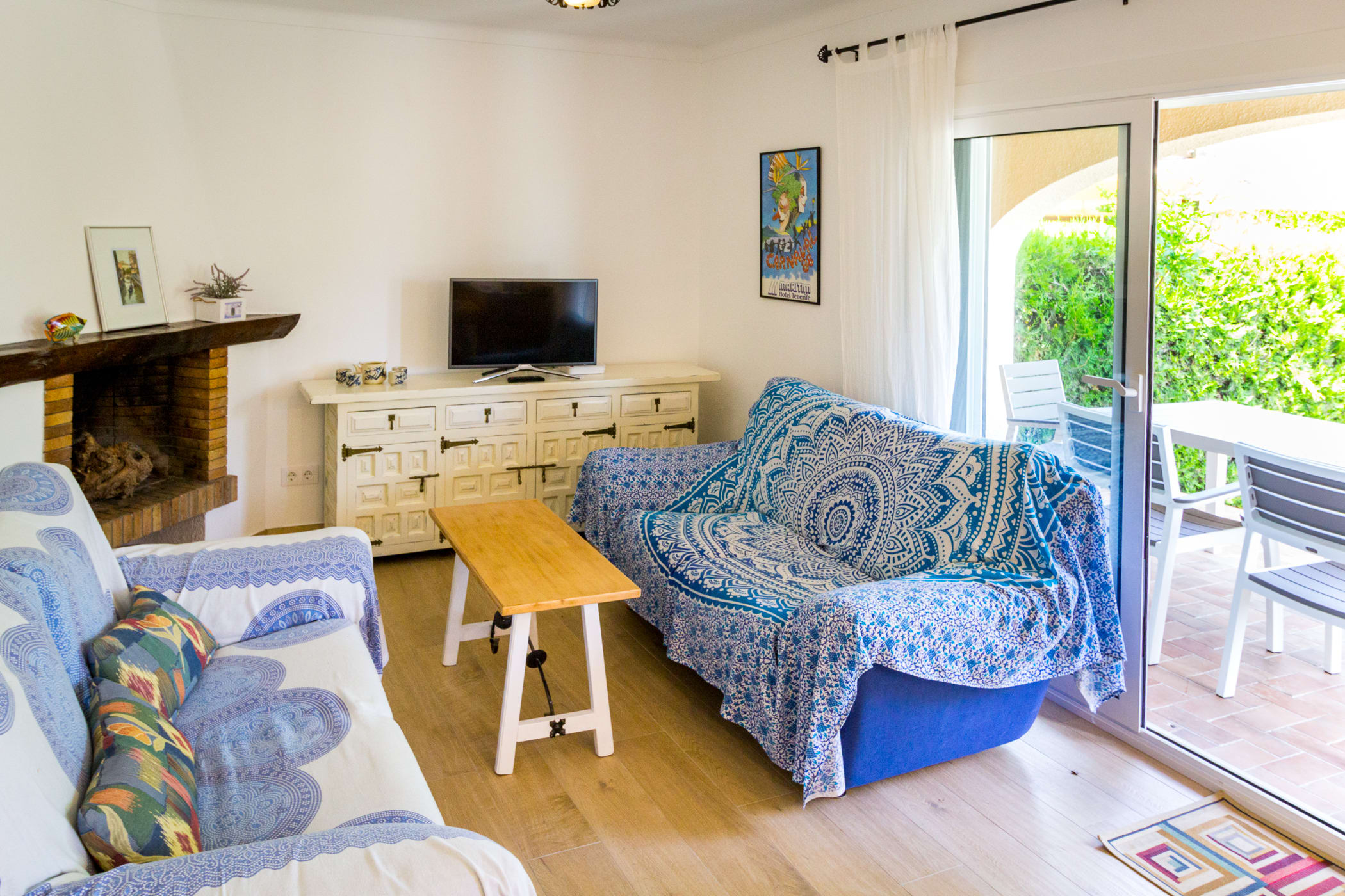 Preciosa casa de 65m2 amb jardí de 500m2 i pàrquing privat. Està situada en una bonica zona residencial amb una gran piscina comunitària. Hi ha 2 dormitoris dobles, un bany amb plat de dutxa i un ampli saló amb llar de foc i cuina. Calefacció elèctrica, cuina amb vitroceramica de inducció.Mosquiteres. Electrodomèstics: TV, rentadora,rentaplats, microones, planxa, torradora. Cuina equipada per cuinar i servir. Mides dels llits: llit de matrimoni: llit de 135 cm, dos llits individuals de 90 cm.