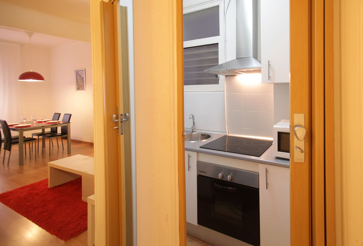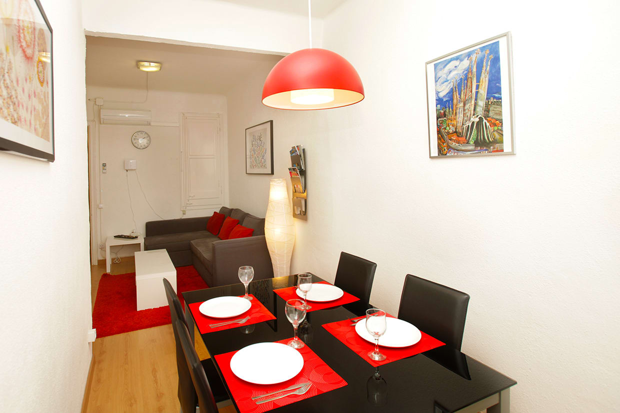 La seva ubicació ideal just al costat de la Sagrada Família i el seu preu econòmic és el que distingeix aquest apartament. Amb cuina equipada, Wifi gratuït, aire condicionat / calefacció, TV, fàcil accés a l'estació de metro a només un minut. L'apartament consta d'un dormitori amb un llit doble i un dormitori petit que es pot preparar amb un o dos llits, sala d'estar amb sofà-llit, i bany petit amb dutxa.