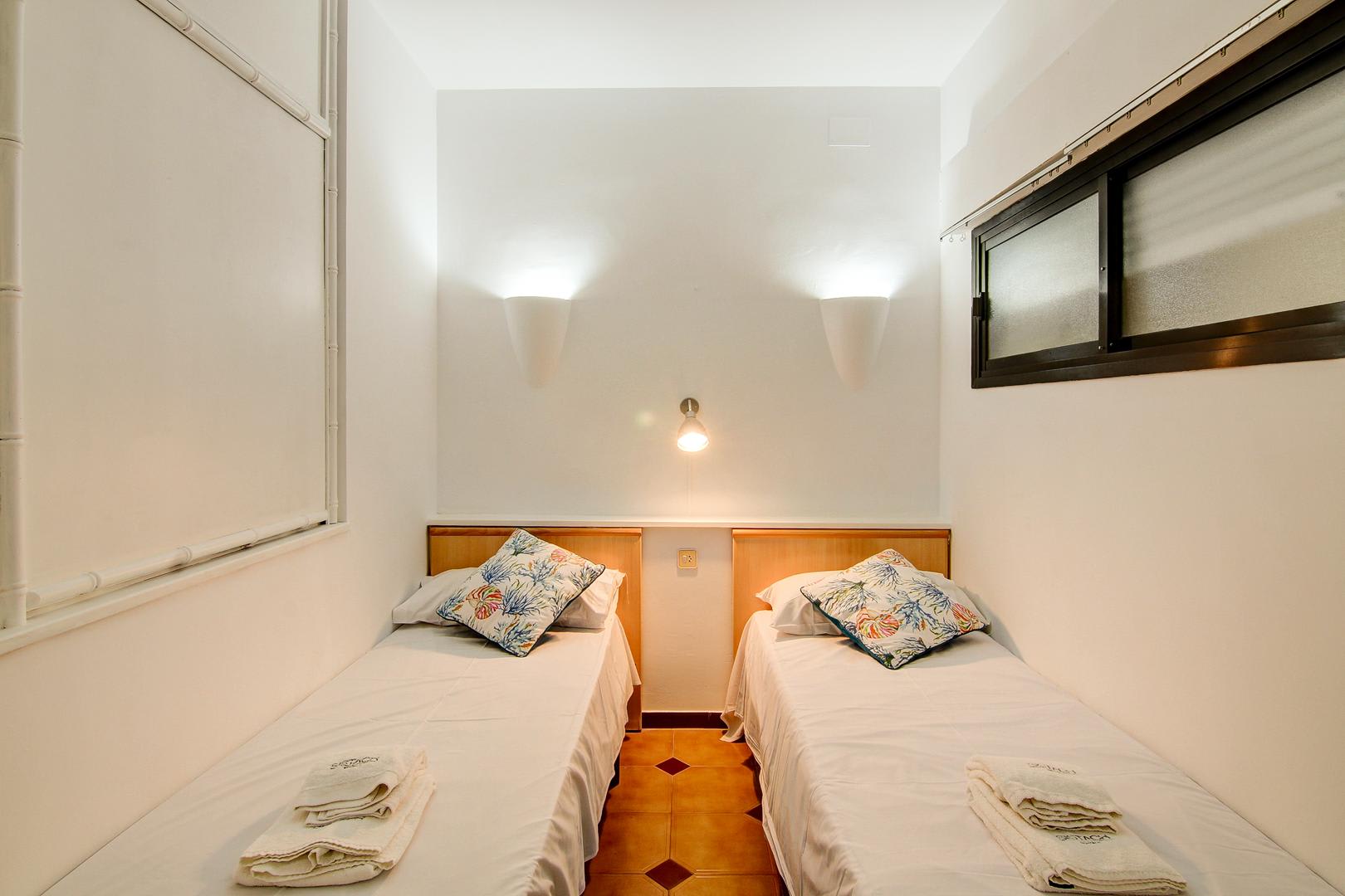 Apartament planta baixa amb aire acondicionat, recentment reformat i amb capacitat per 4-6 persones: 2 habitacions, cuina-menjador amb sofà llit, bany i terrassa. Jardí i piscina comunitaris. Bonic jardí comunitari amb llac, piscina comunitària amb tobogans i 3 piscines, intèrfon, ascensor, pàrquing exterior tancat comunitari. Platja a 450 m. Serveis a 100 m: supermercat, fleca, carnisseria. Centre del poble a 450 m. Edifici amb ambient familiar amb nens.
