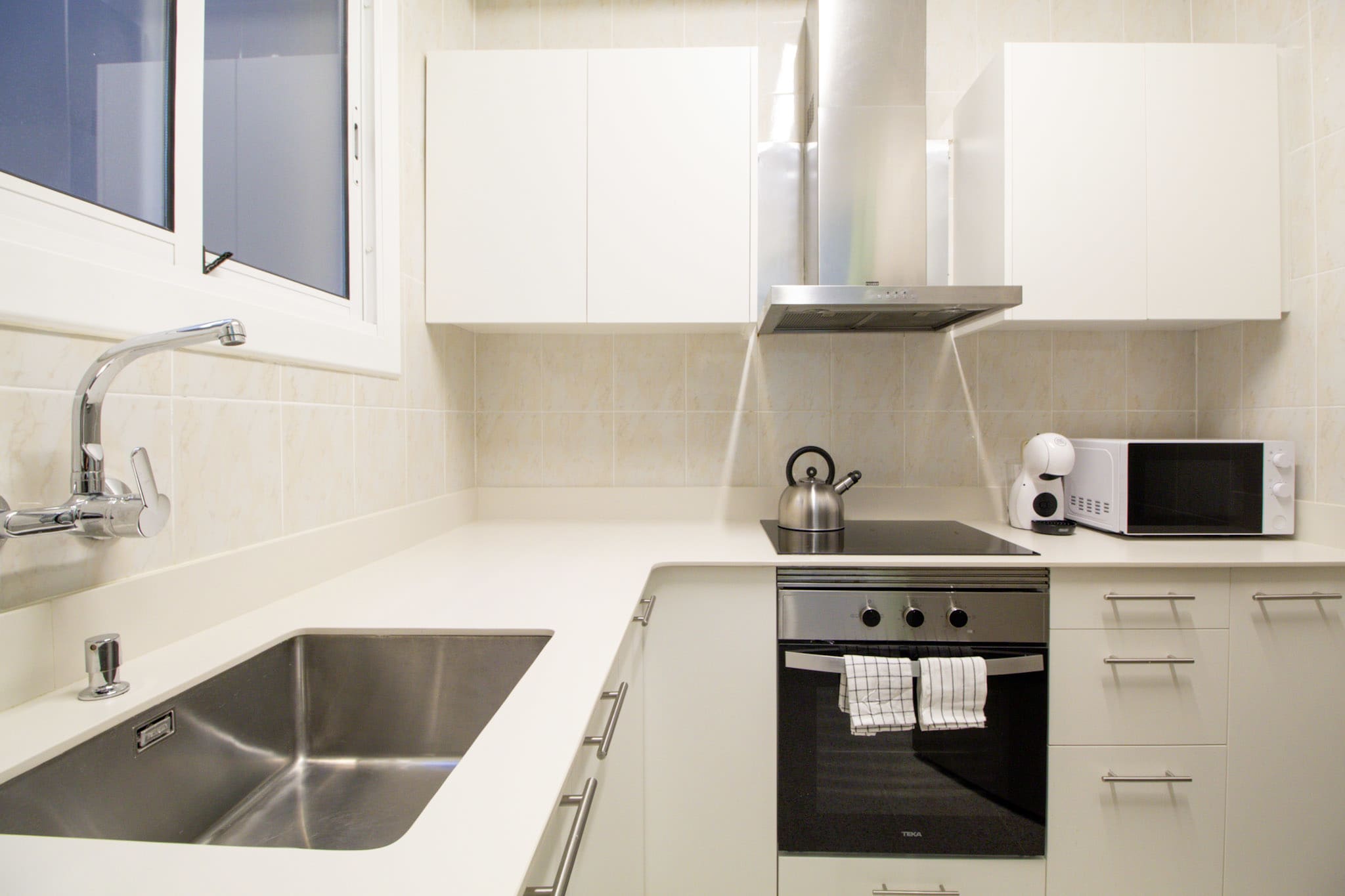 A l'interior, trobaràs una cuina totalment equipada amb forn, microones, rentavaixelles, torradora i nevera, perfecta per preparar els teus àpats. L'apartament també disposa de rentadora, assecadora, bullidor elèctric, assecador de cabell, planxa i calefacció, garantint una estada còmoda en qualsevol època de l'any. L'apartament està equipat amb aire condicionat, així com Wi-Fi gratuït a tota la casa. Ja sigui que estiguis a Barcelona per negocis o oci, aquest apartament ben equipat és la base ideal per a la teva visita.