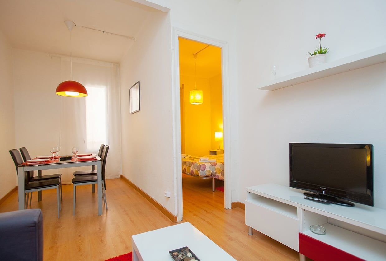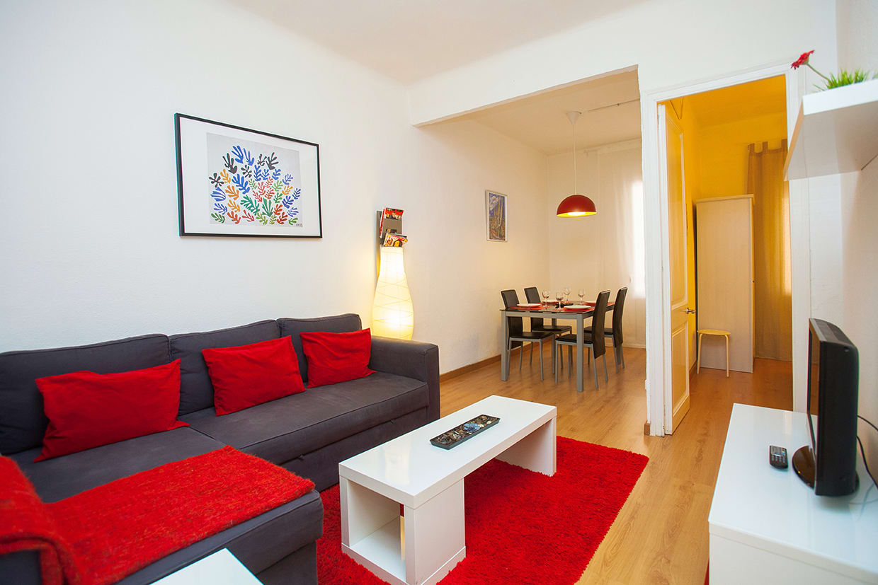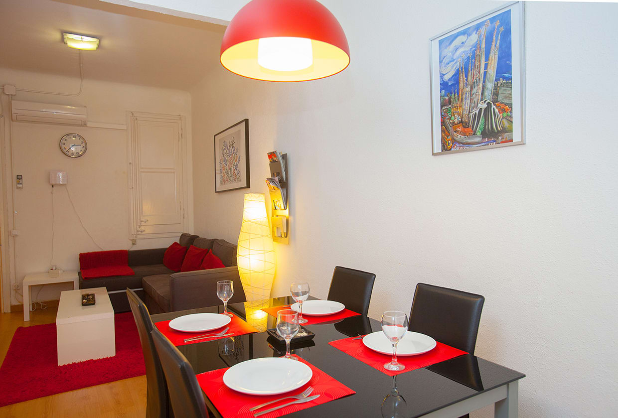 BarcelonaPerfectament situat a Av. Gaudí, a pocs passos de la Sagrada Família, es lloga mensualment i pot allotjar fins a 3 persones. 1 habitació doble i 1 habitació individual, un petit bany amb dutxa, cuina ben equipada, sala d'estar amb sofà llit, taula de menjador, TV i aire condicionat. Wifi. L’aigua i el wifi estan inclosos en el preu i l’electricitat s’inclou amb un límit mensual de 300 kWh. Aquest tipus d’apartament es interior, dóna a la part posterior de l’edifici.