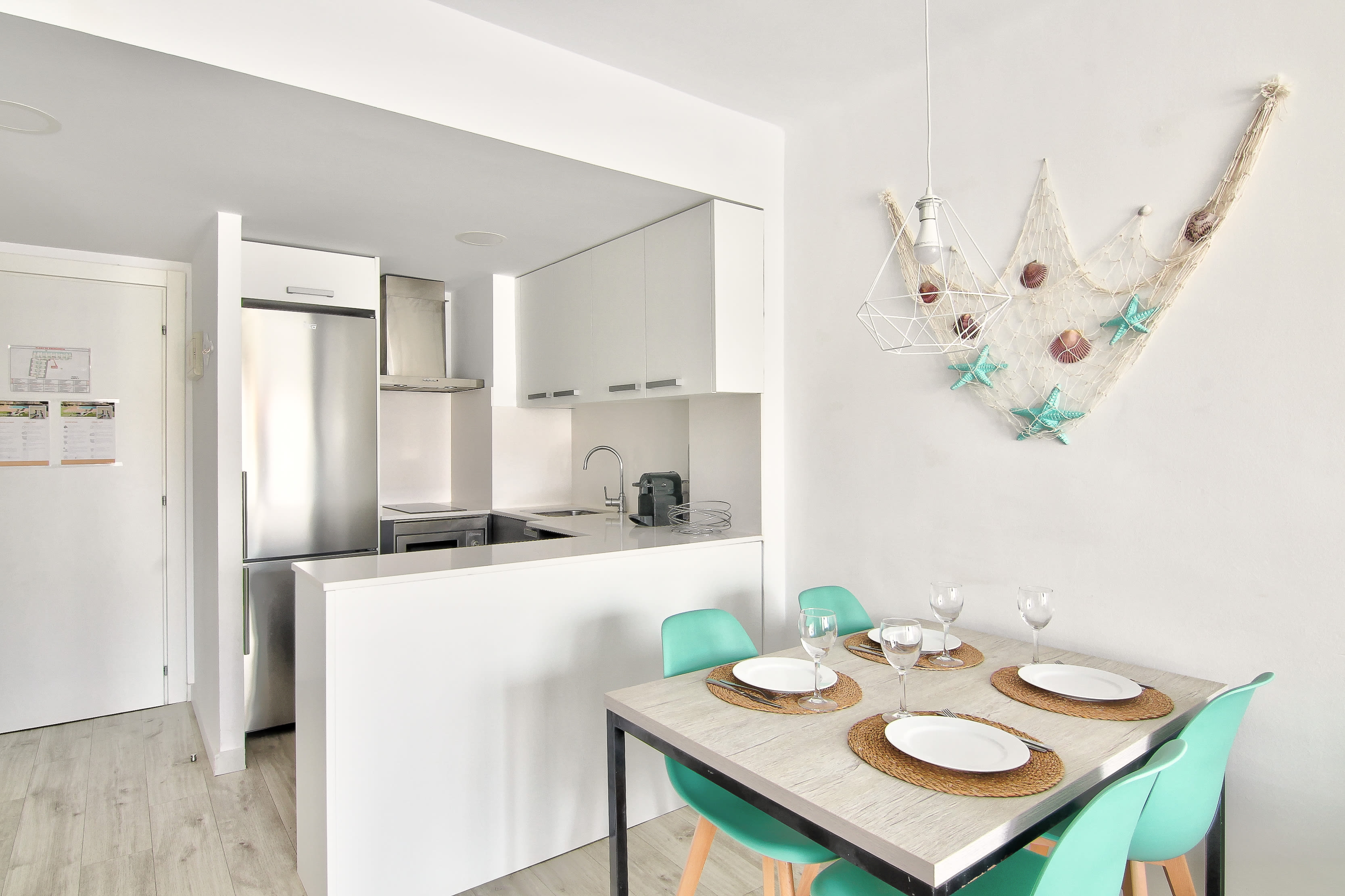 Apartament acabat de reformar amb terrassa, piscina comunitaria i ben equipat per a un màxim de 4 persones. Consta d'una habitació doble ( llit de matrimoni) i un sofà llit al menjador (matrimoni) L'apartament disposa de TV, rentadora, microones, forn, vitroceràmica, cafetera, vaixella i utensilis de cuina. La platja és a 250 metres, o 4 minuts a peu. Apartament de vacances ideal per a famílies amb nens. No s'accepten mascotes.