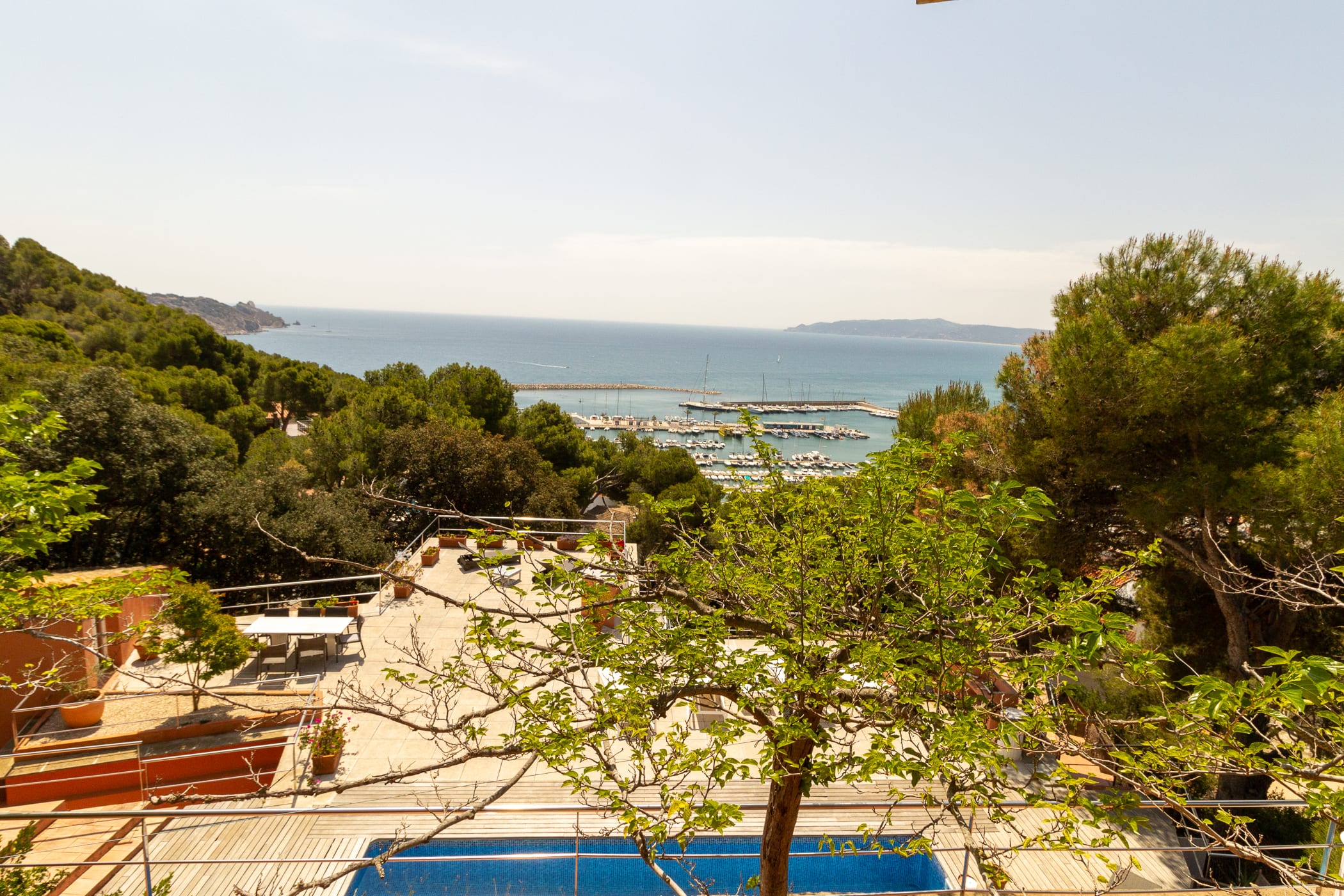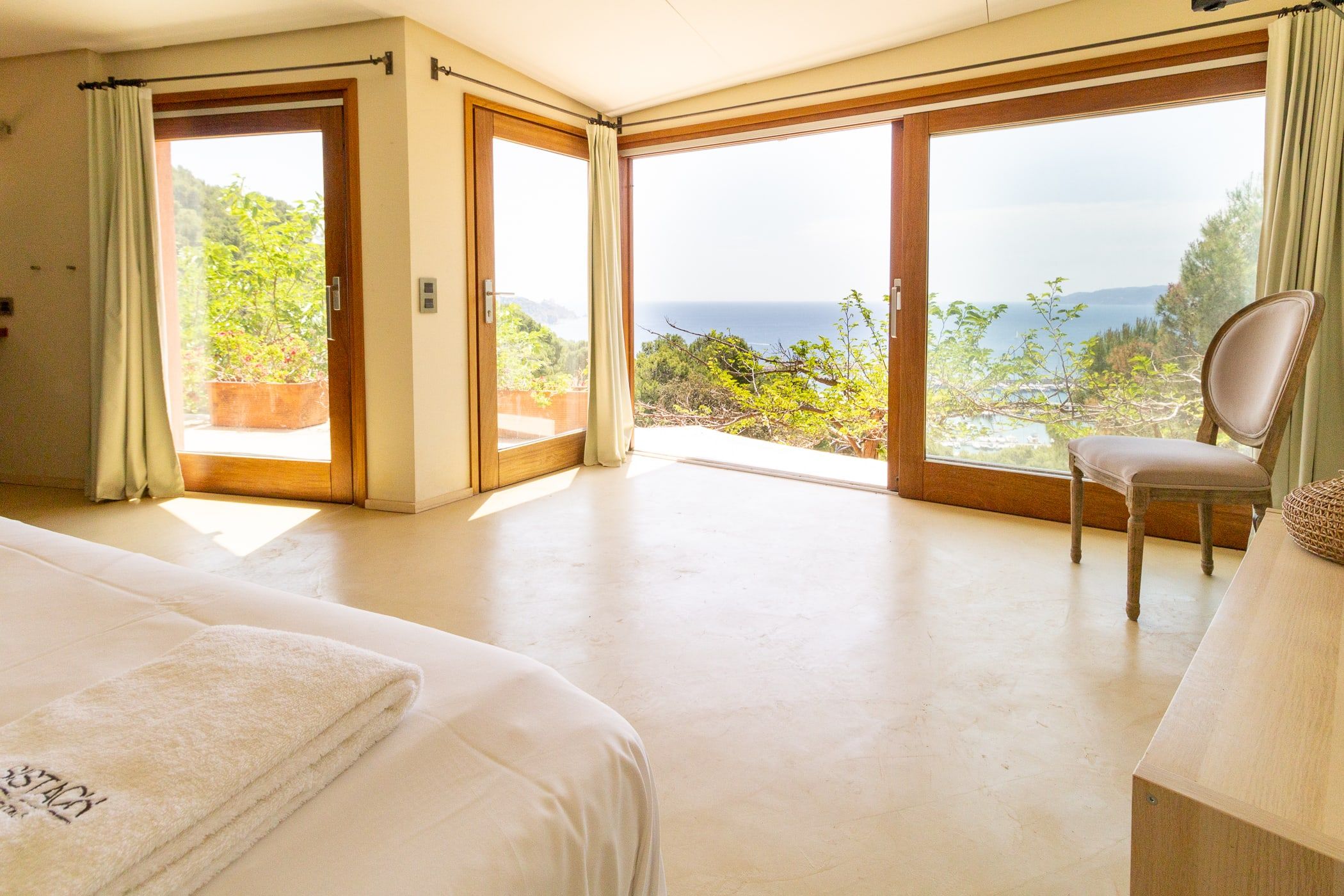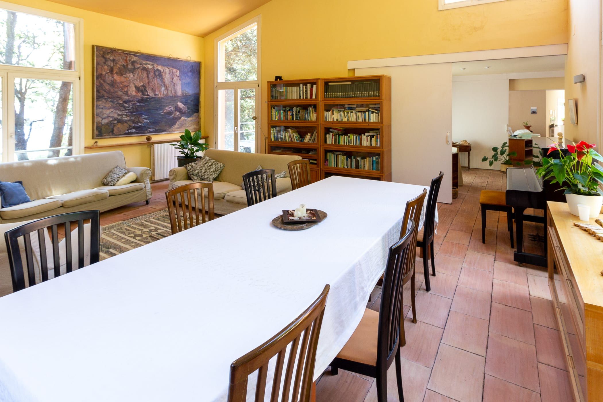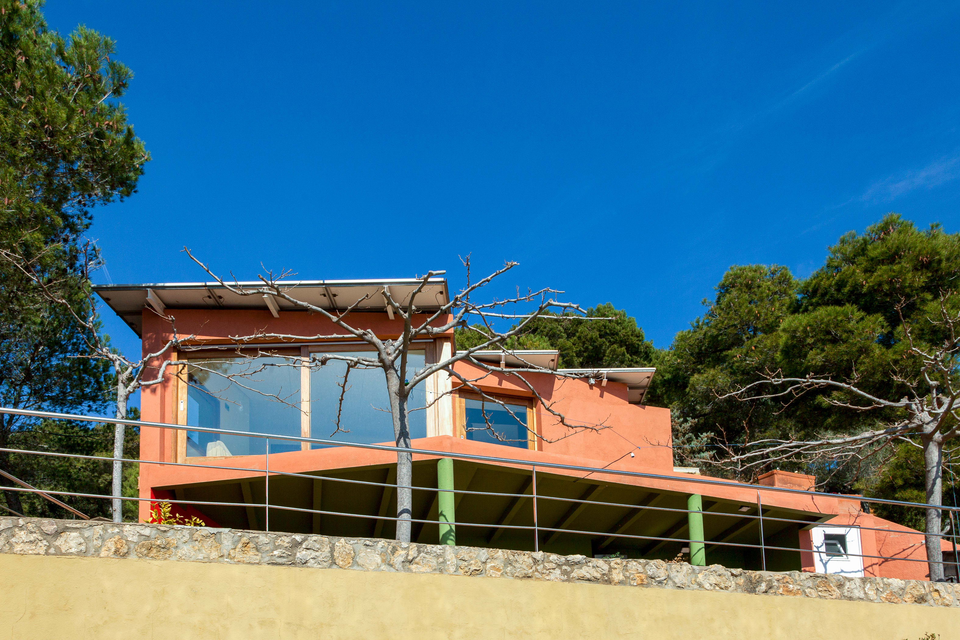 On the first floor we find a fully equipped American kitchen and a spacious living room of more than 70 m2, a toilet, and a winter dining room of about 50 m2 in which, if necessary, a double bed could be placed. Above deck is the private pool area consisting of a terrace with spectacular views of the sea, a rest area with sun loungers. On a higher level there is a barbecue area (gas) and an outdoor summer dining room. The house has an independent studio apartment equipped with a double bed and a shower room. The capacity of the house is 10 people.