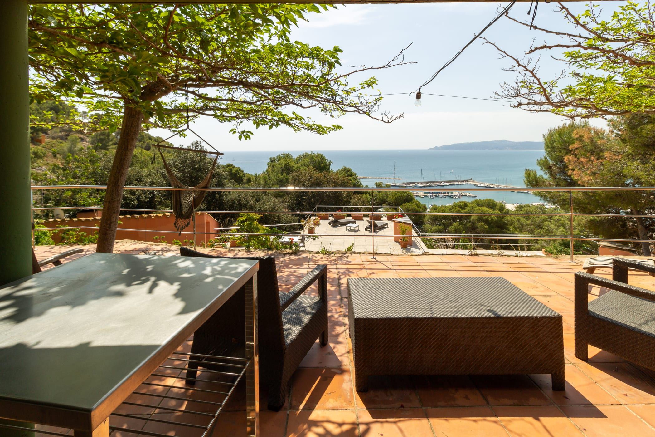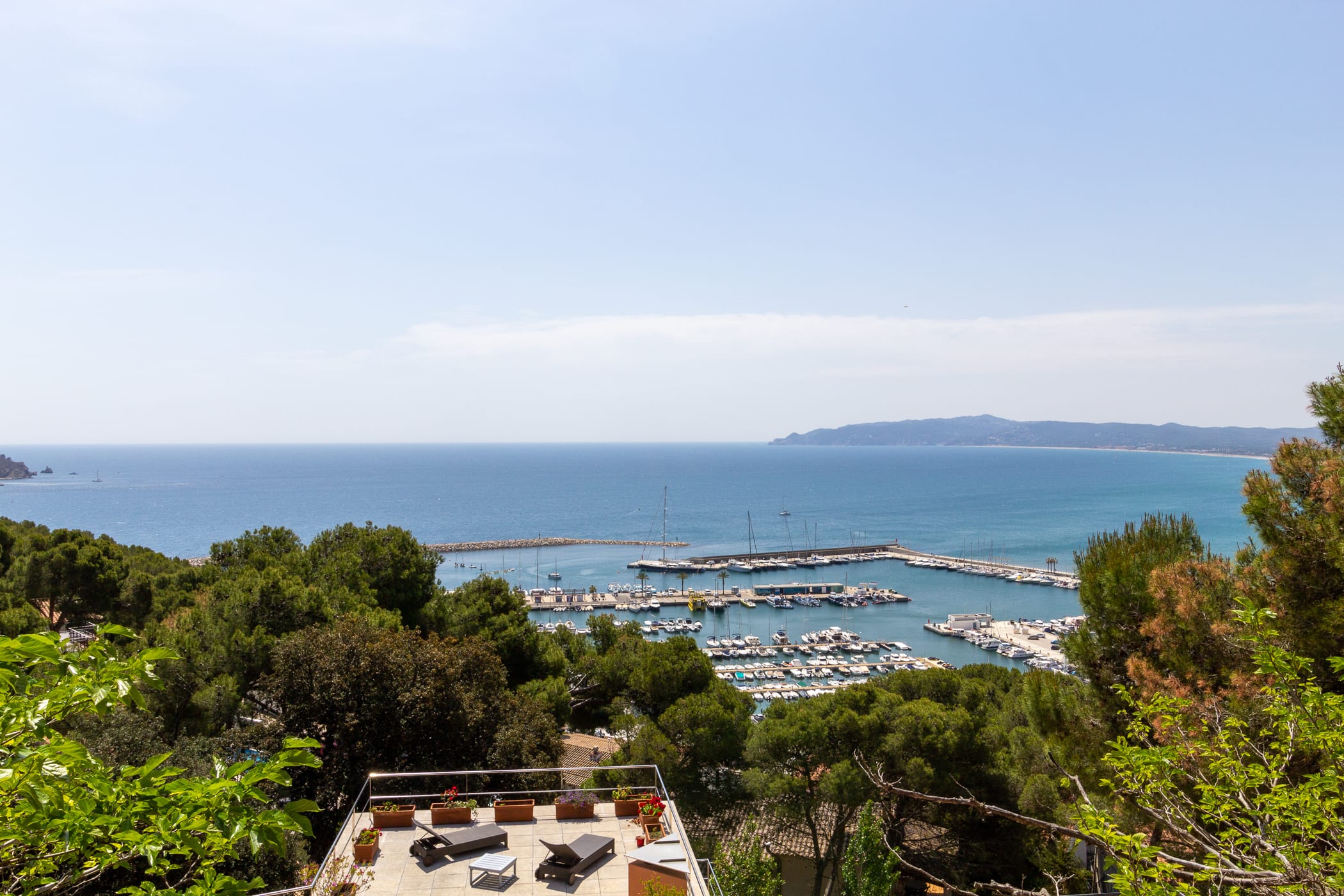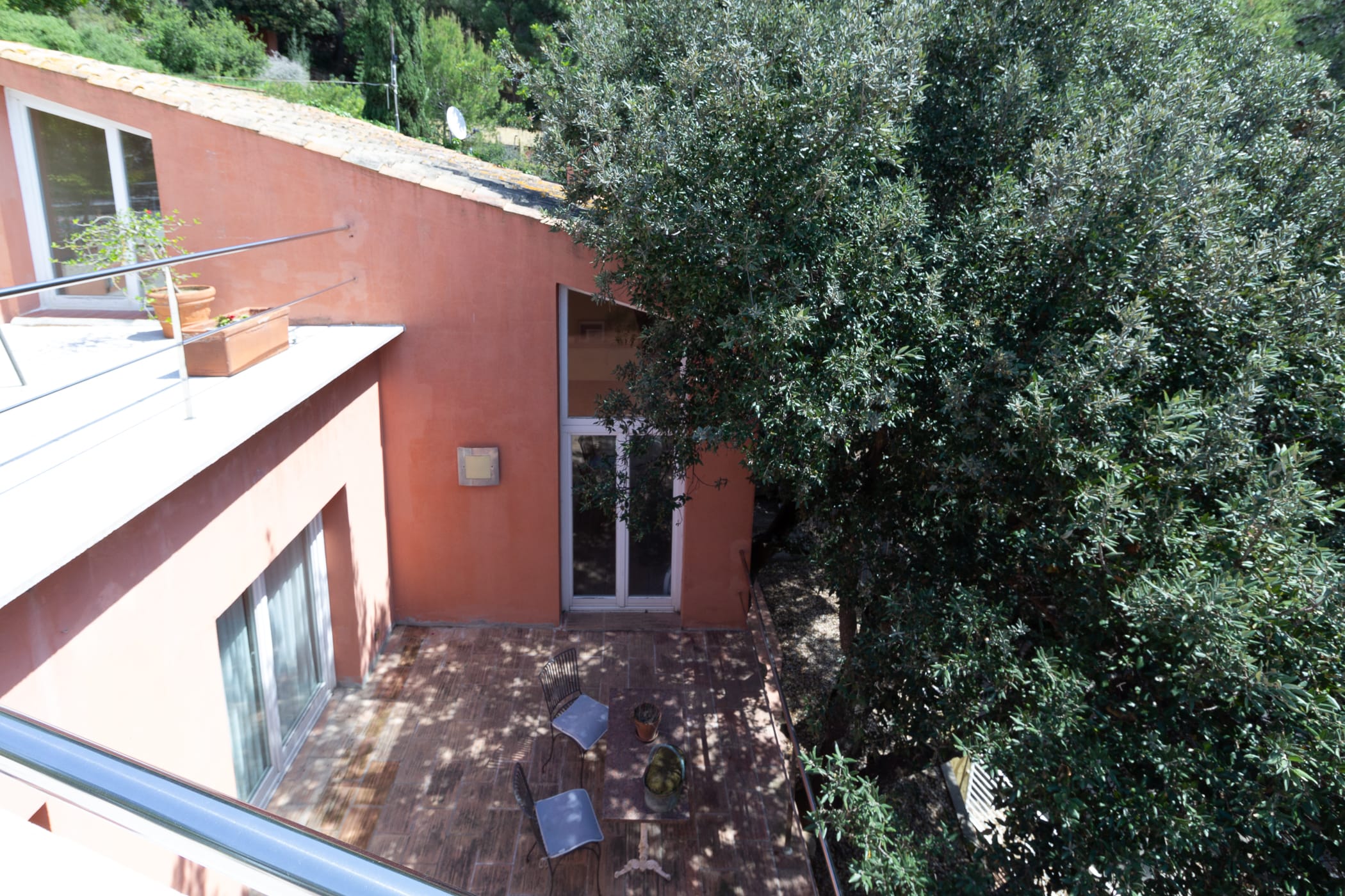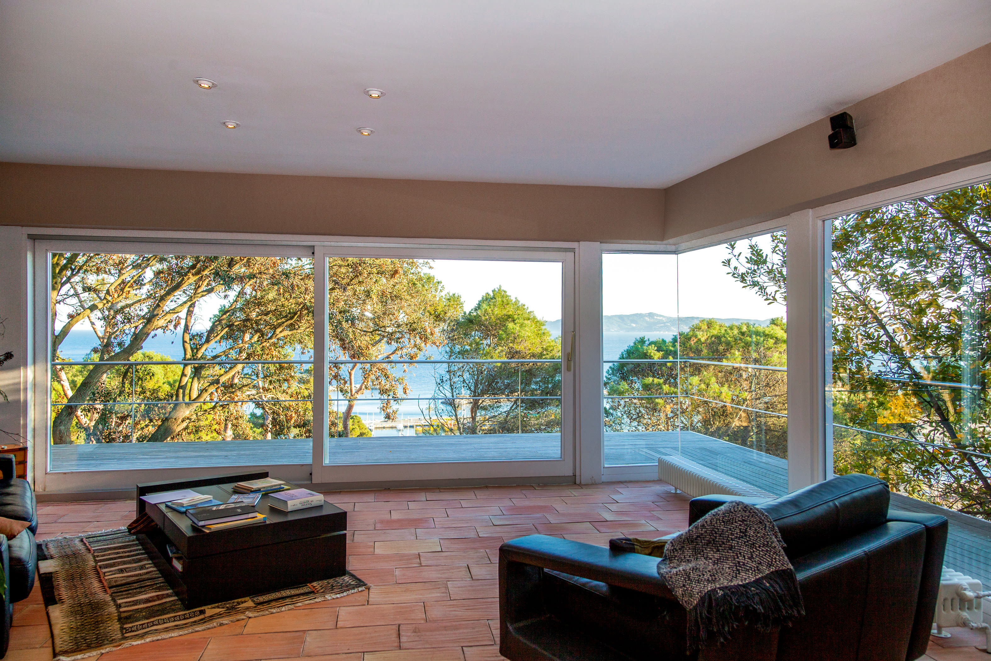 On the first floor we find a fully equipped American kitchen and a spacious living room of more than 70 m2, a toilet, and a winter dining room of about 50 m2 in which, if necessary, a double bed could be placed. Above deck is the private pool area consisting of a terrace with spectacular views of the sea, a rest area with sun loungers. On a higher level there is a barbecue area (gas) and an outdoor summer dining room. The house has an independent studio apartment equipped with a double bed and a shower room. The capacity of the house is 10 people.