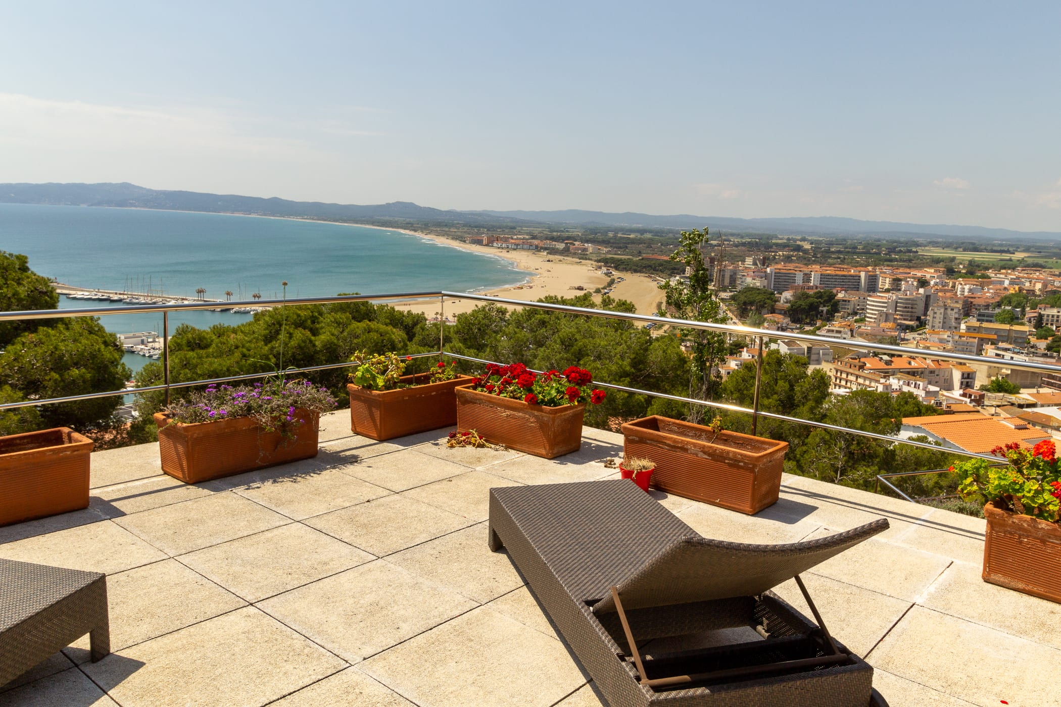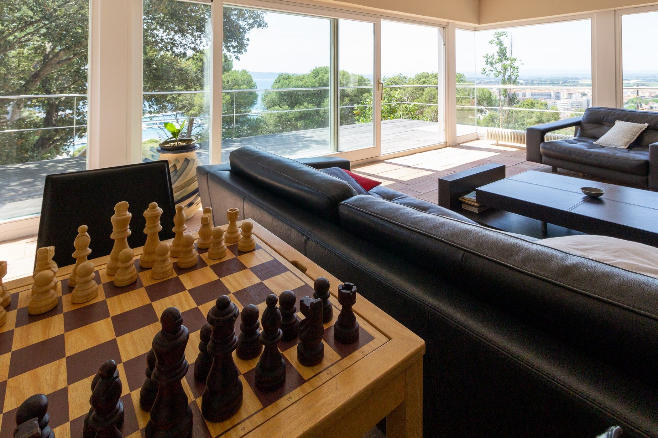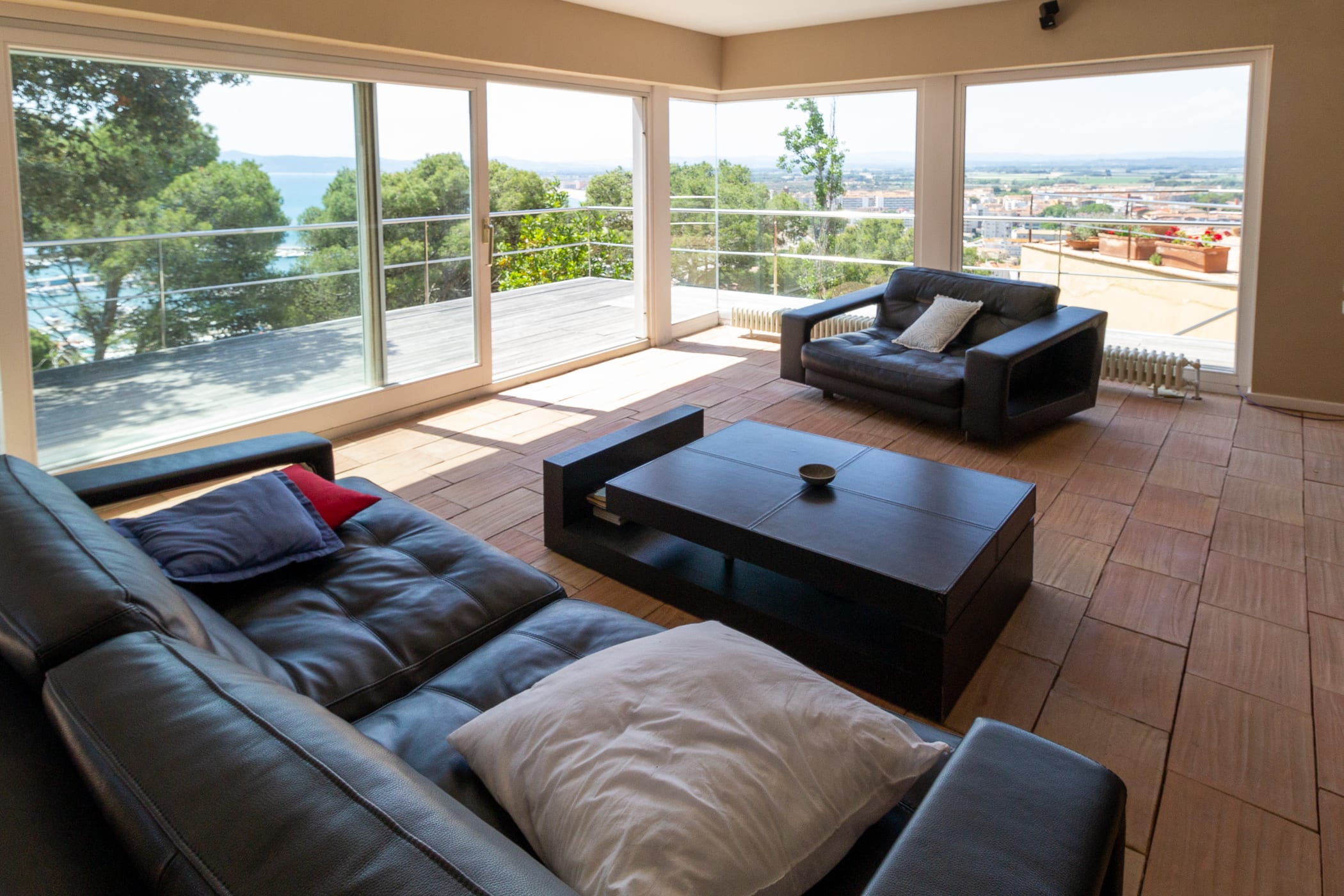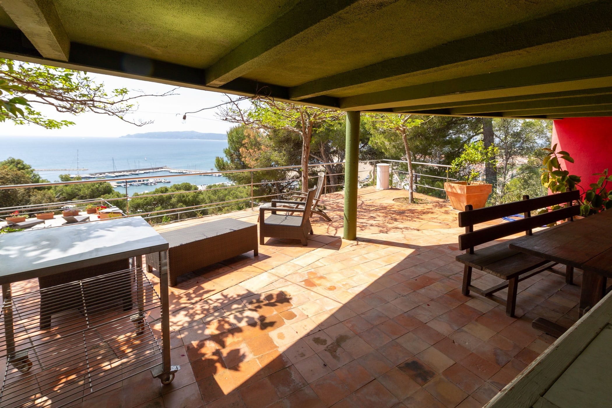 On the first floor we find a fully equipped American kitchen and a spacious living room of more than 70 m2, a toilet, and a winter dining room of about 50 m2 in which, if necessary, a double bed could be placed. Above deck is the private pool area consisting of a terrace with spectacular views of the sea, a rest area with sun loungers. On a higher level there is a barbecue area (gas) and an outdoor summer dining room. The house has an independent studio apartment equipped with a double bed and a shower room. The capacity of the house is 10 people.