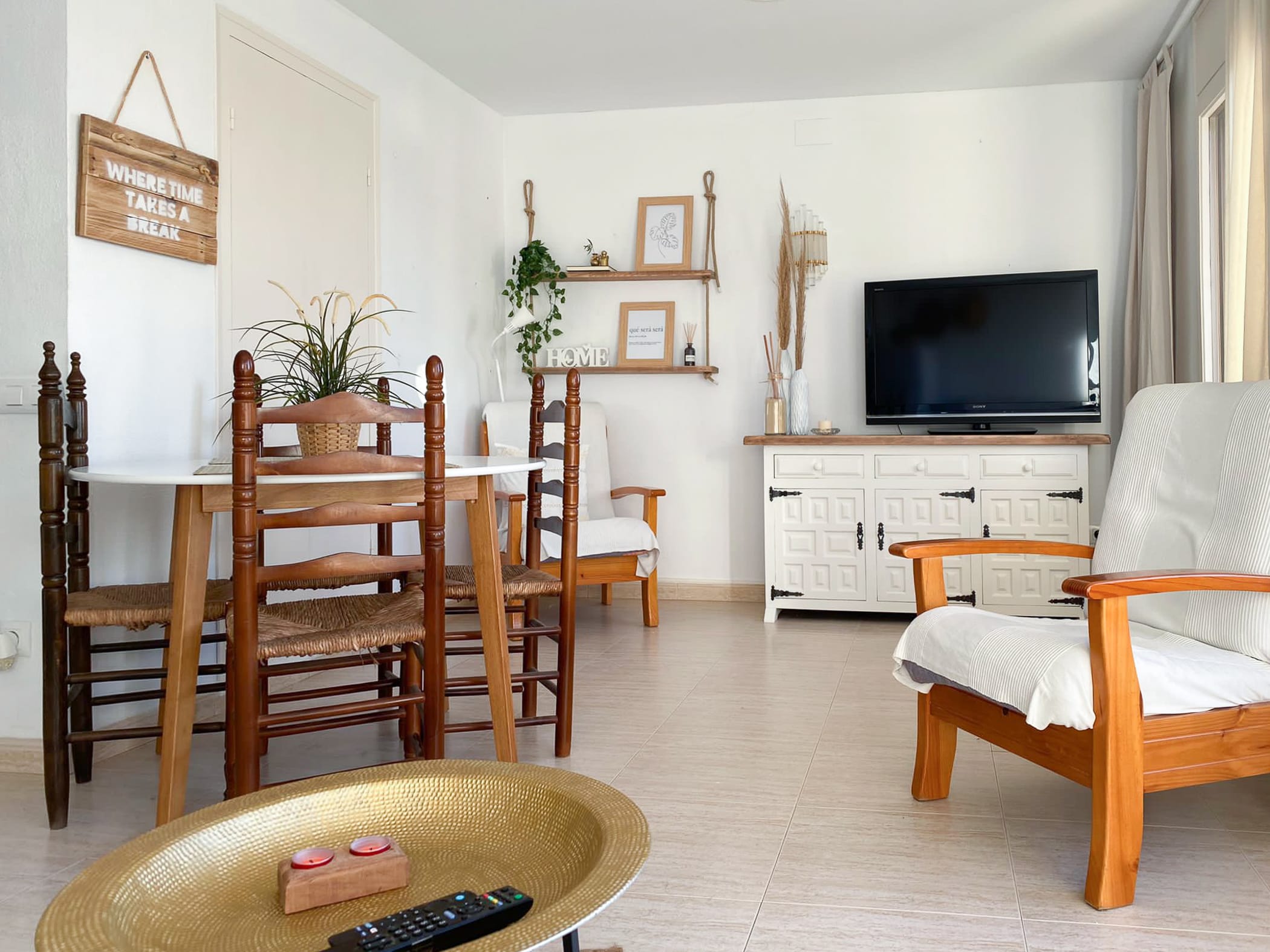 Spacious apartment located just 180 meters from the beach, with sea views. This charming apartment features a large dining room and living area, with a modern open American-style kitchen. The property includes a cozy double bedroom and an elegant bathroom with a shower tray. One of the great advantages of this apartment is the spacious terrace, where you can enjoy relaxing moments while taking in the tranquility of your surroundings.