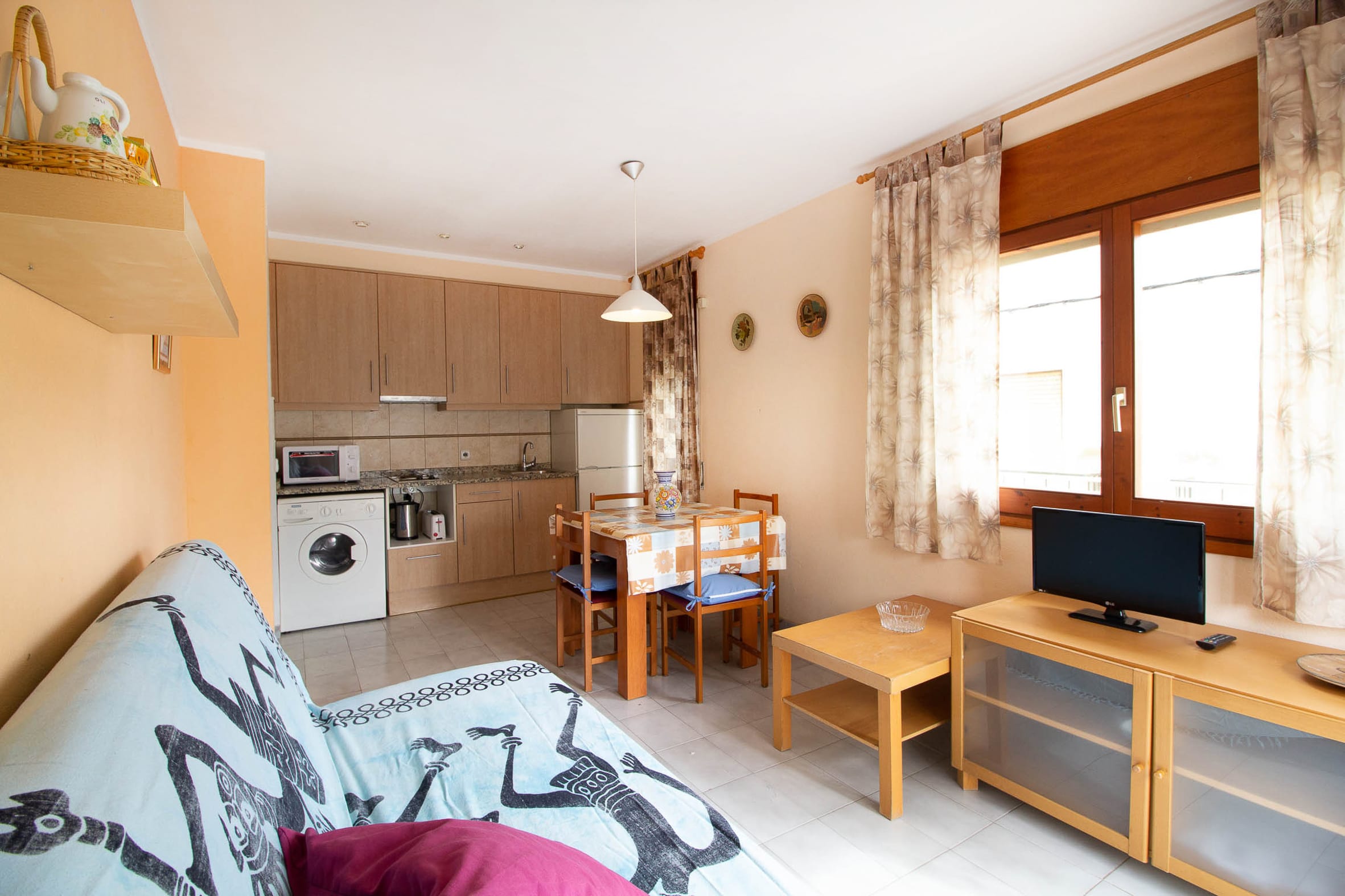 Comfortable apartment, located on the first floor, with two bedrooms, kitchen-living room with sofa-bed, bathroom and balcony. Very central: shops, beach, restaurants... No parking but there is free parking on the beach, only 150m from the apartment. Equipped with washing machine, TV, microwave. No lift. Building with only 3 neighbors, 150 m from the beach. Perfect location. Very good value for money. Close to supermarkets and good restaurants. The marina and sandy beach are 200m.