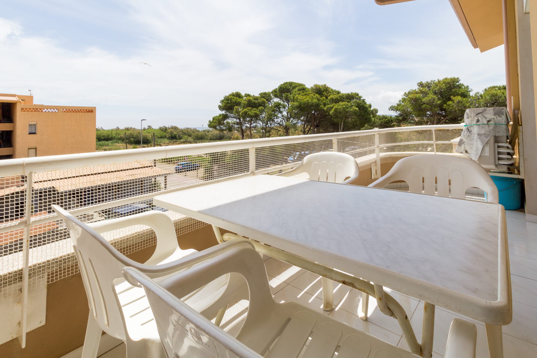 La terraza con mesa plegable para 8 comensales es perfecta para disfrutar del buen tiempo y unas vacaciones tranquilas.