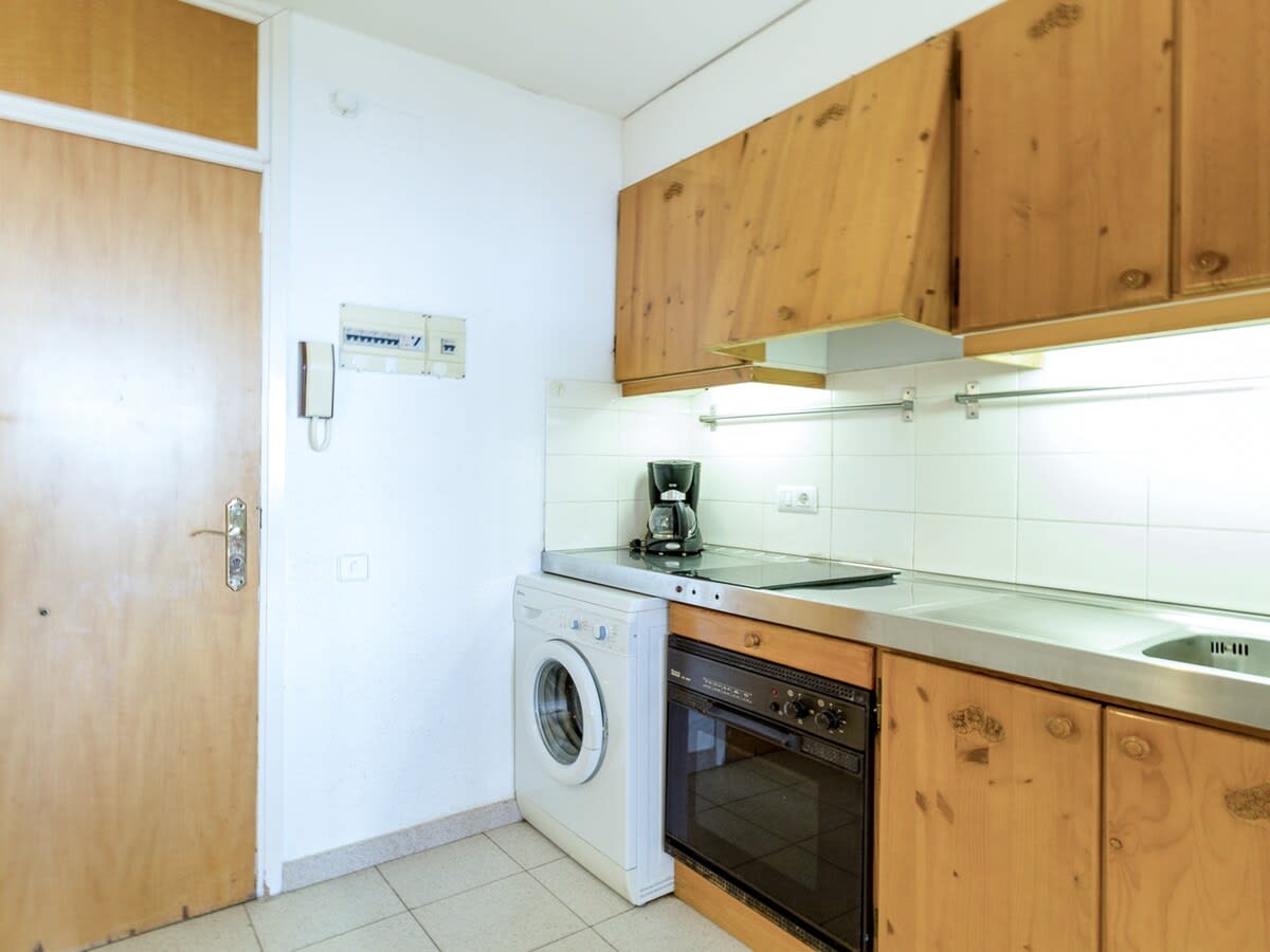 La piscine est très grande et avec beaucoup d'espace pour prendre le soleil. L'appartement petit mais tout confort.