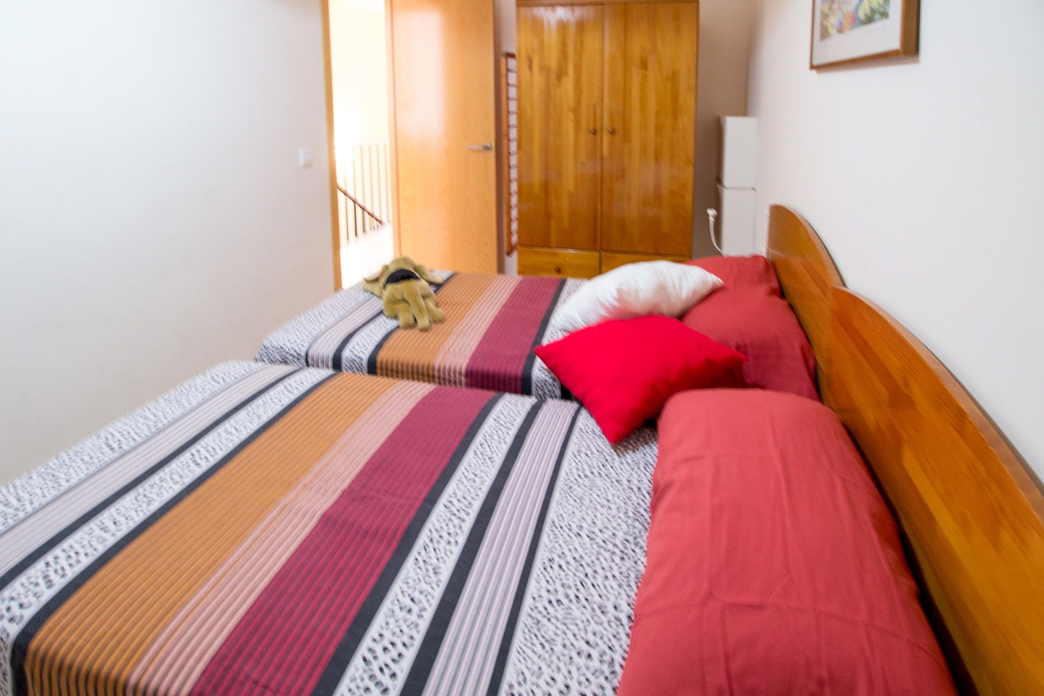 A la planta superior: 3 dormitoris (1 amb llit doble i 1 amb dos llits individuals, i un altre amb un llit individual i un llit extra desmuntable), a més de dos banys complets. La casa està totalment equipada: rentadora, assecadora, rentavaixelles, forn, nevera gran. Jardí i piscina comunitaris. Urbanització privada, amb accés només pels residents. Vacances amb tranquil·litat, ambient familiar.